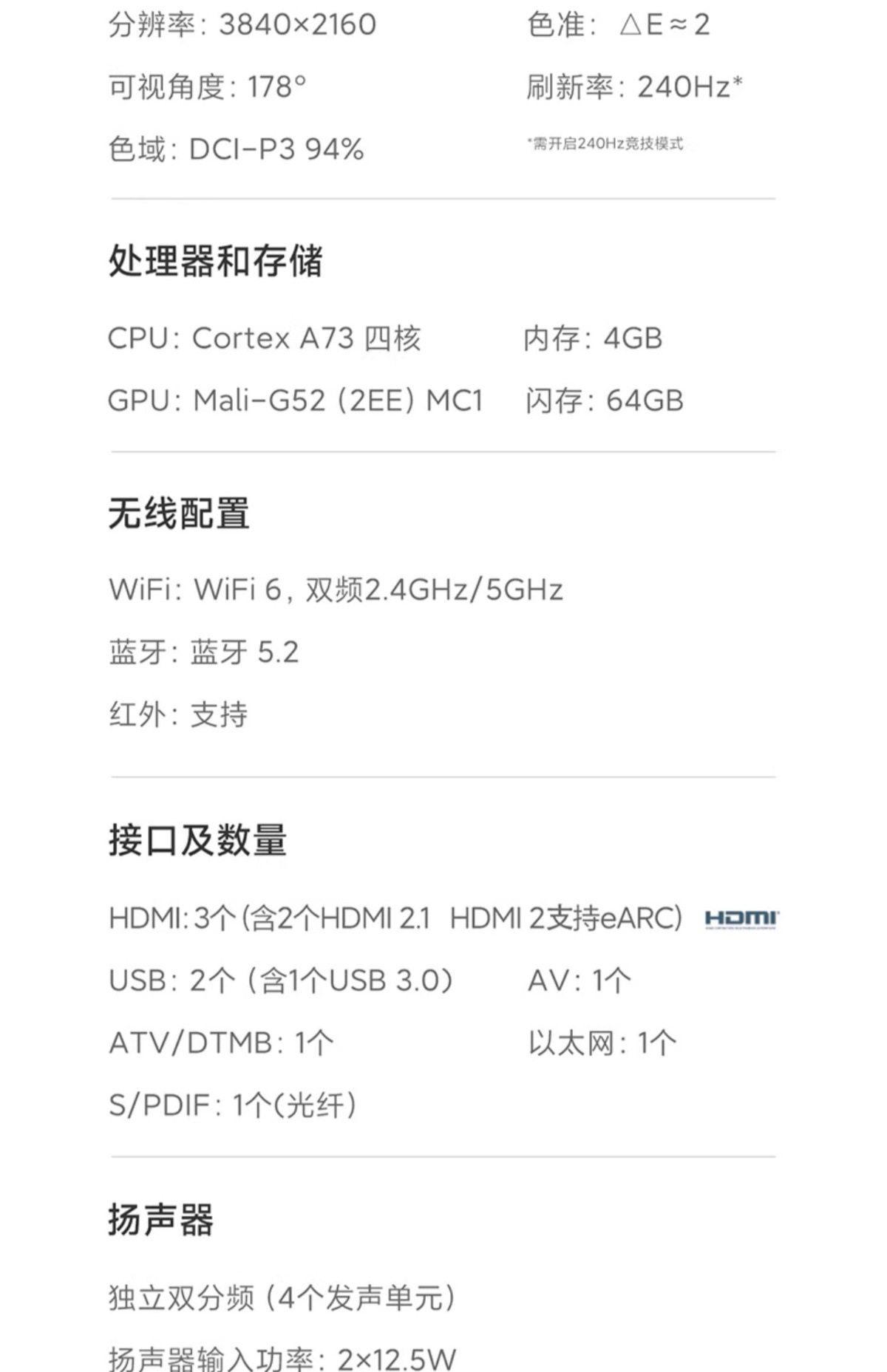 TV S 55 미니LED 55인치 308존 240Hz 고주사율 가정용 TV