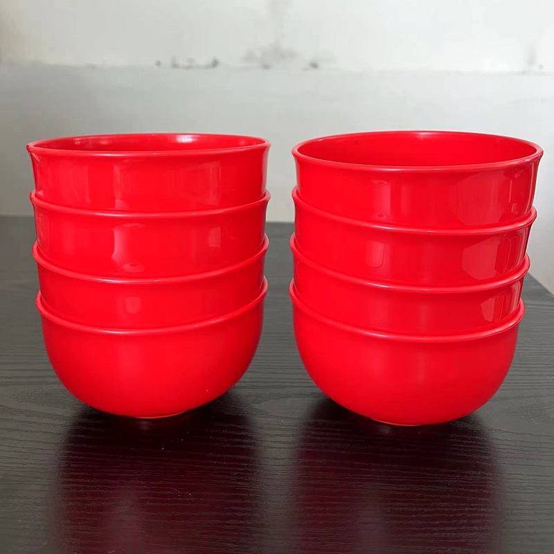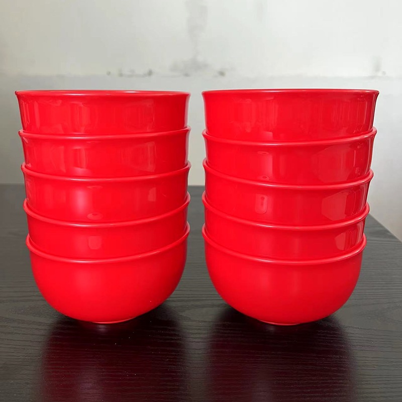 빨간 그릇 결혼식 집들이 열 세트 단색 플라스틱 가정 숭배 행복 이벤트 일회용 빨간색 도매