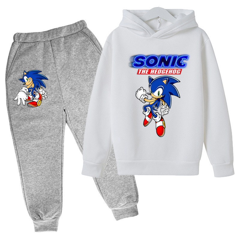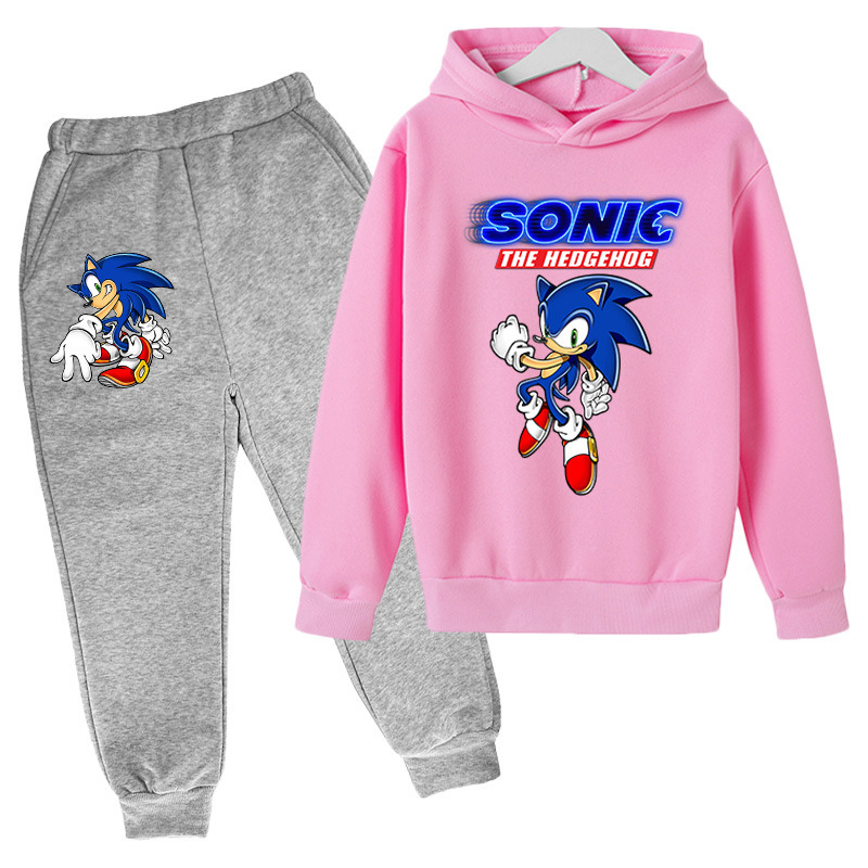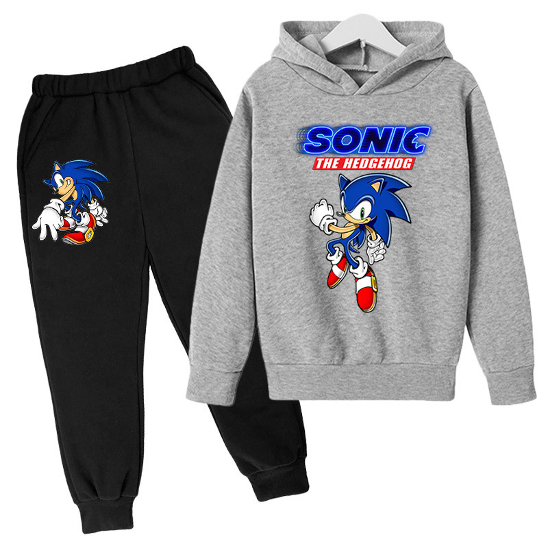 소년 소녀를위한 어린이 2 피스 소닉 만화 인쇄 기모 스웨터 하라주쿠 스타일 거리 느슨한 풀오버