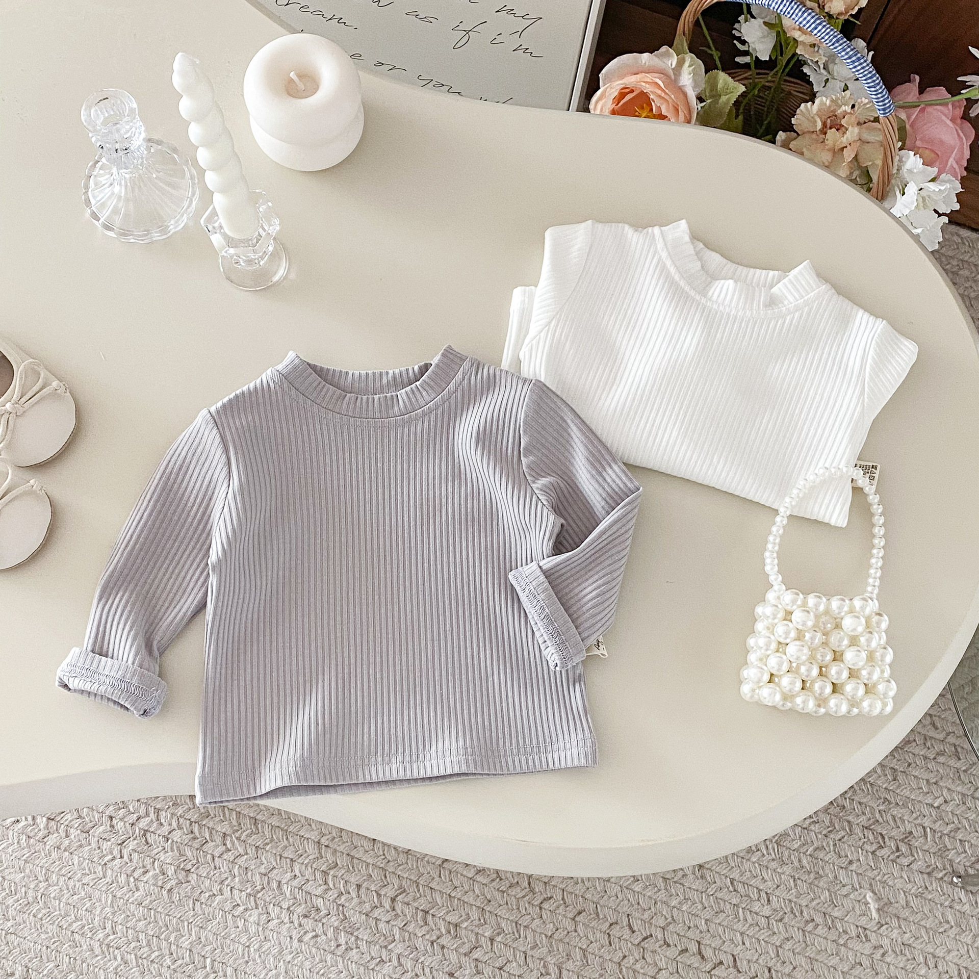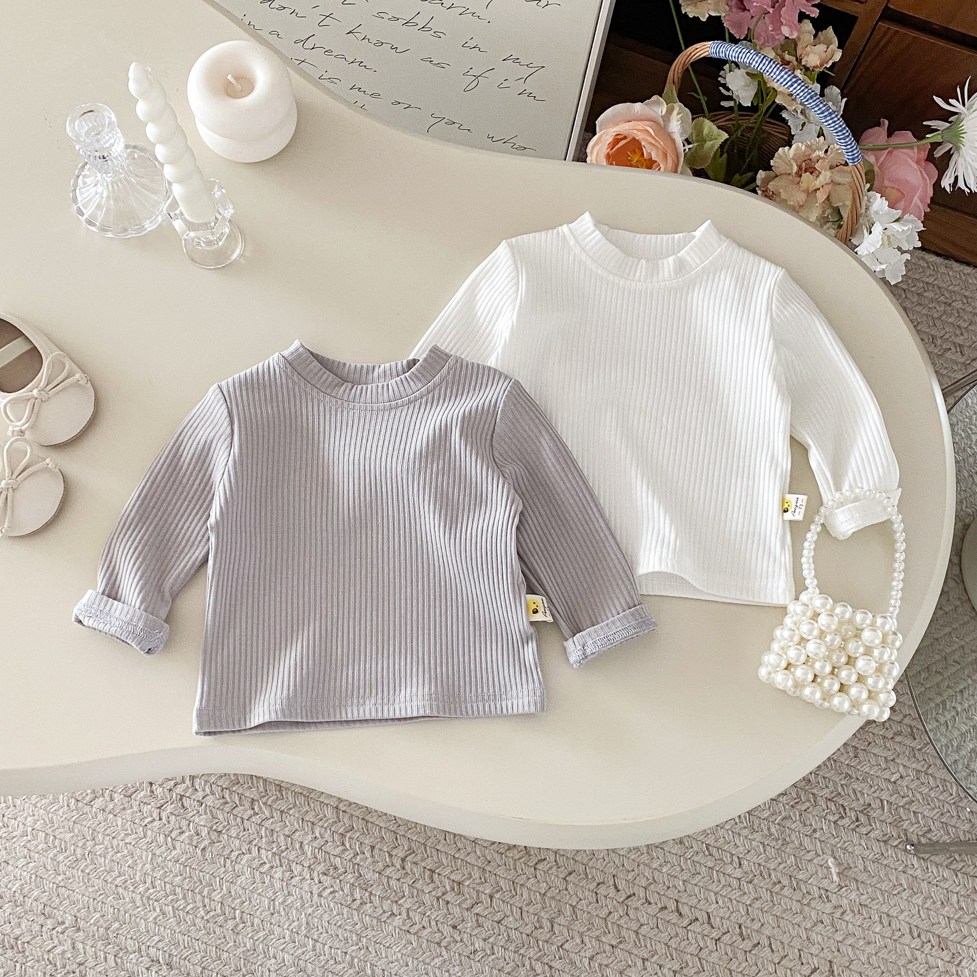 2025 한국어 버전 가을 소녀의 핏 스트립 셔츠 아기 소녀의 긴팔 면화 티셔츠 유아 의류상의스토어 가기