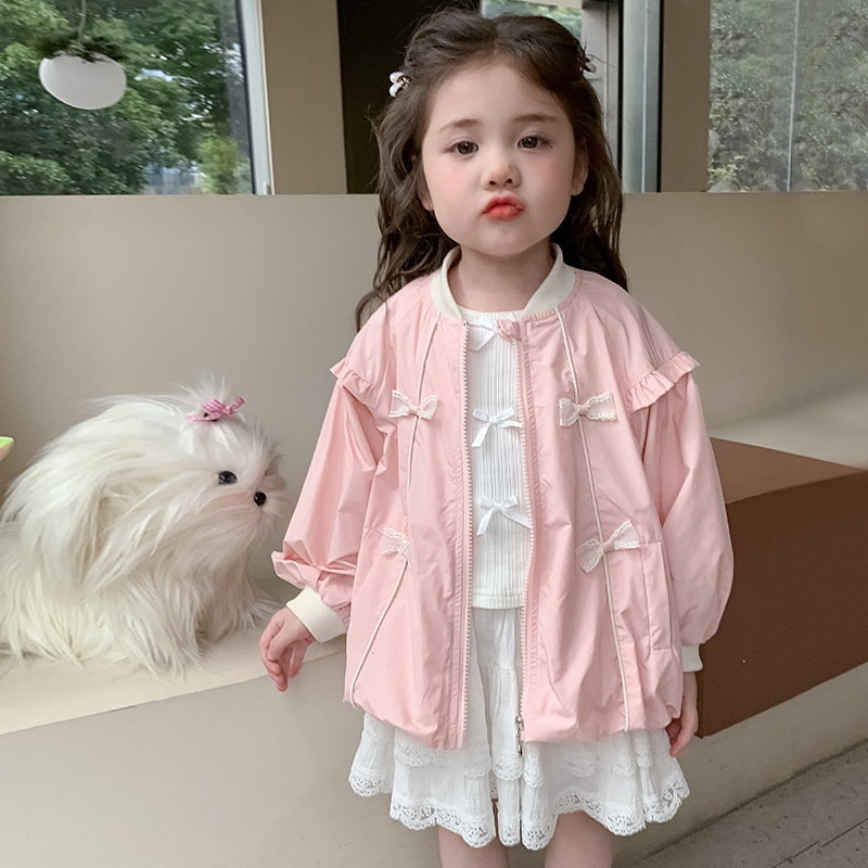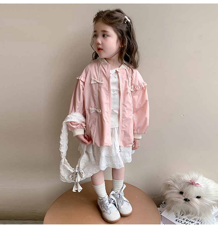 소녀 코트 봄과 가을 2025 아기 소녀의 봄 코트 더블 레이어 윈드 브레이커를위한 새로운 공주 스타일 재킷 활 탑