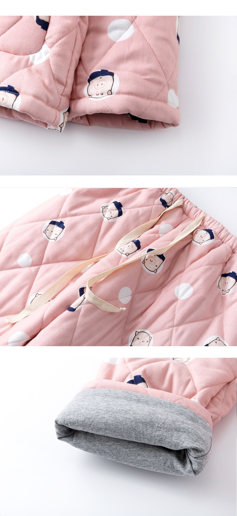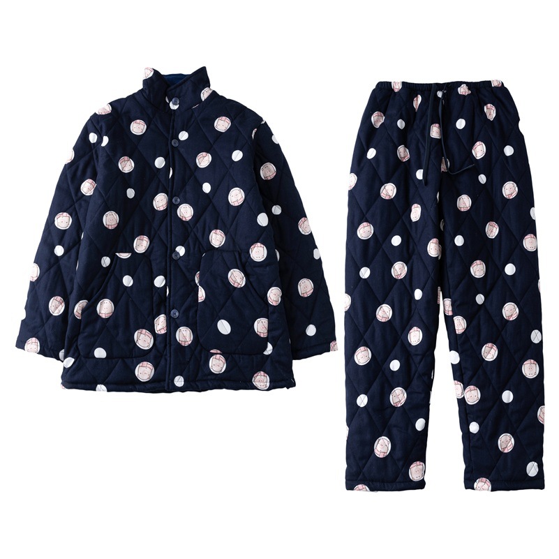 3 층 퀼트 무지 잠옷 가을과 겨울 인쇄되지 않은 면화 패딩 커플 남성과 여성 면화 따뜻한 가정 옷 세트