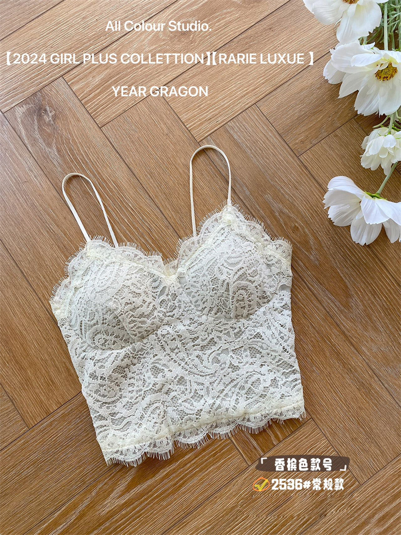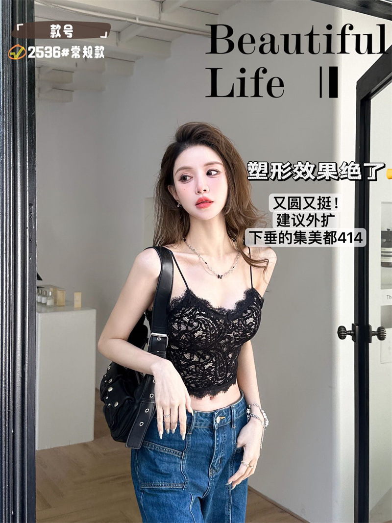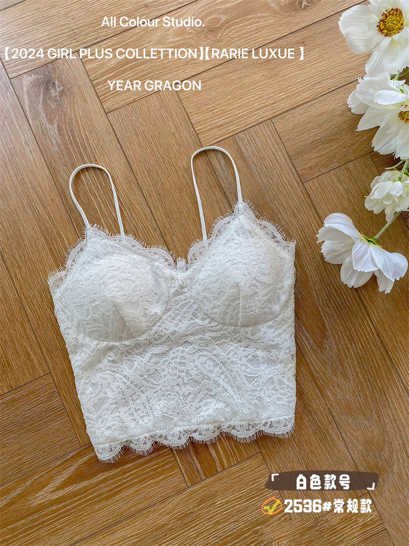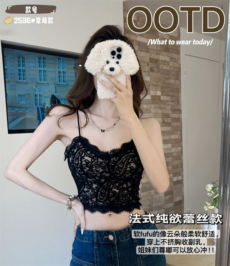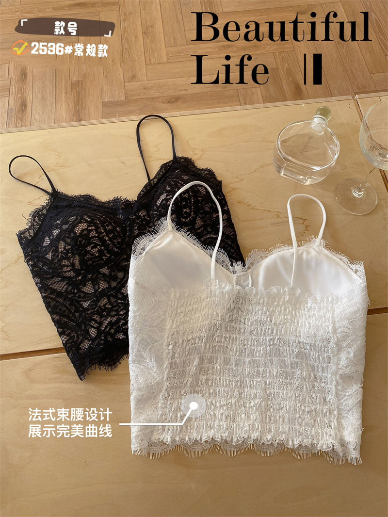 새로운 속눈썹 레이스 Pleated Beauty Back Camisole Vest 여성 벨트 가슴 패드 뜨거운 소녀 디자인 센스 인테리어 섹시한 순수한 욕망 스타일