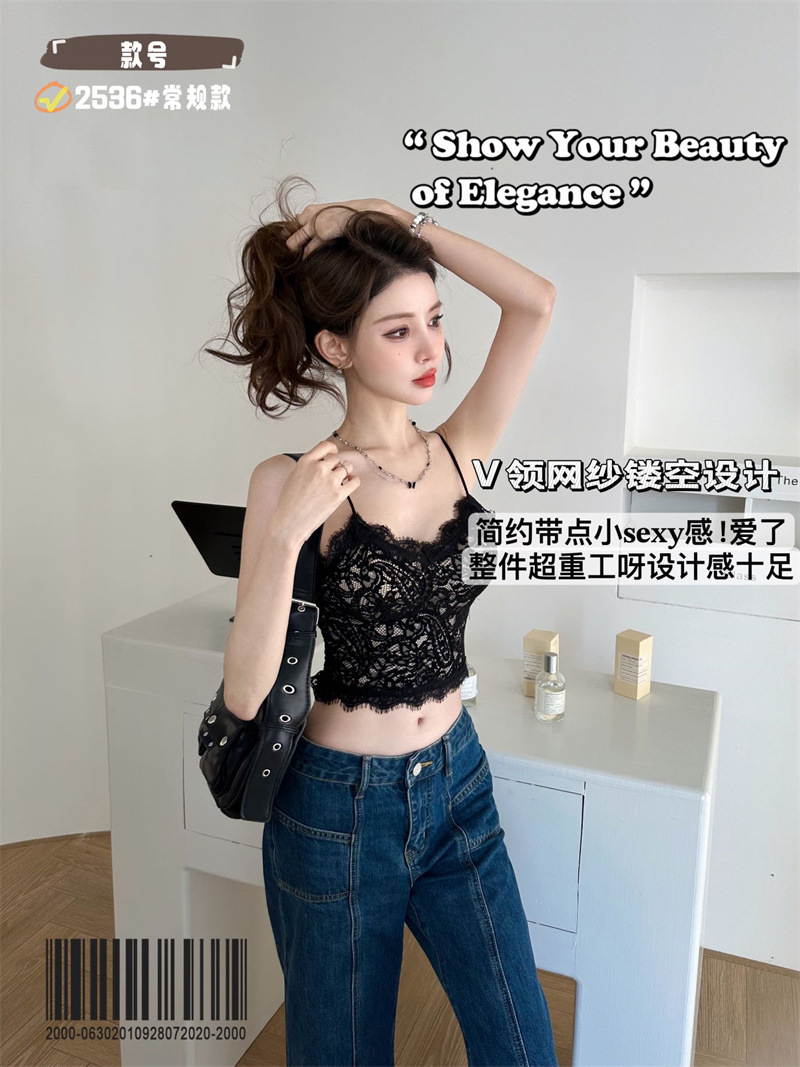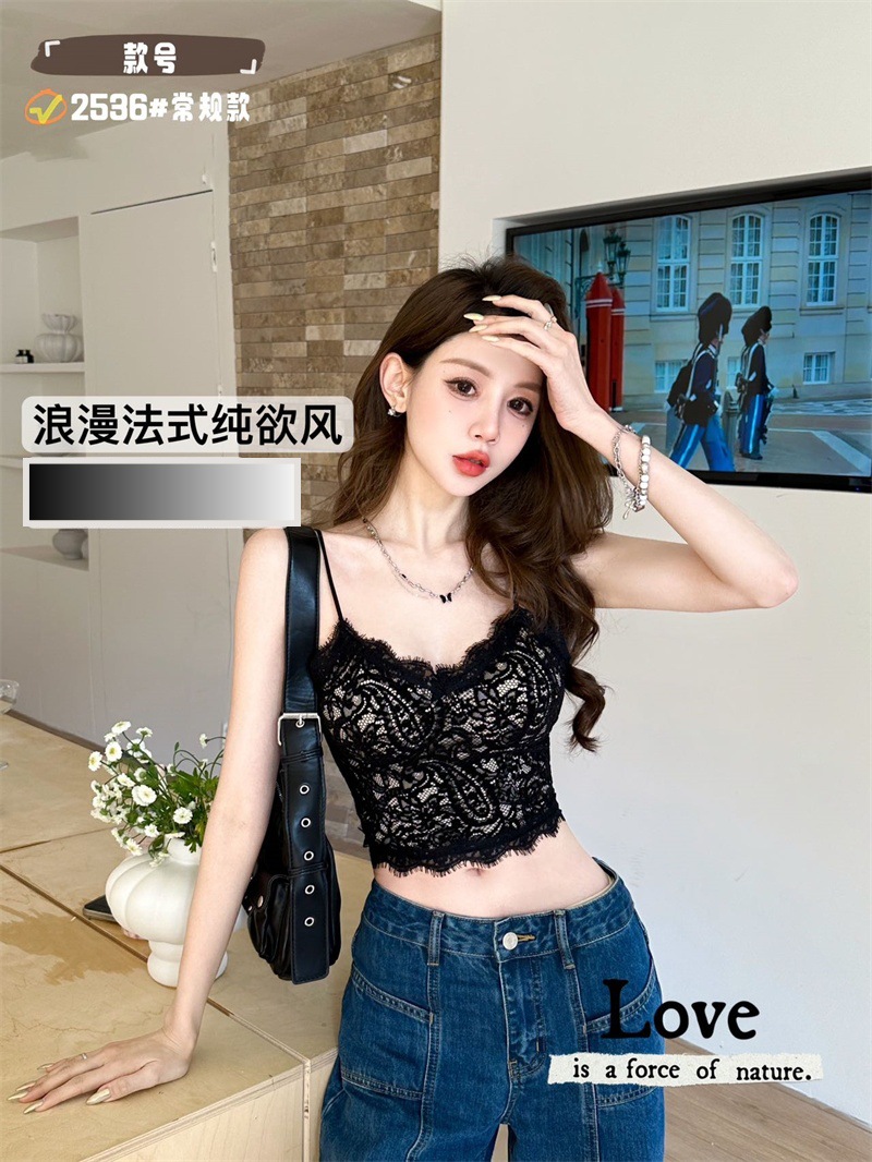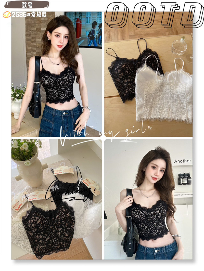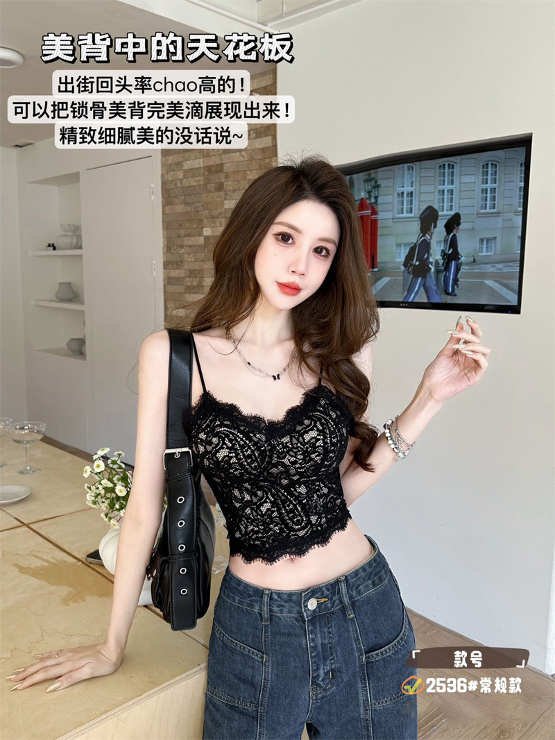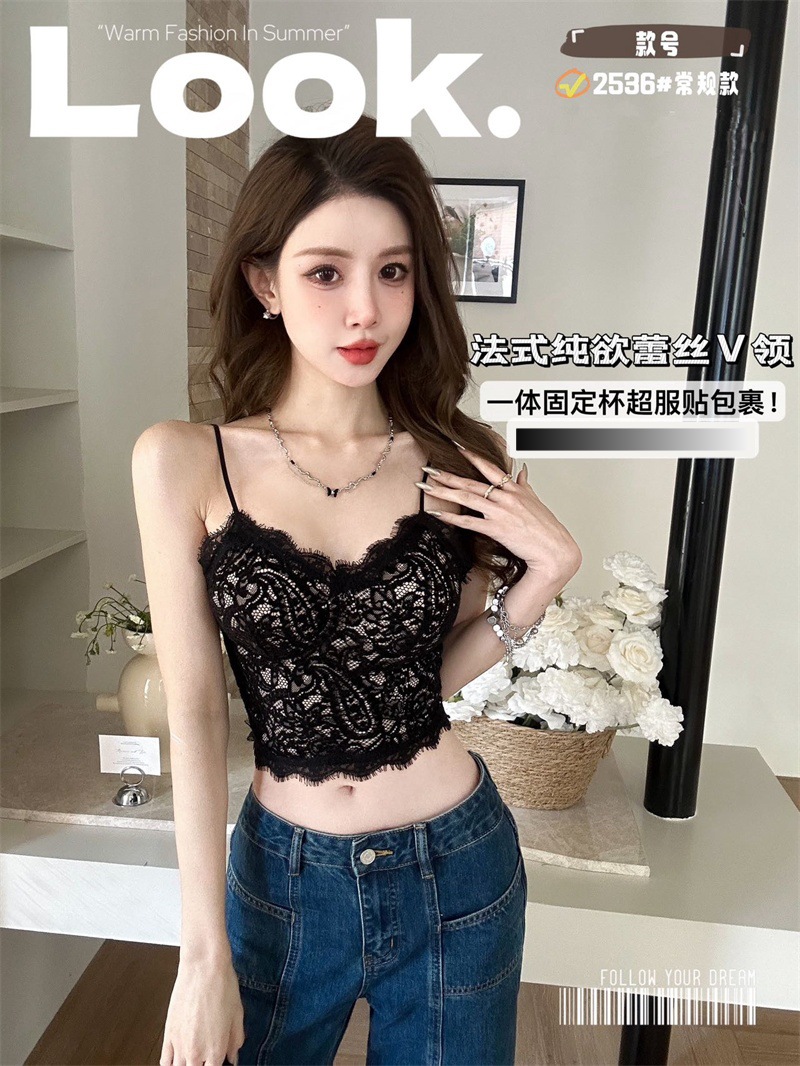 새로운 속눈썹 레이스 Pleated Beauty Back Camisole Vest 여성 벨트 가슴 패드 뜨거운 소녀 디자인 센스 인테리어 섹시한 순수한 욕망 스타일