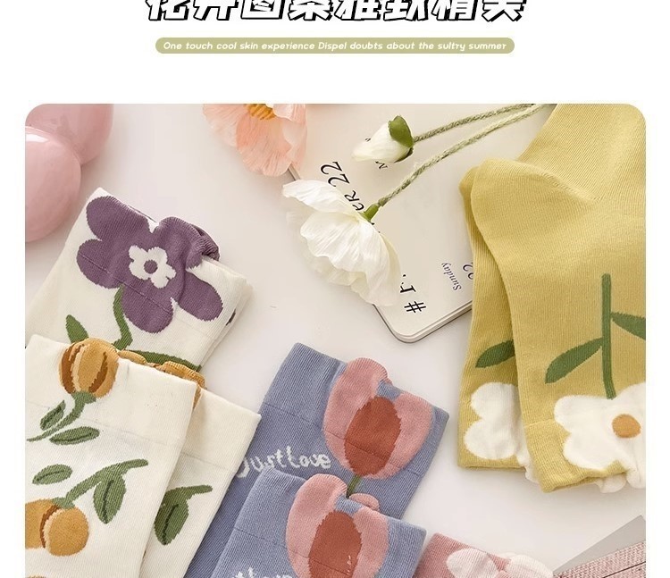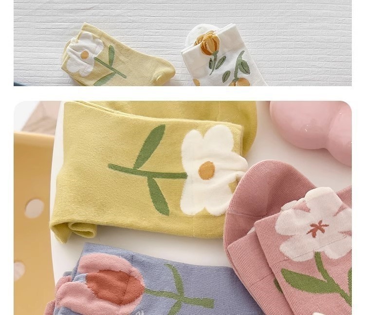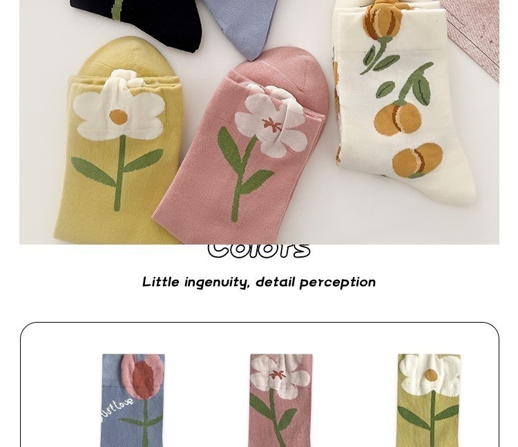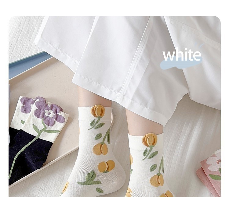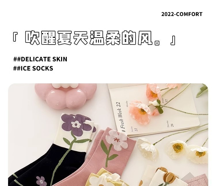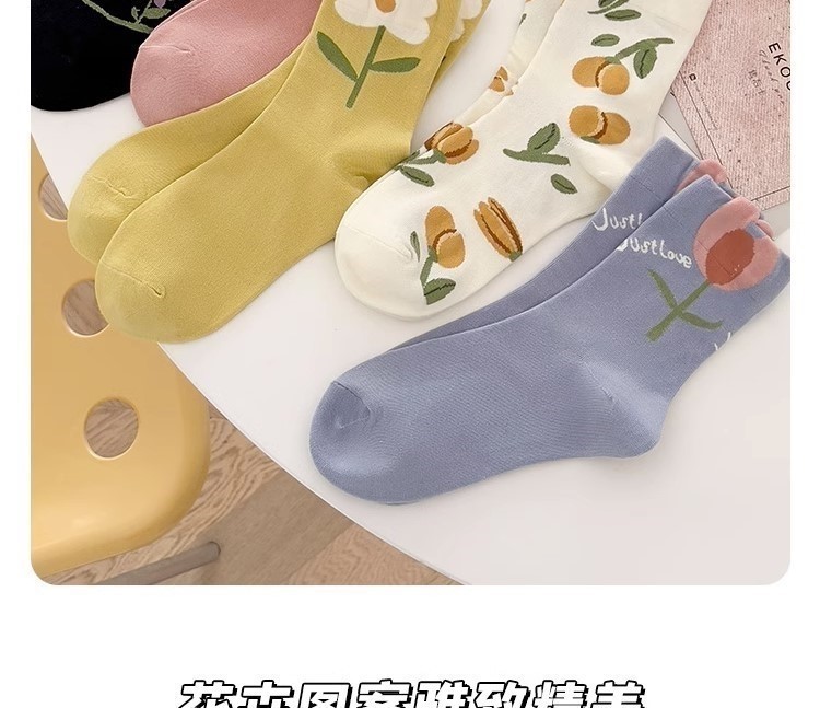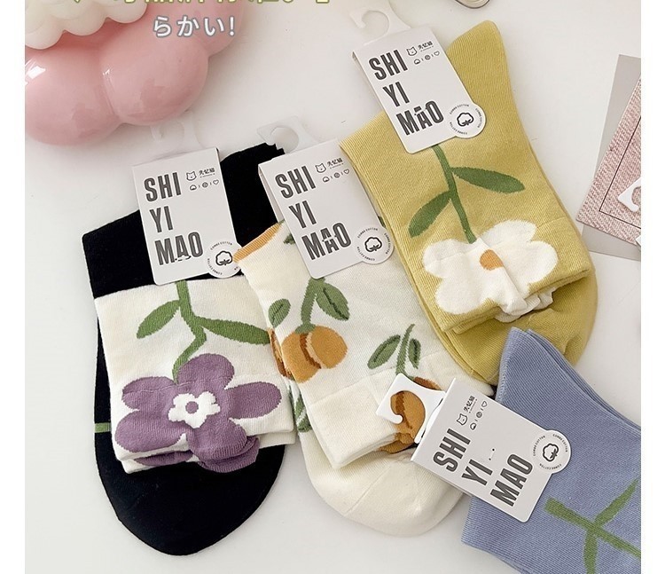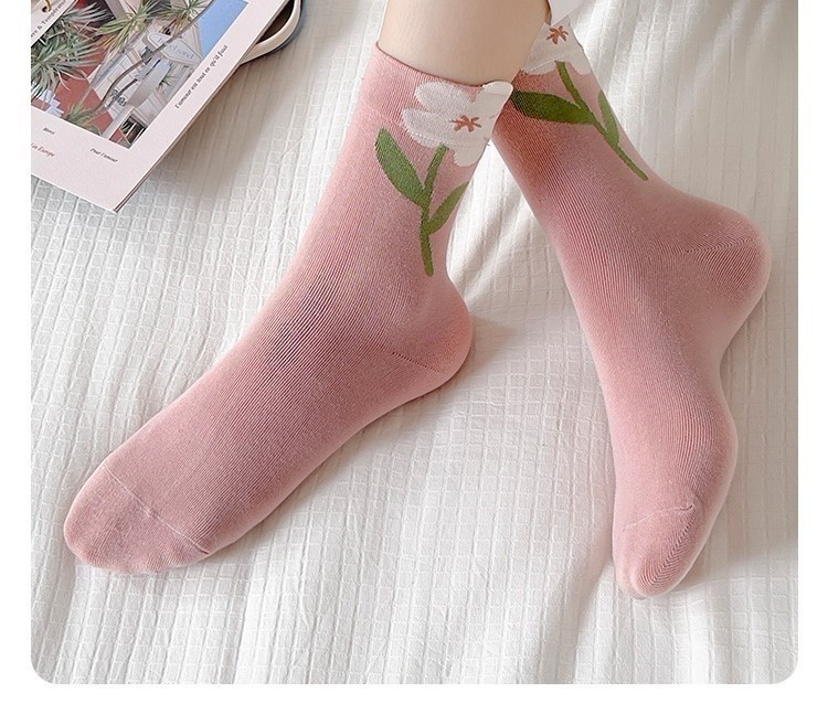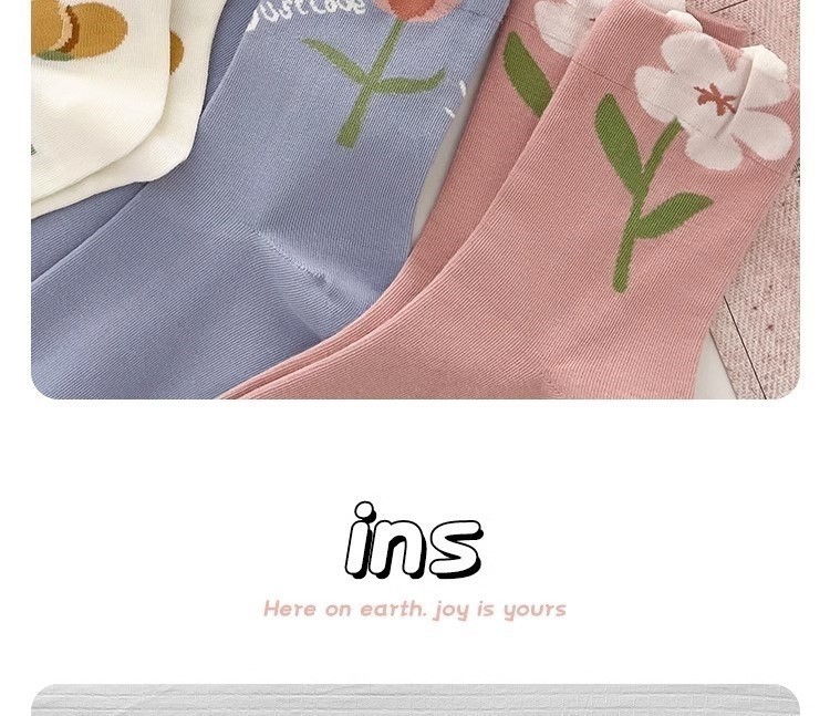 3 차원 꽃 양말 여성 여름 예술적 봄과 가을 중간 길이 양말 국가 스타일 달콤한 귀여운 Ins 트렌디 한 외주 스타킹