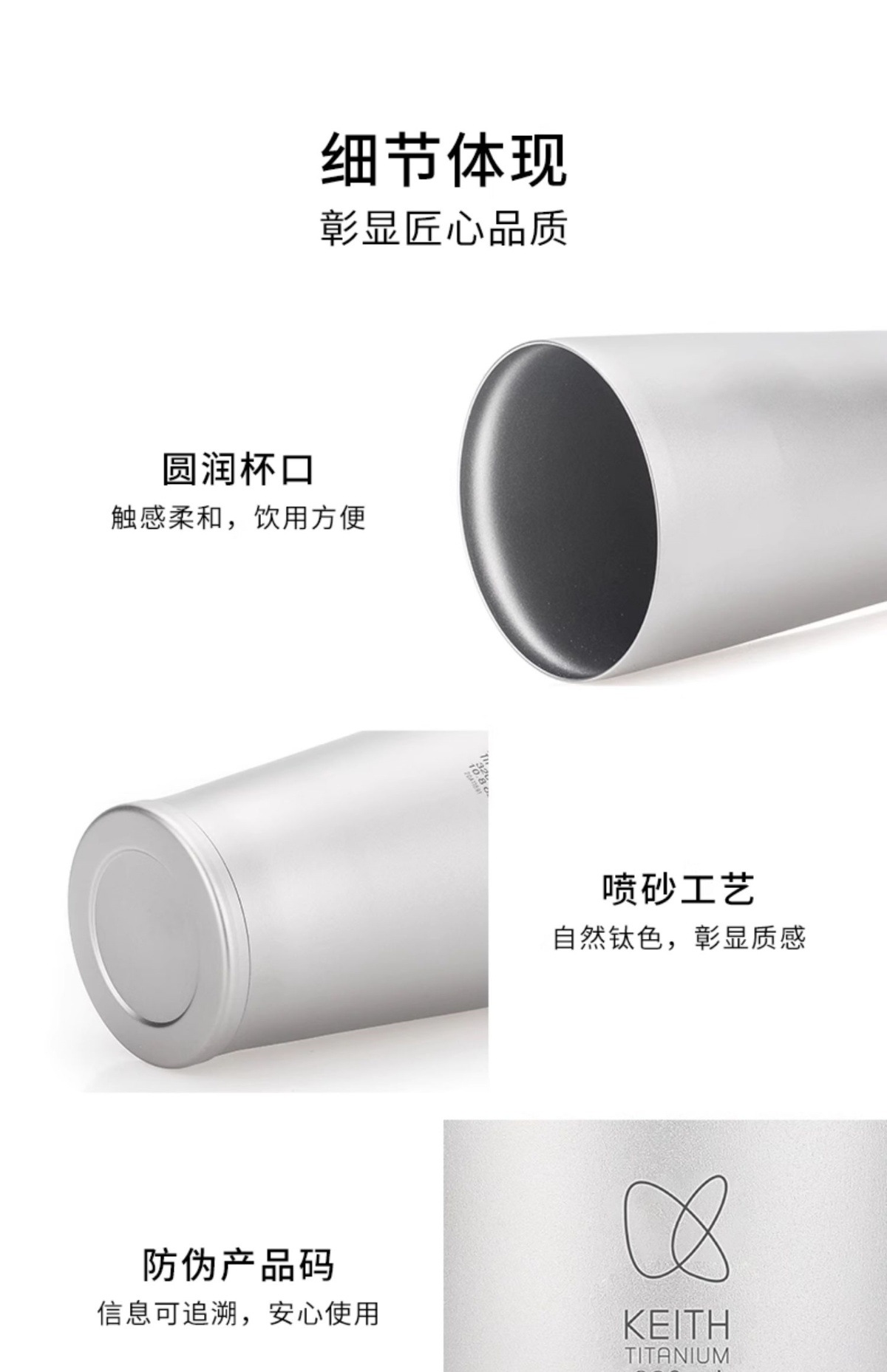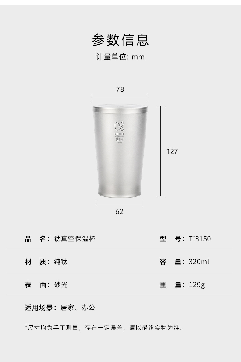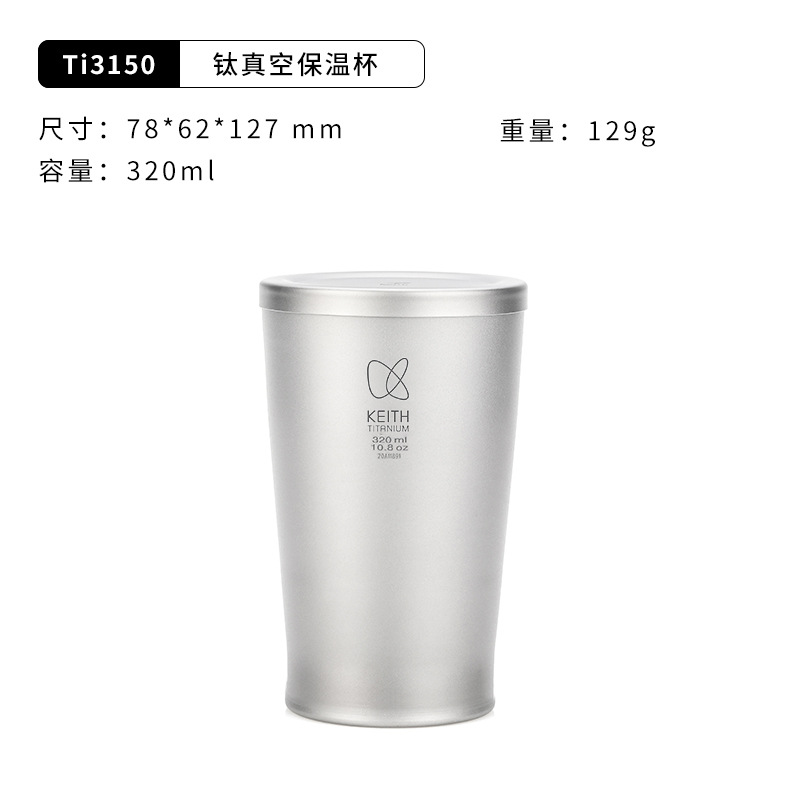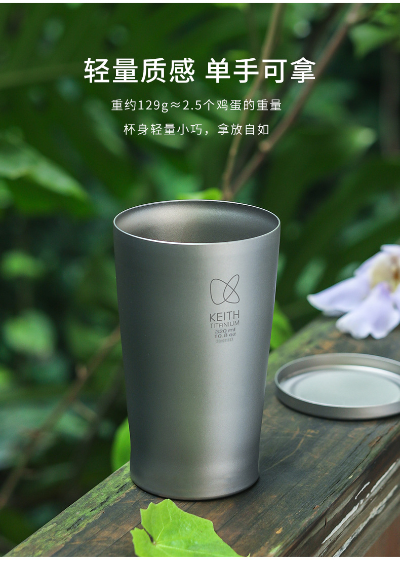KEITH 장갑 순수 티타늄 보온병 컵 홈 오피스 티 컵 진공 절연 커버 이중 금속 물 컵스토어 가기