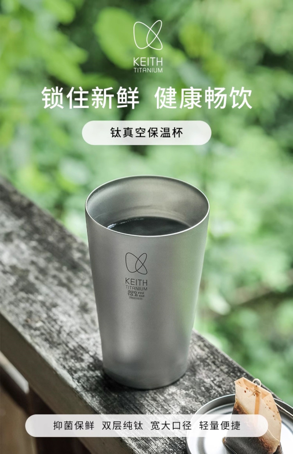 KEITH 장갑 순수 티타늄 보온병 컵 홈 오피스 티 컵 진공 절연 커버 이중 금속 물 컵