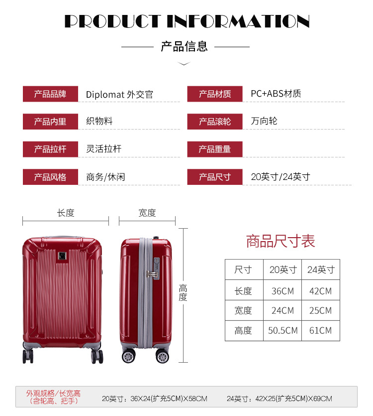 외교관 TC-6013 수하물 케이스 대용량 수하물 케이스 남성 확장층 비밀번호 가방 외교관
