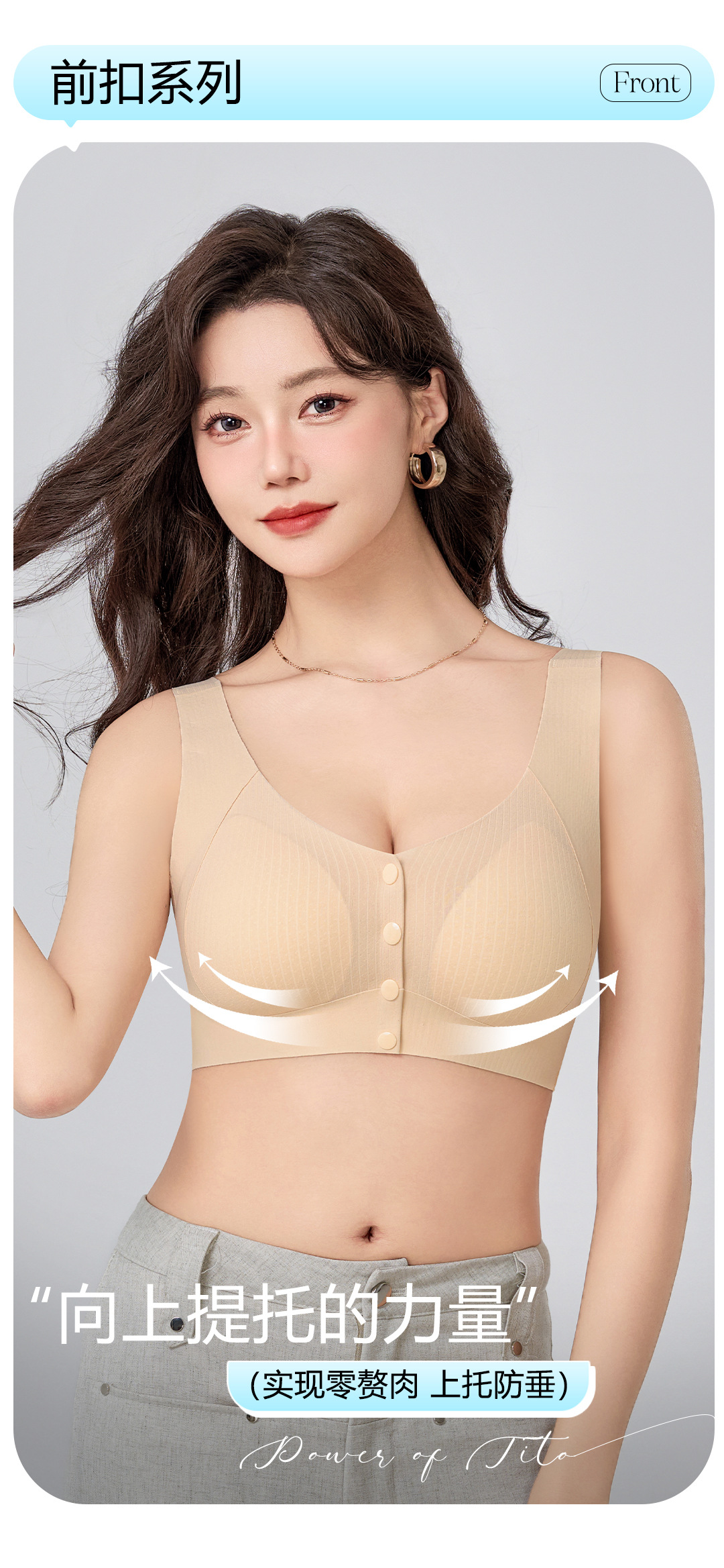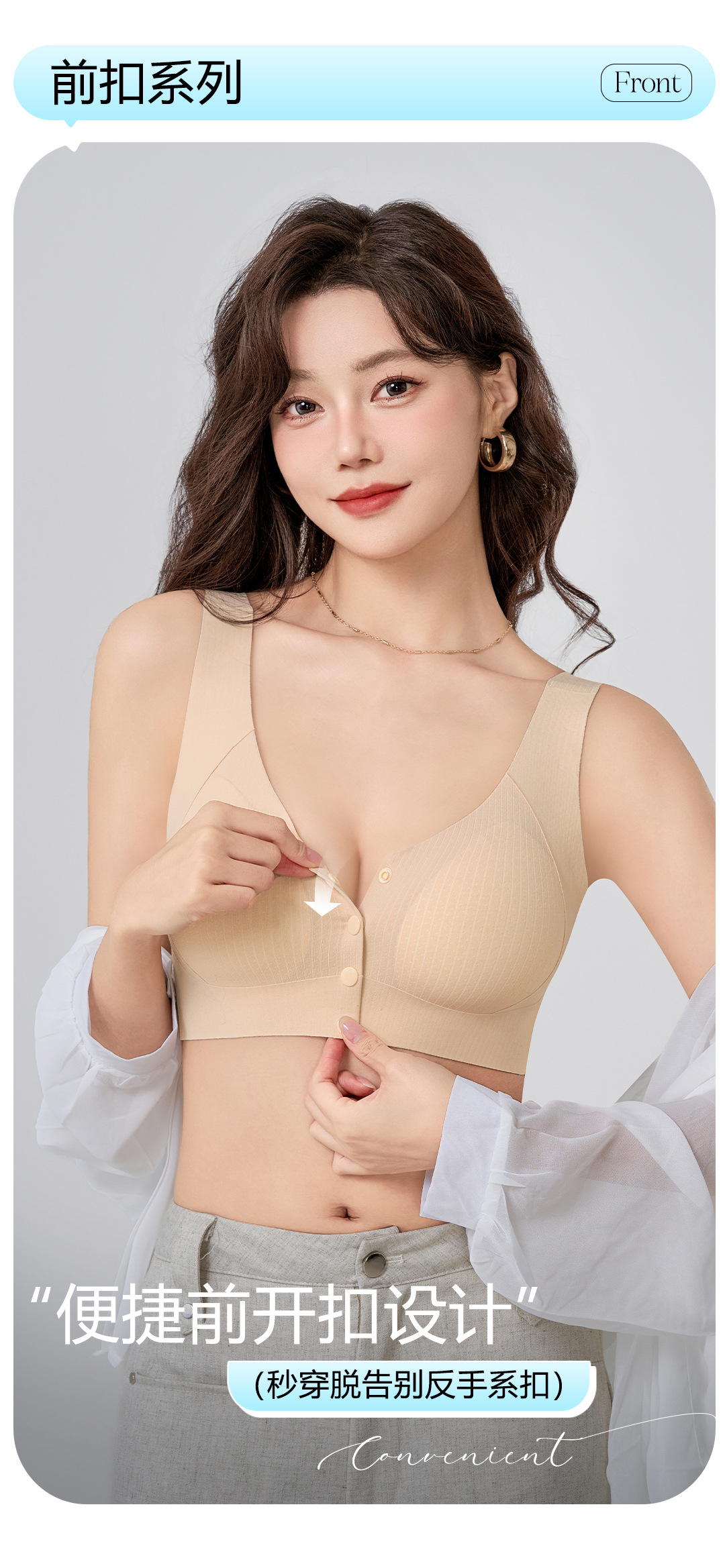 Zhuo Yani 8895 프론트 오프닝 버클 비 스틸 링 조끼 타입 플러스 사이즈 트레이스 리스 통통녀 여자 스포츠 브라 감압 컵