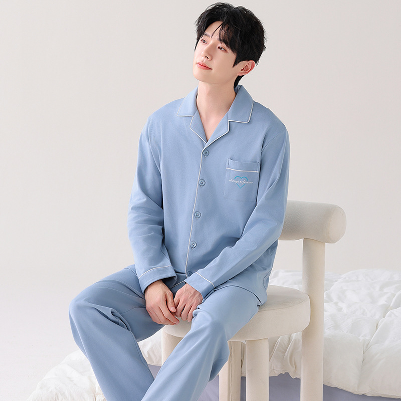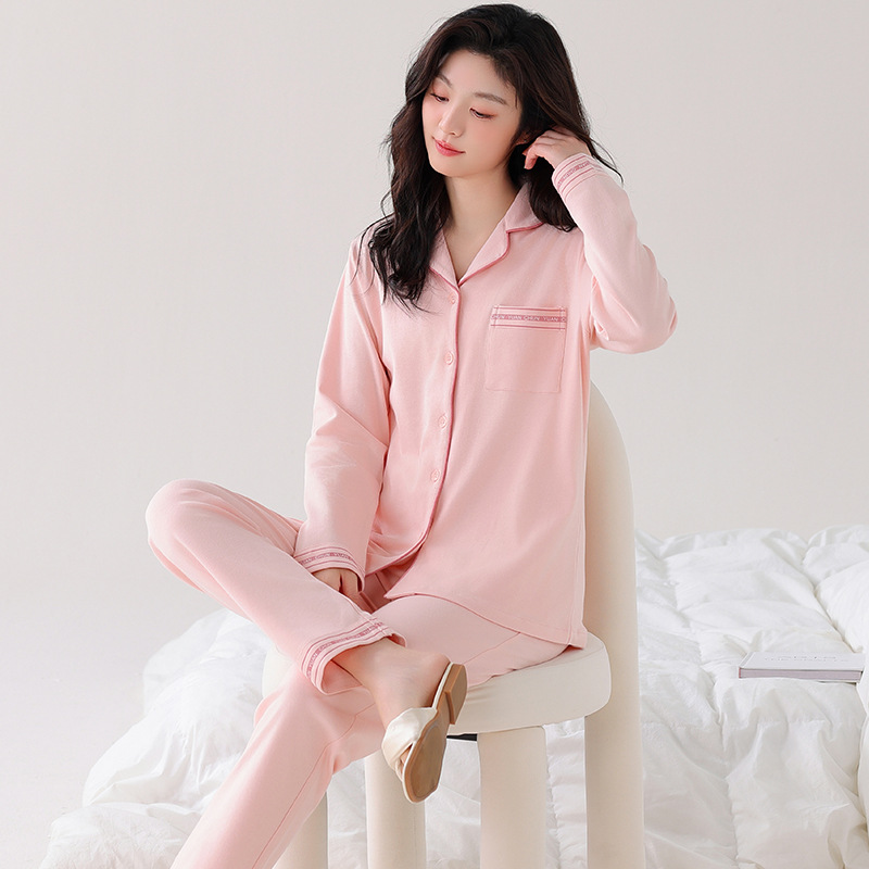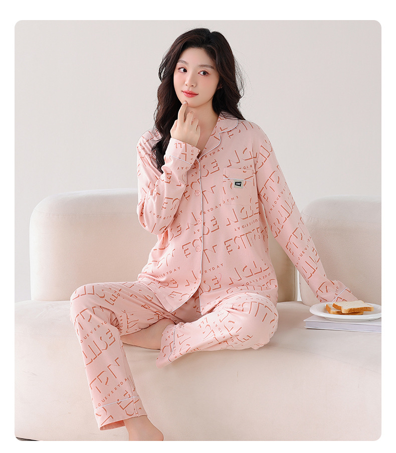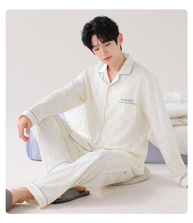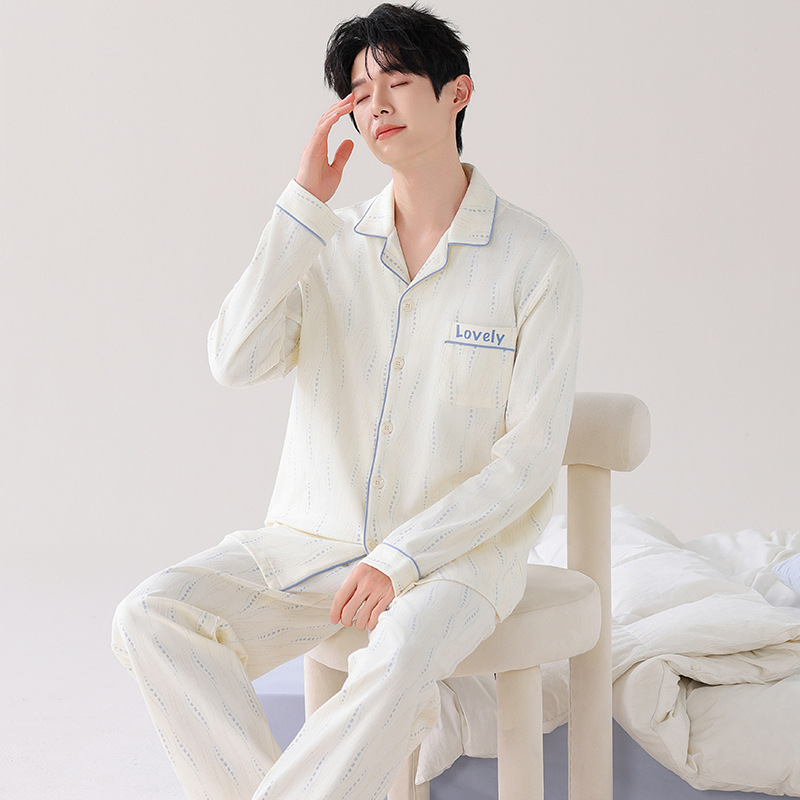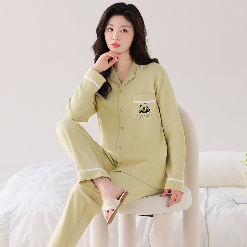 [항균성 신장면] 커플 잠옷 여성 봄 · 가을 면 긴팔 카디건 얇은 남성용 홈 의류 세트