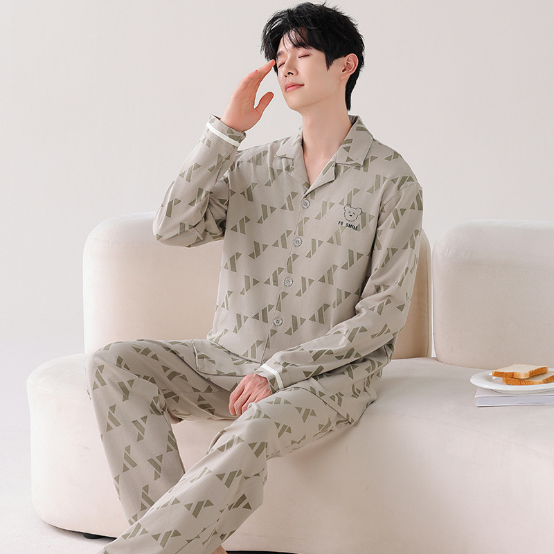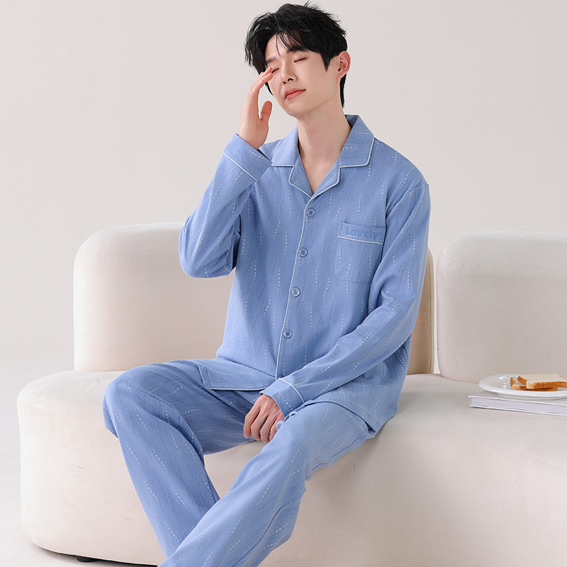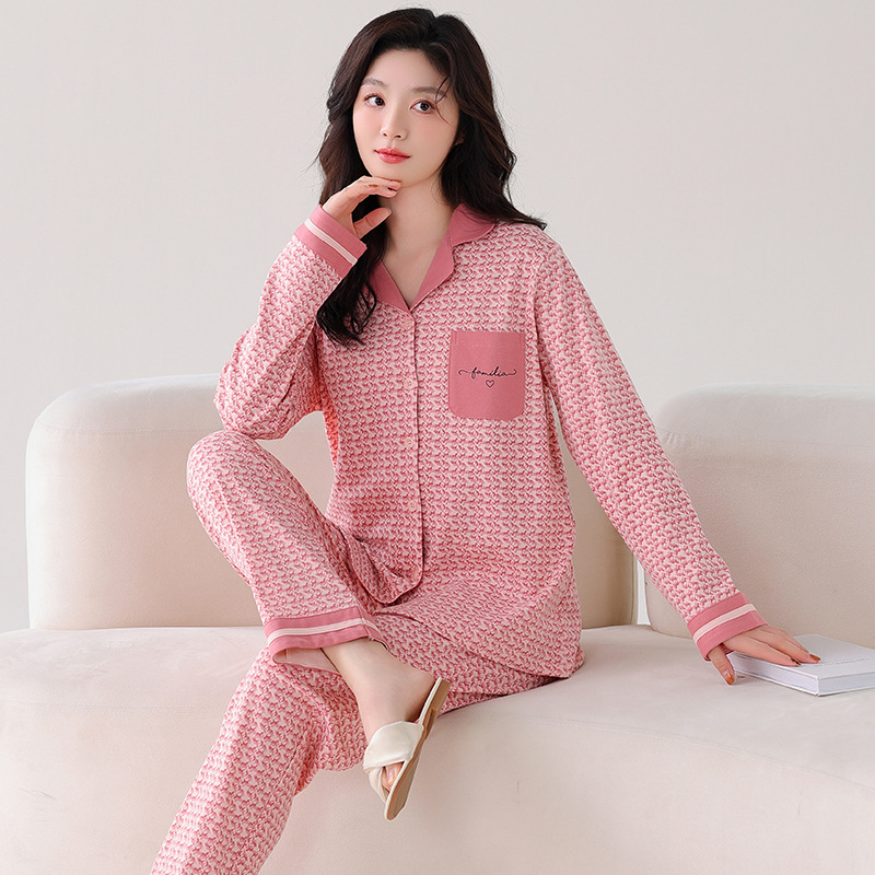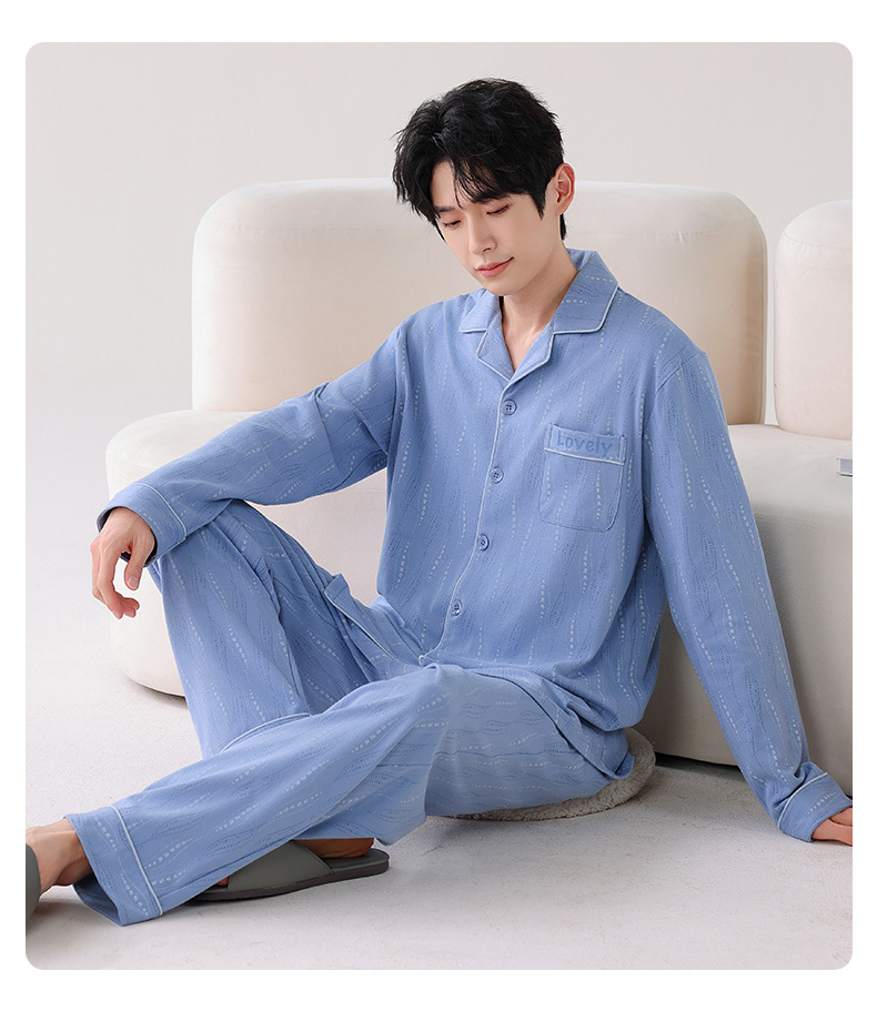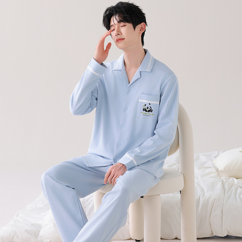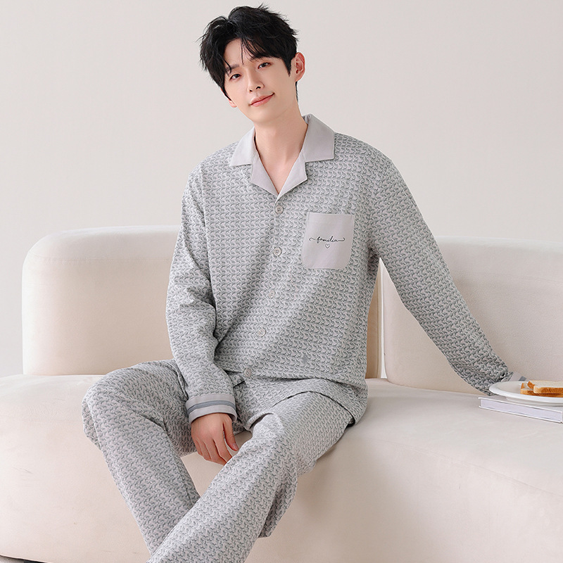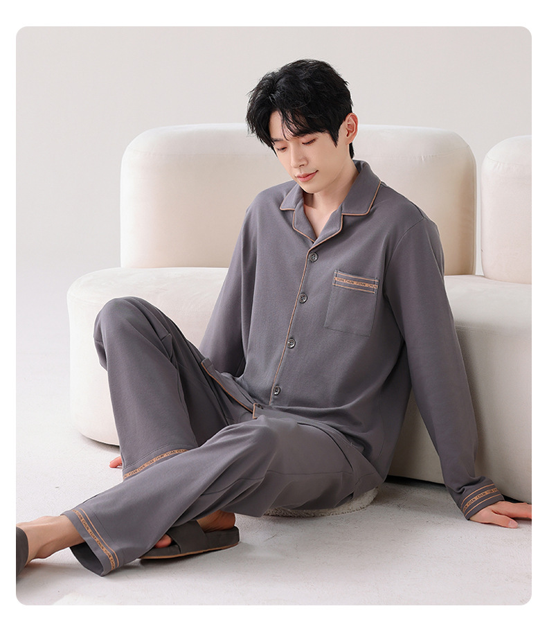 [항균성 신장면] 커플 잠옷 여성 봄 · 가을 면 긴팔 카디건 얇은 남성용 홈 의류 세트