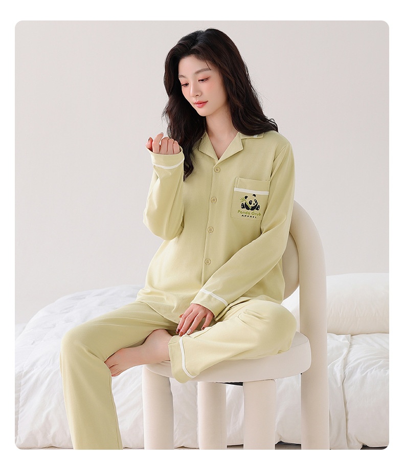 [항균성 신장면] 커플 잠옷 여성 봄 · 가을 면 긴팔 카디건 얇은 남성용 홈 의류 세트스토어 가기