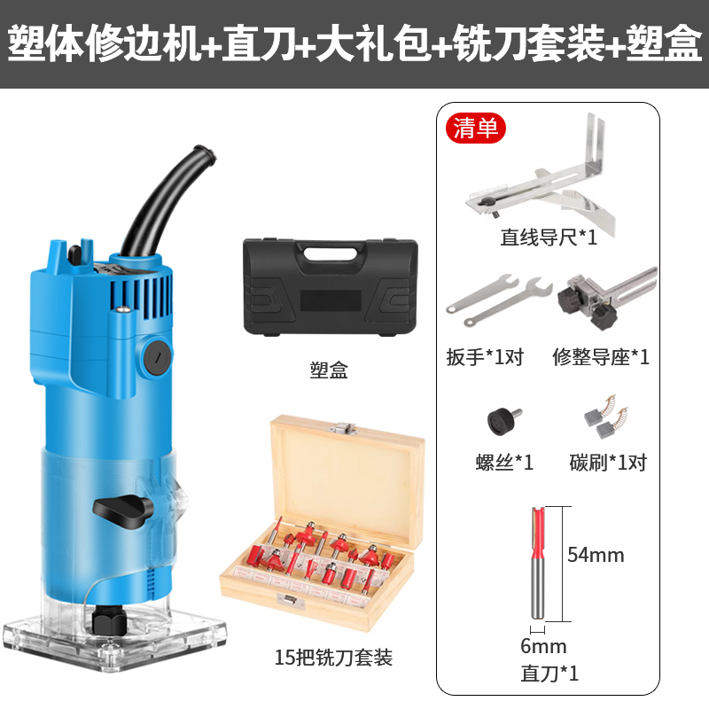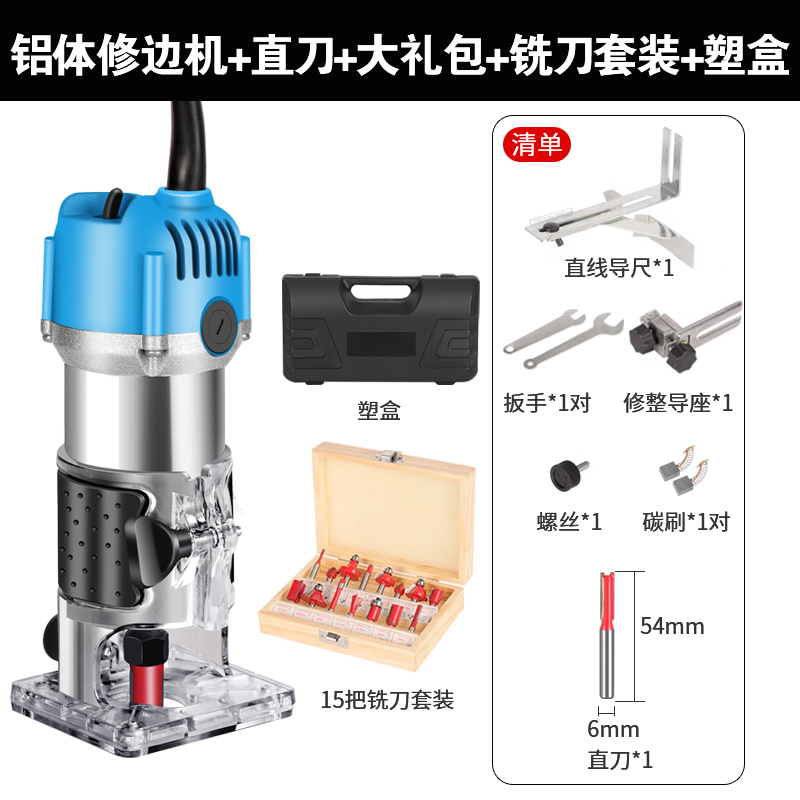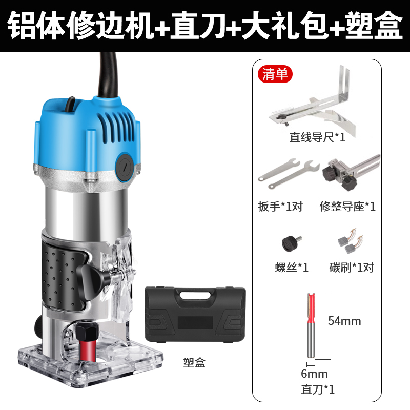 • 알루미늄 바디 트리밍 기계 + 직선 칼 + 선물 패키지 + 밀링 커터 세트 + 플라스틱 상자