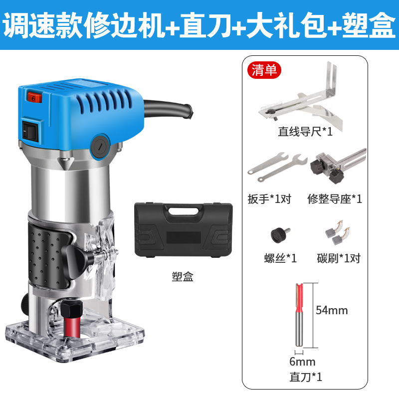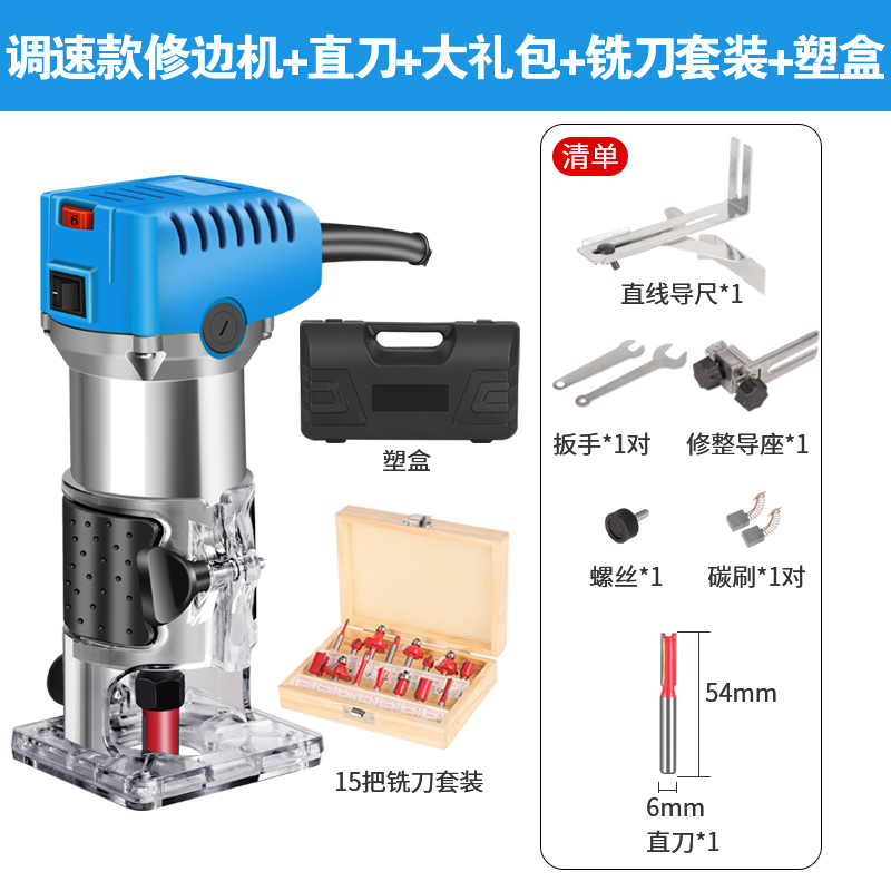 • 속도 조절 트리밍 기계 + 직선 칼 + 선물 패키지 + 밀링 커터 세트 + 플라스틱 상자