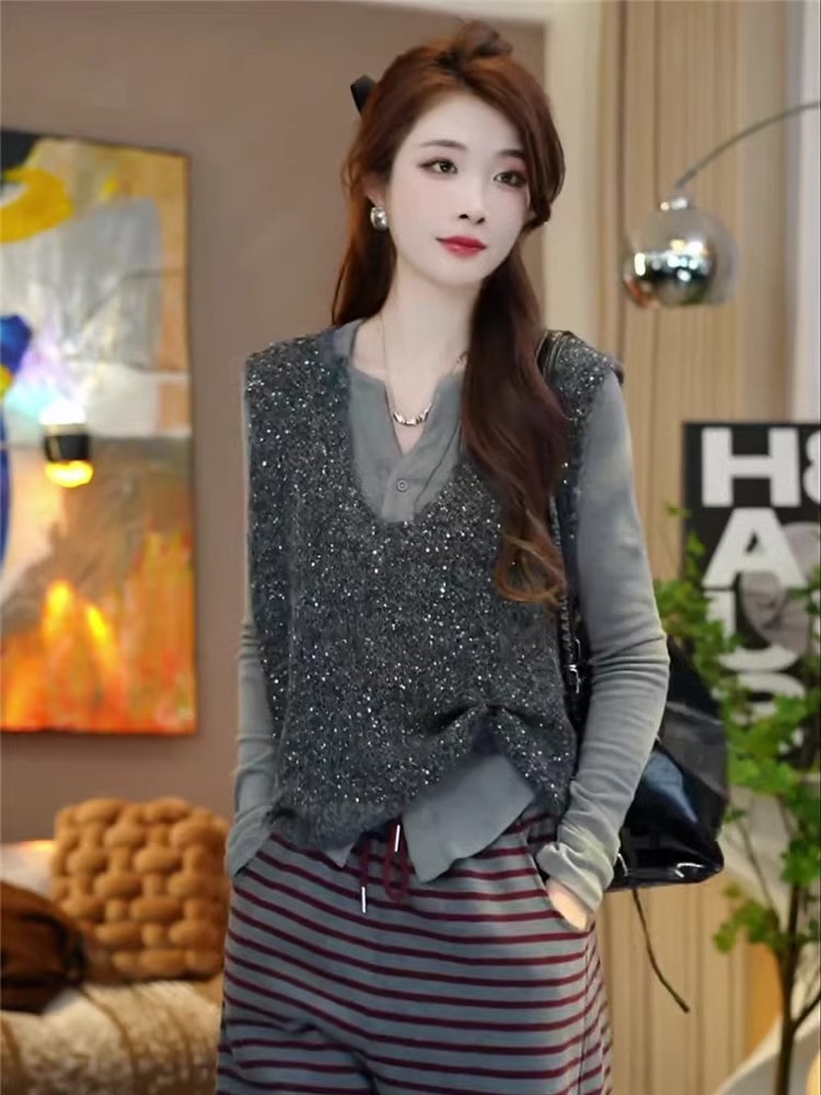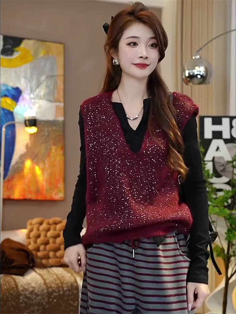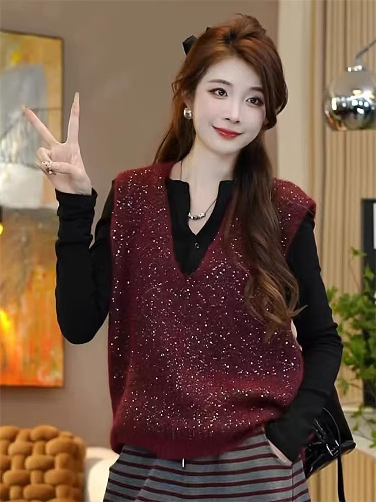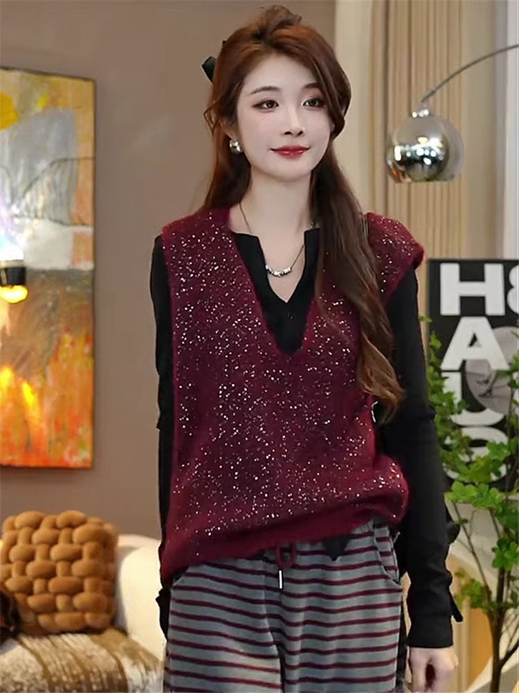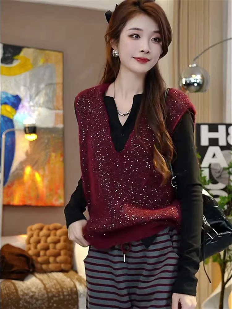 유럽 속편 민소매 니트 조끼 여자 2024 가을과 겨울 새로운 스택 고급 유행 조끼 탑스토어 가기