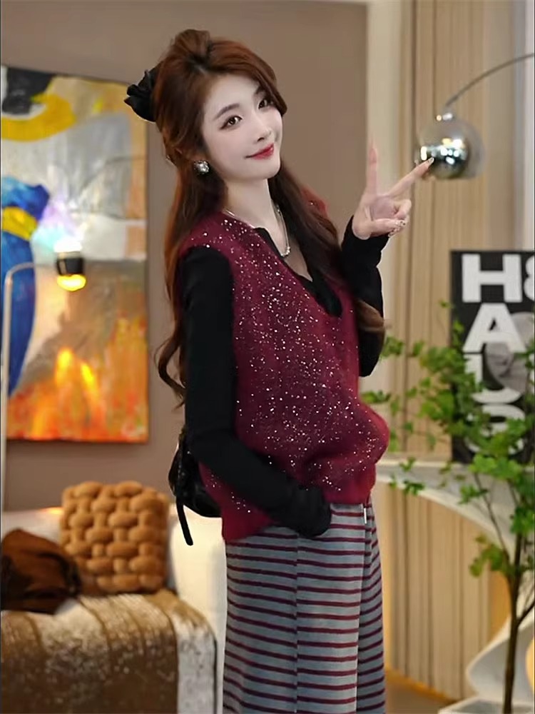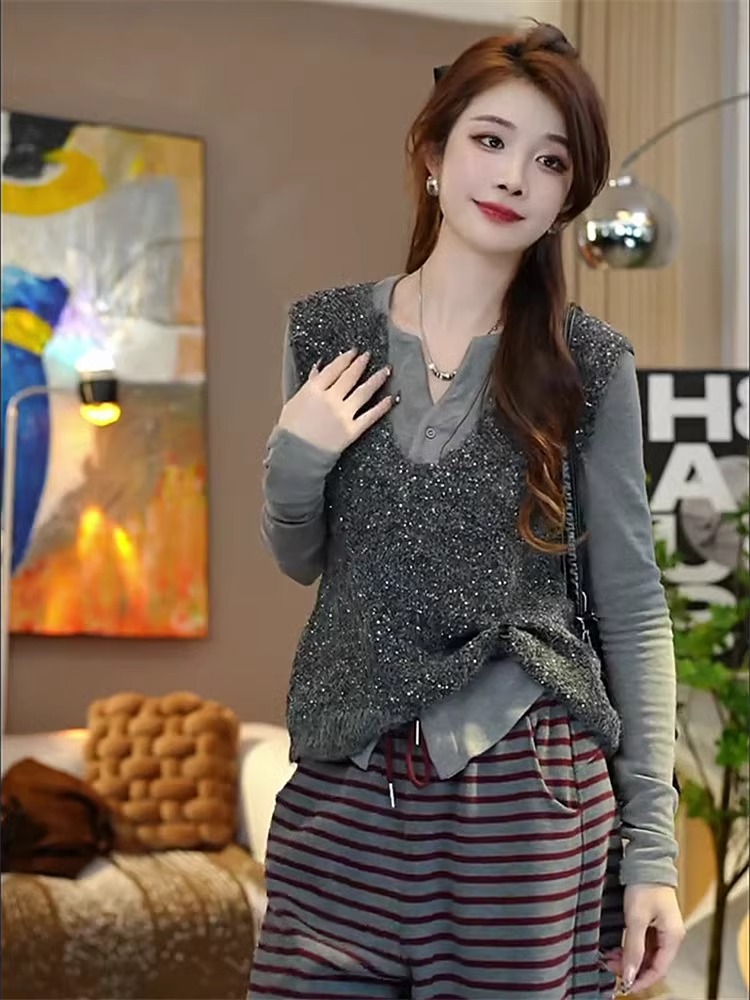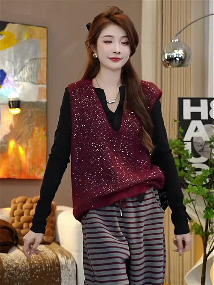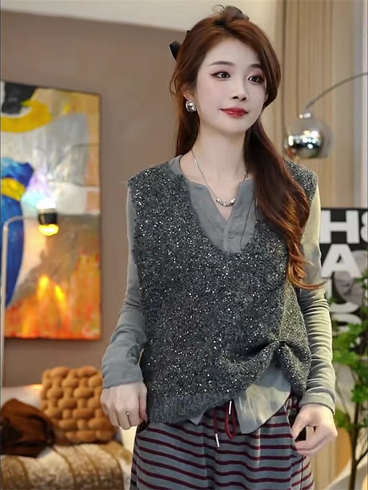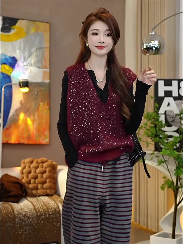유럽 속편 민소매 니트 조끼 여자 2024 가을과 겨울 새로운 스택 고급 유행 조끼 탑스토어 가기