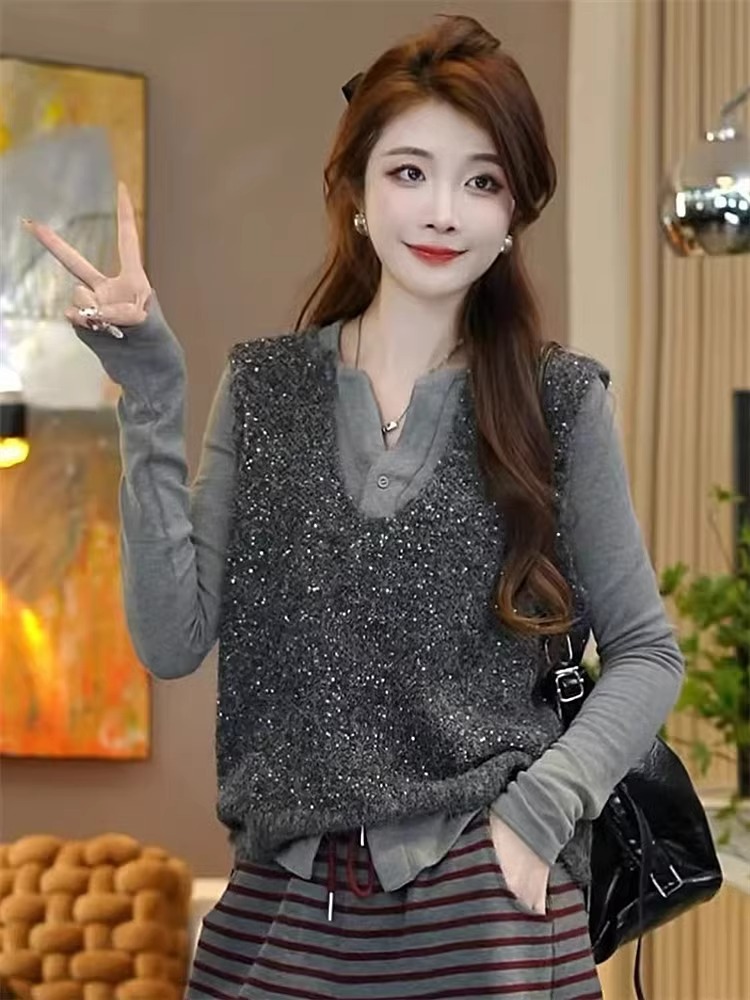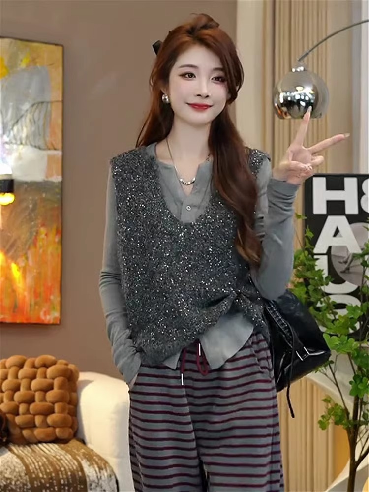 유럽 속편 민소매 니트 조끼 여자 2024 가을과 겨울 새로운 스택 고급 유행 조끼 탑