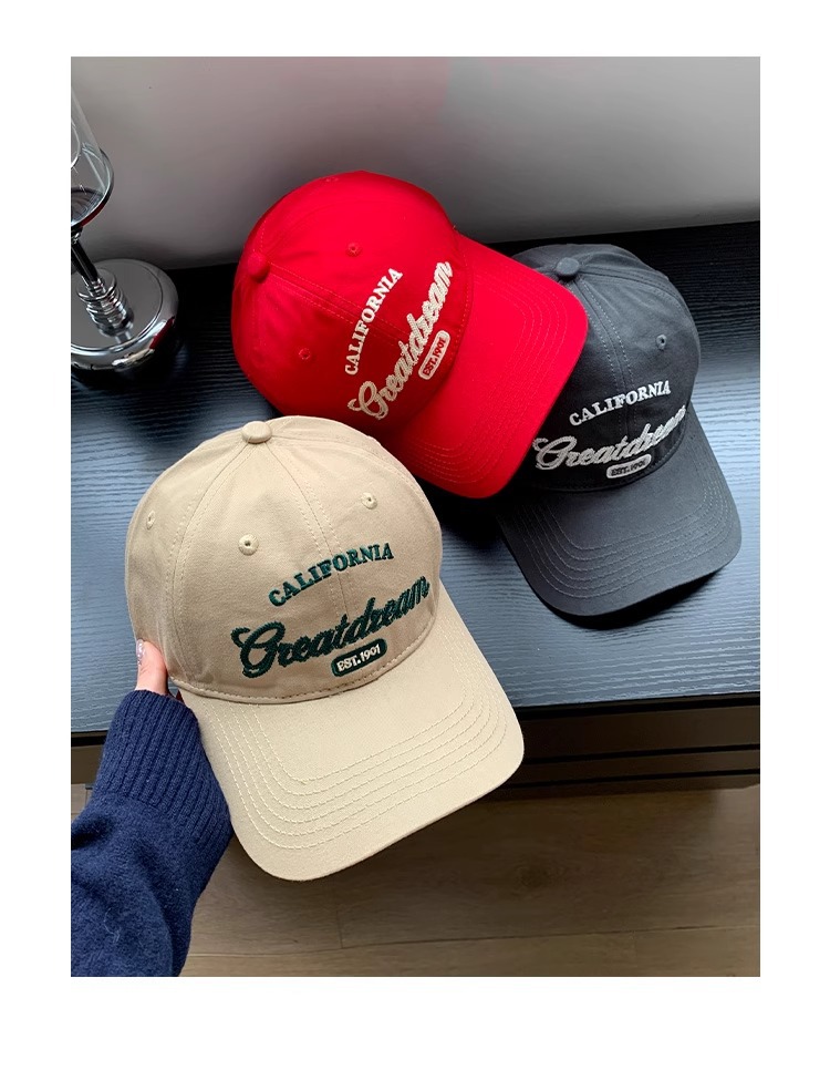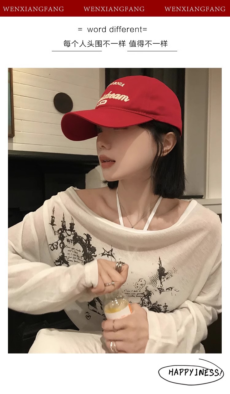 편지 자수 빨간 야구 모자 여자 봄과 여름 큰 머리 올 매치 모자 하이 퀄리티 얼굴 작은 하드 탑 모자스토어 가기