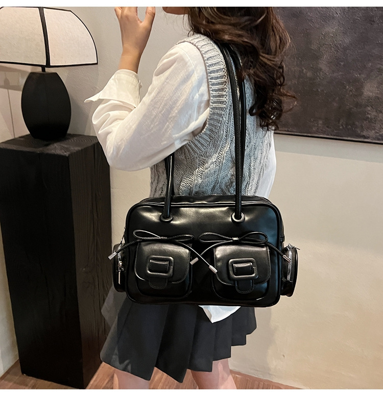 학생 클래스 어깨 언더암 가방 여성의 새로운 대용량 보스턴 가방 귀여운 활 어깨 배낭