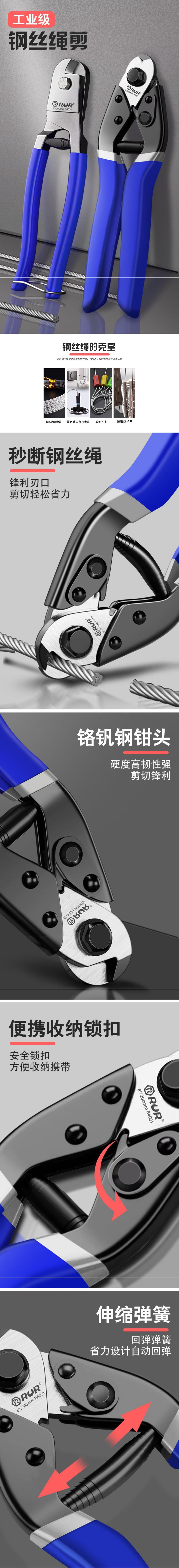 와이어 로프 가위 와이어 커터 8 인치 와이어 커터 리드 씰 컷 로프 건너 뛰기 힘 컷 브레이크 라인 빨랫줄 가위스토어 가기