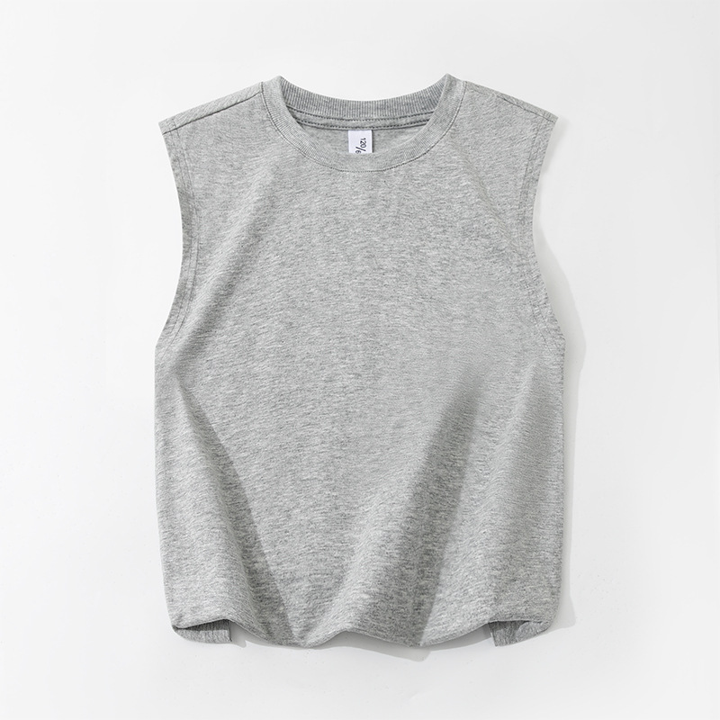 남학생 조끼 순면 여름 신입 아동용 아기 중년 및 노인 어린이 솔리드 컬러 민소매 티셔츠 허리 코트 얇은 외주