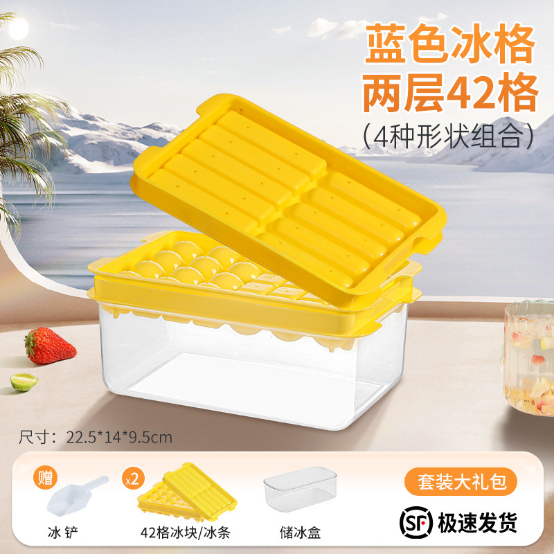 • 신형 [노란색 더블 레이어] 얼음 트레이 42개 (4가지 모양)