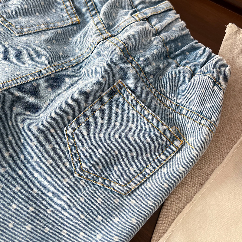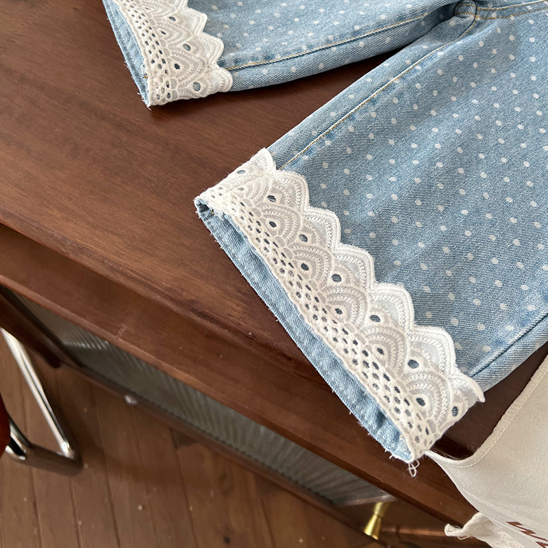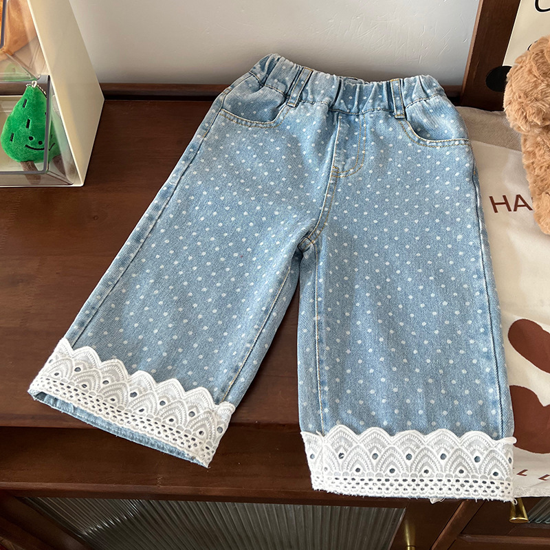 CK251280 소녀 바지 2025 봄 새로운 한국 스타일 캐주얼 폴로 도트 레이스 느슨한 청바지스토어 가기