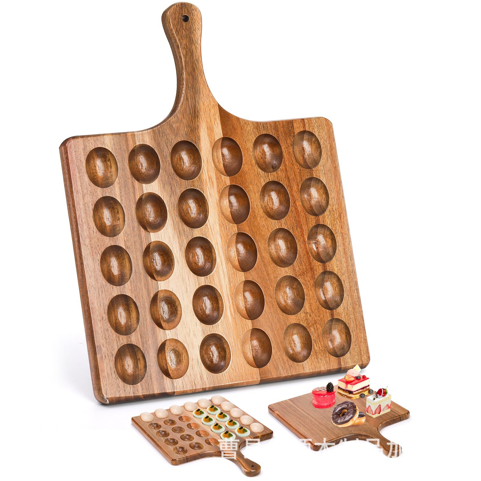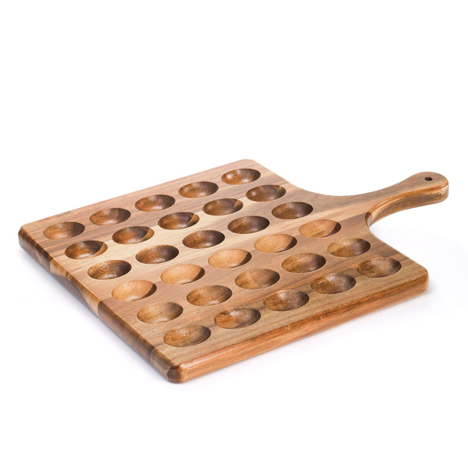 국경 나무 달걀 트레이 손잡이가있는 30 개의 구멍 양면 사용 가능한 저녁 트레이 커팅 보드 주방 고정 계란 트레이