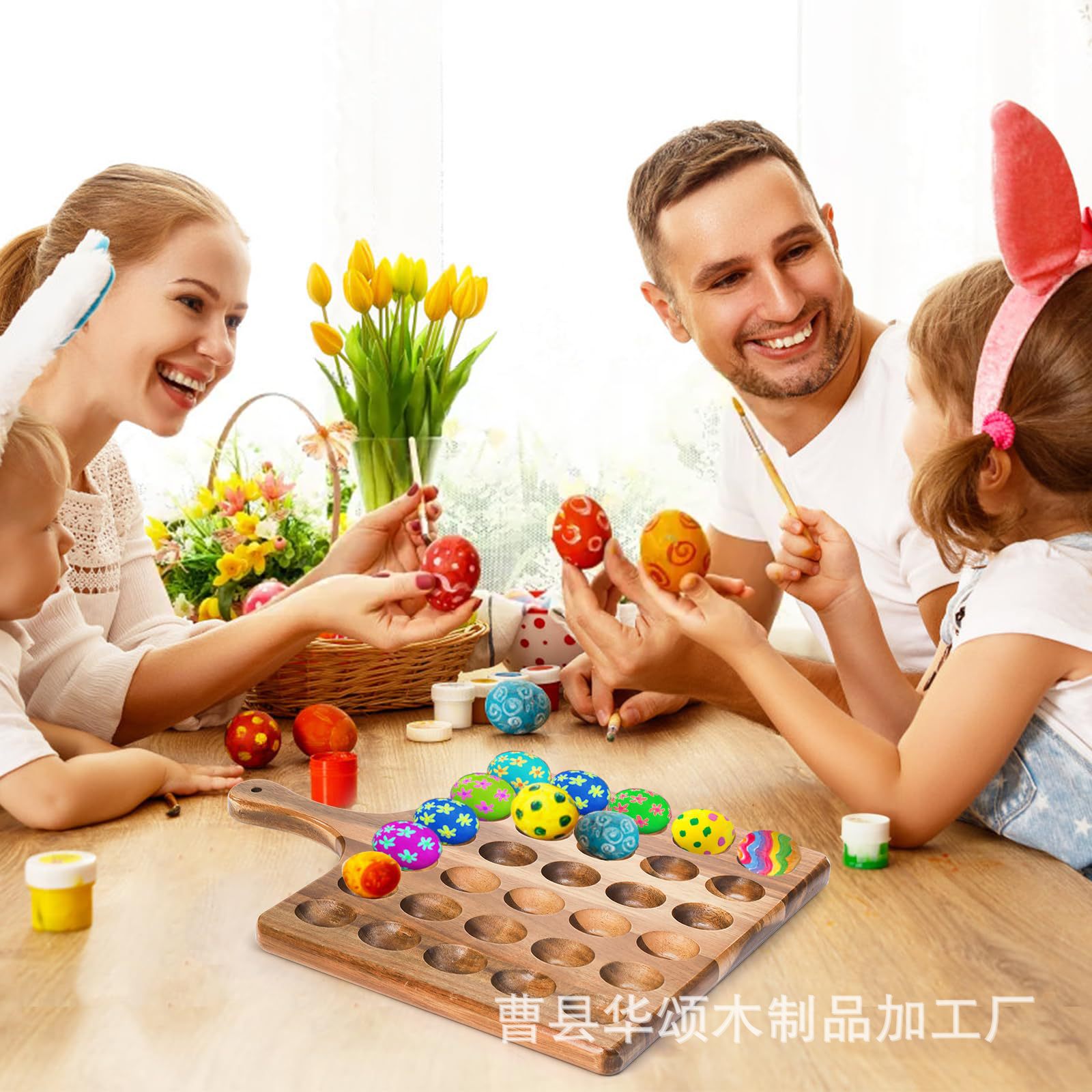 국경 나무 달걀 트레이 손잡이가있는 30 개의 구멍 양면 사용 가능한 저녁 트레이 커팅 보드 주방 고정 계란 트레이스토어 가기