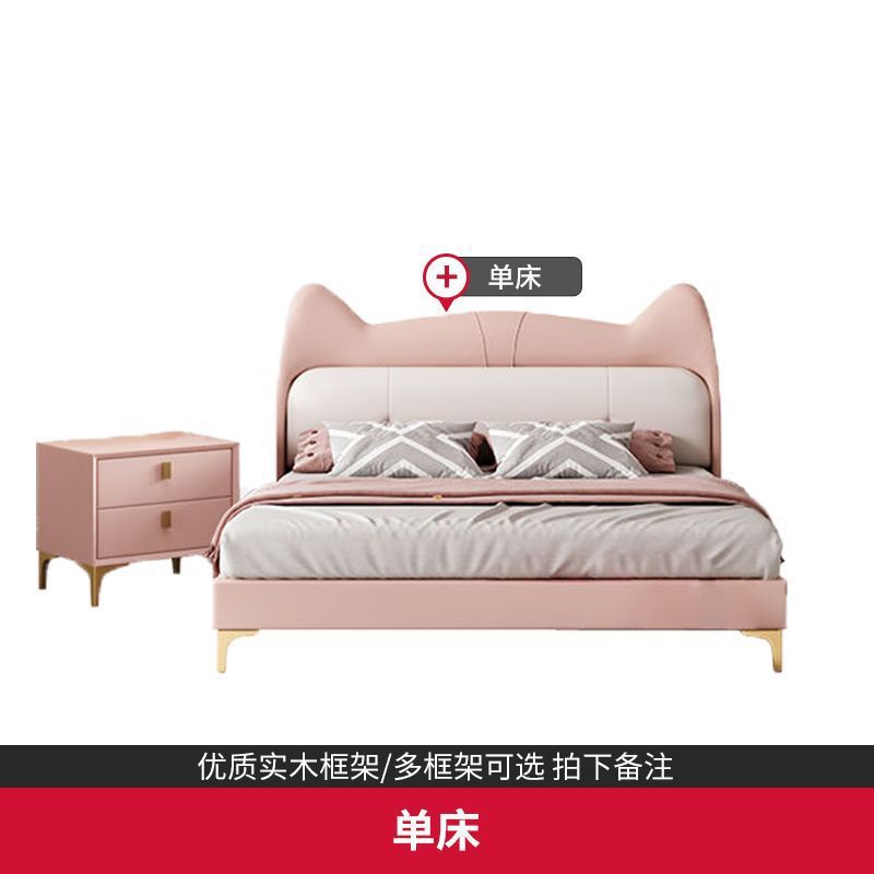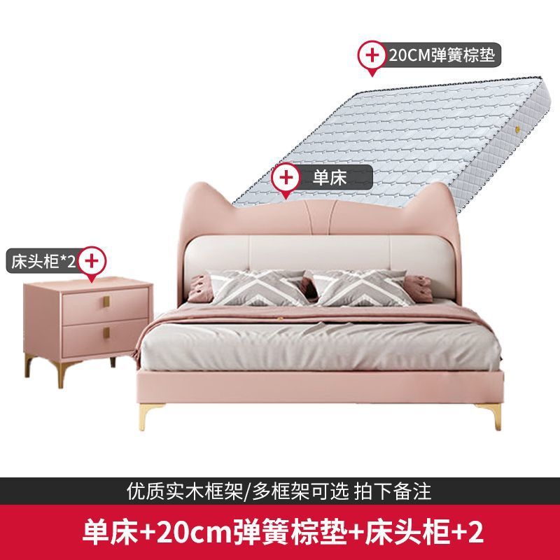 어린이 침대 소녀 핑크 공주 침대 현대 간단한 개성 침실 소년 싱글 침대 소녀