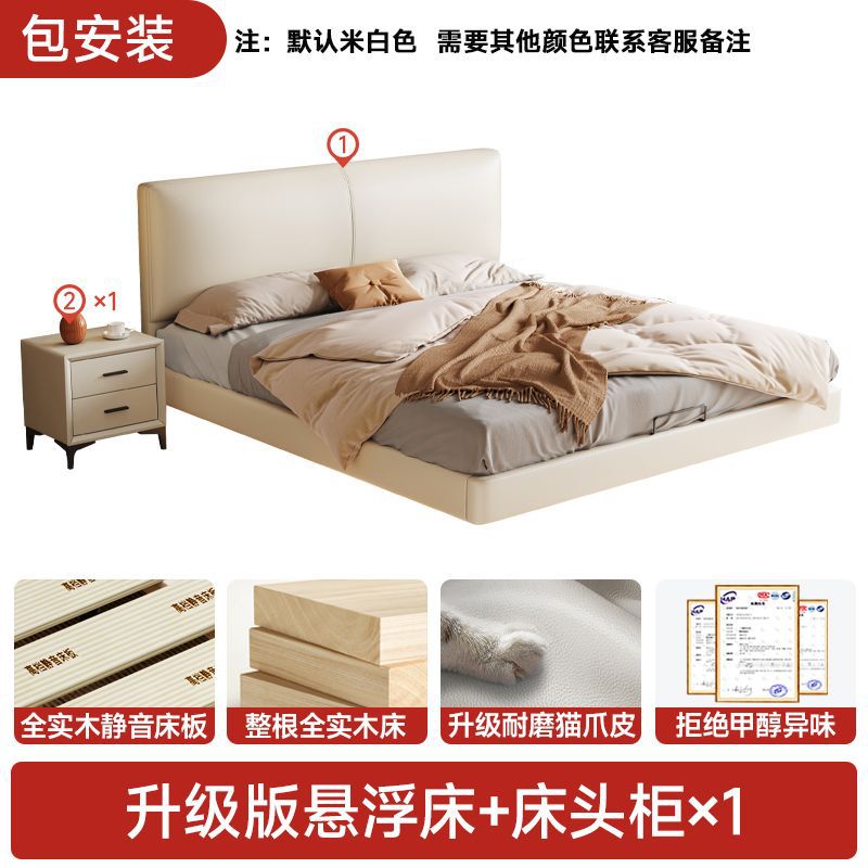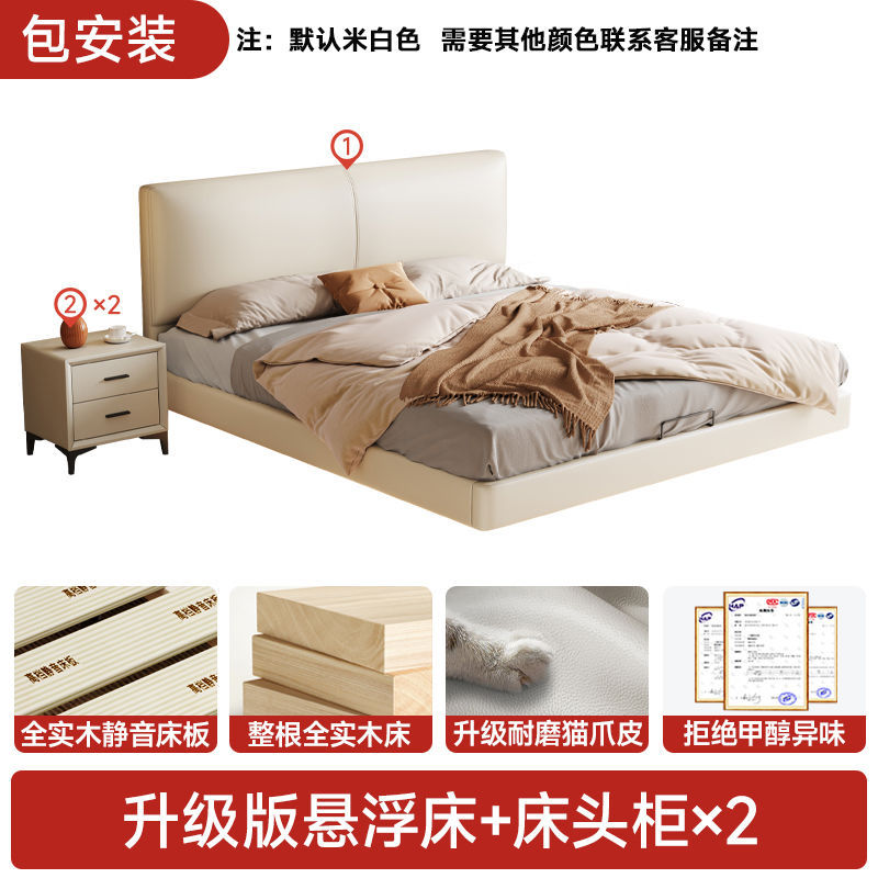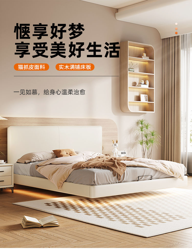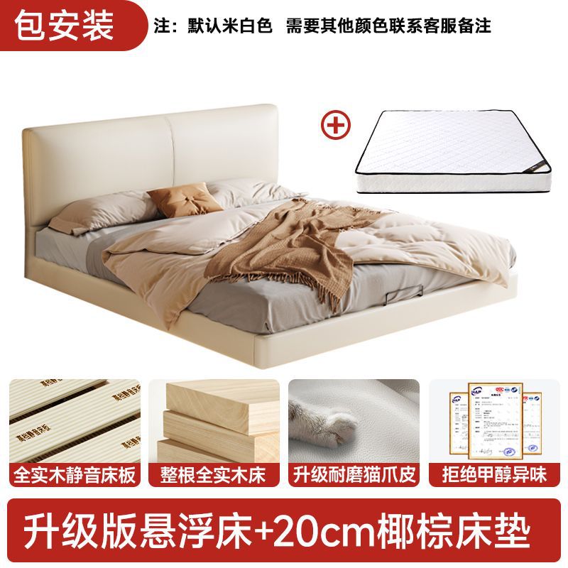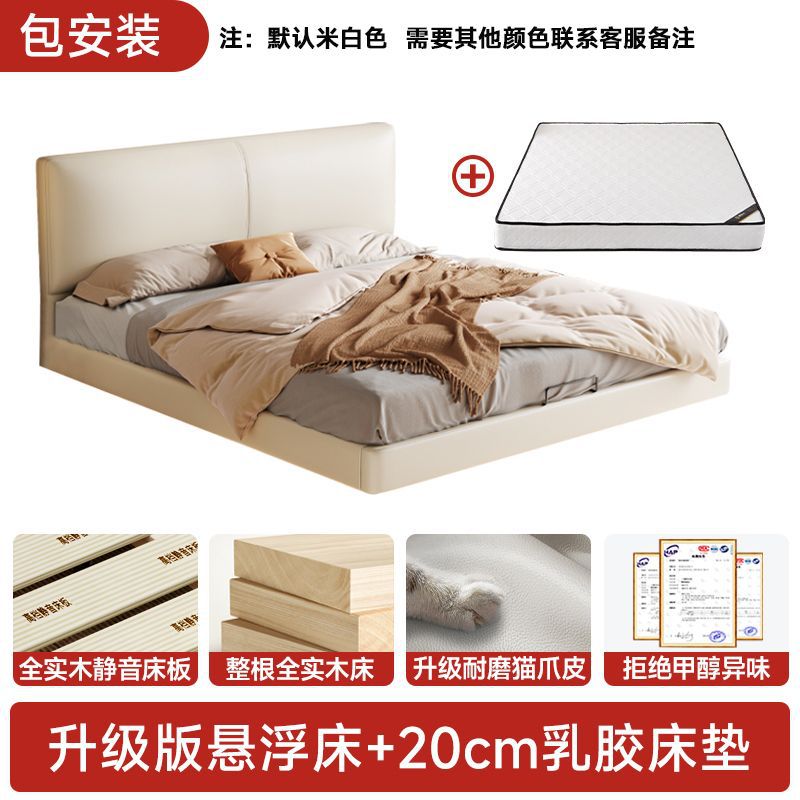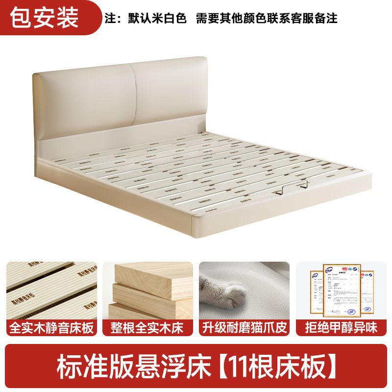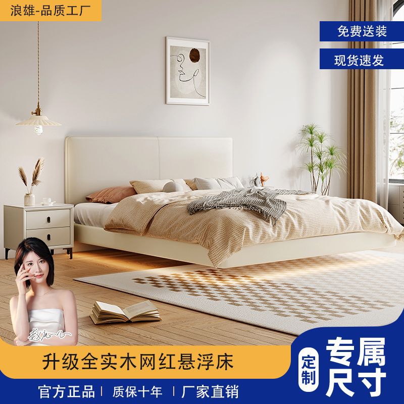 Langxiong 솔리드 우드 서스펜션 침대 크림 스타일 현대 간단한 작은 아파트 침실 가구 더블 침대 얇은 침대 머리 서스펜션 침대스토어 가기