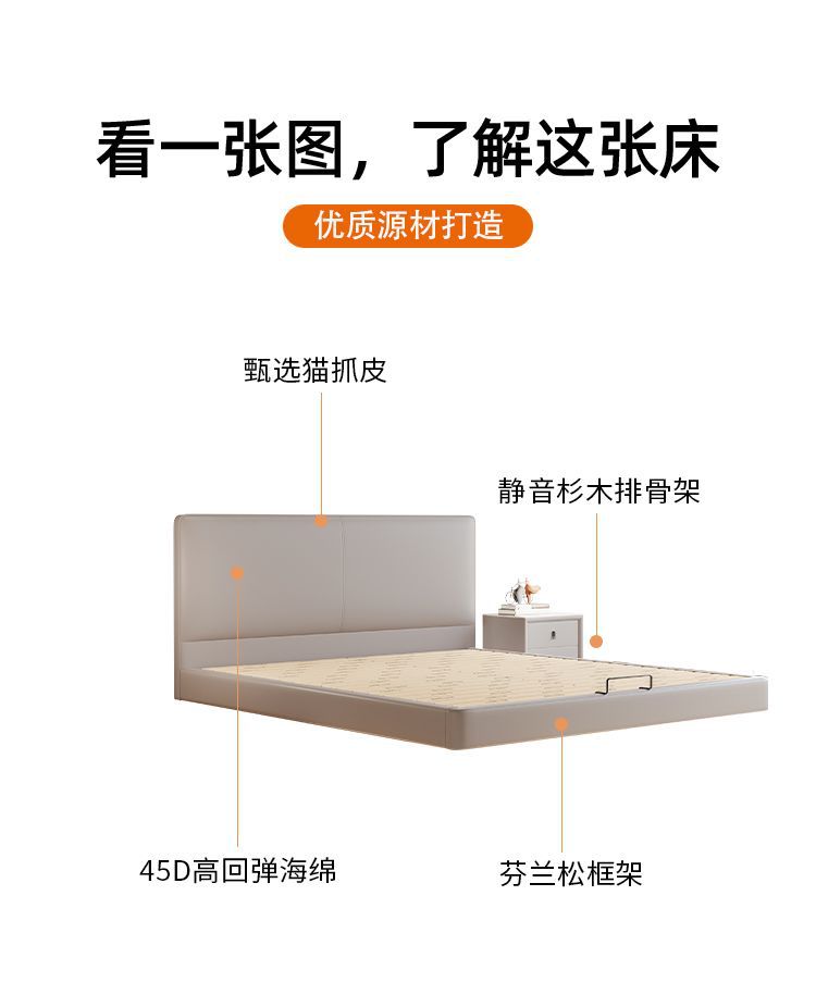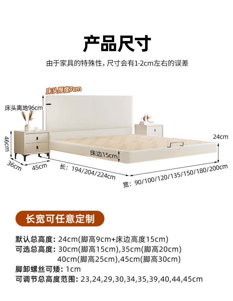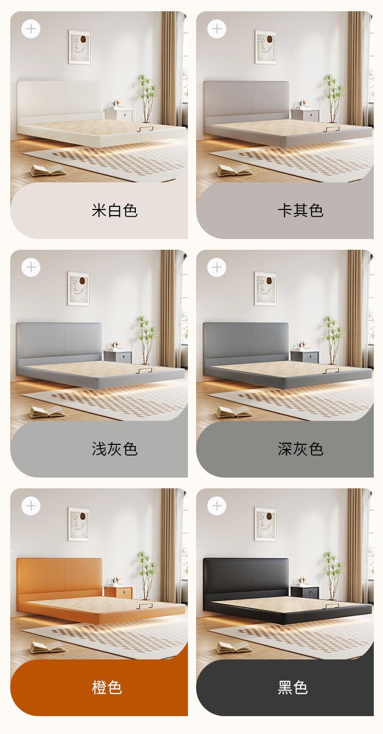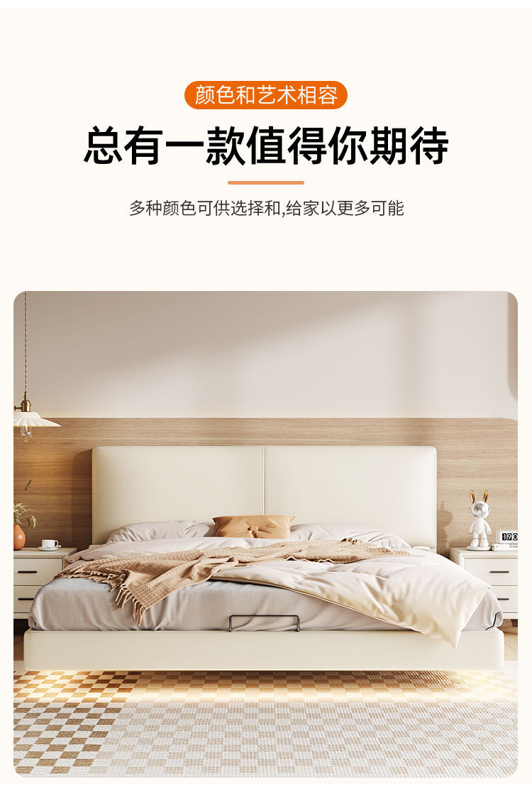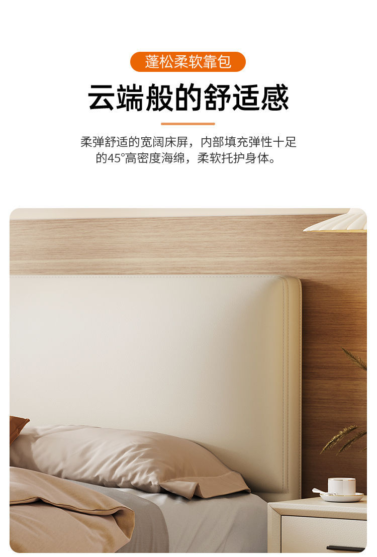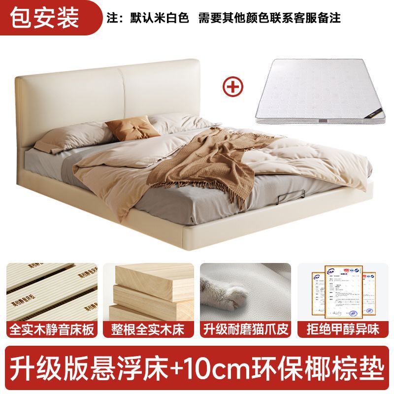 Langxiong 솔리드 우드 서스펜션 침대 크림 스타일 현대 간단한 작은 아파트 침실 가구 더블 침대 얇은 침대 머리 서스펜션 침대스토어 가기