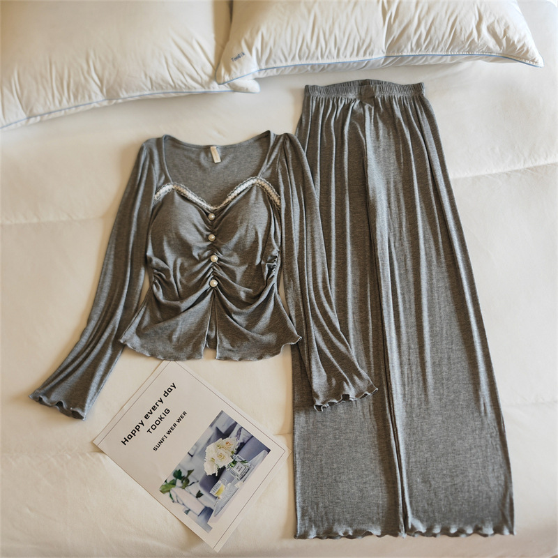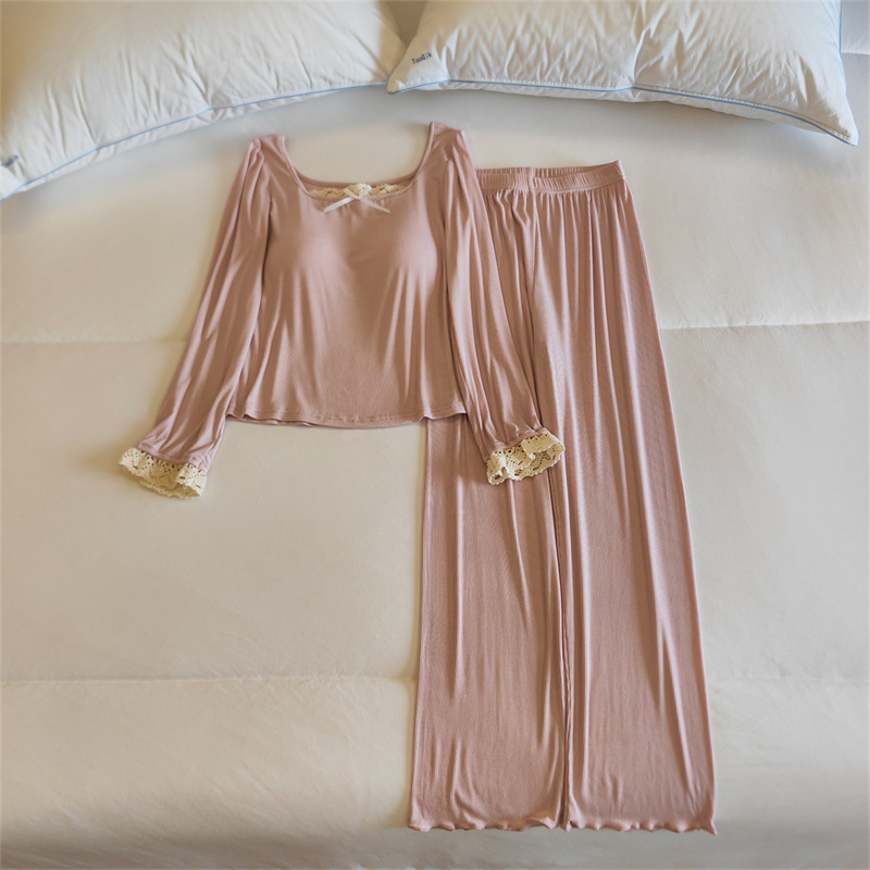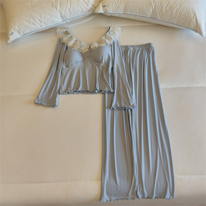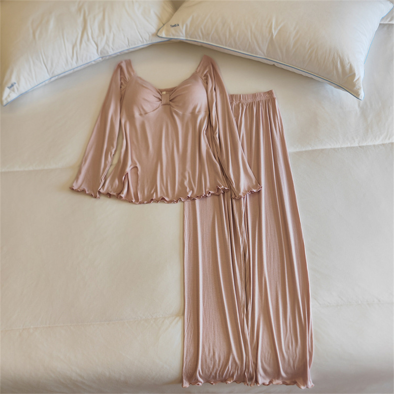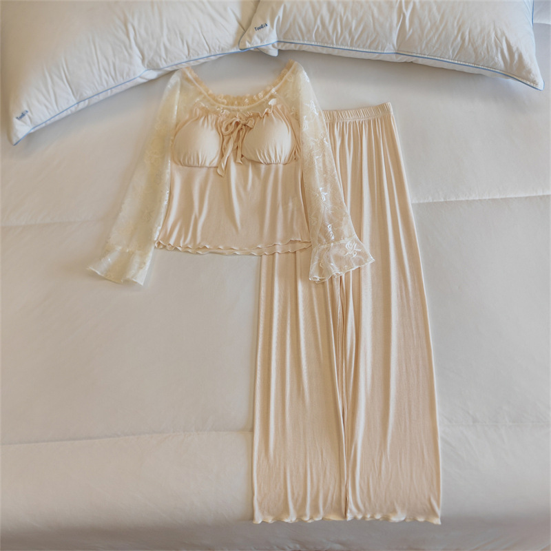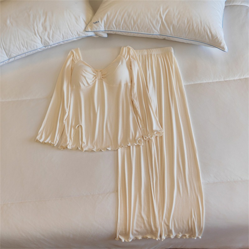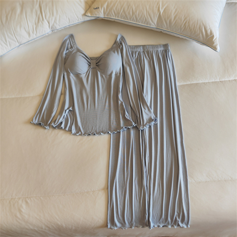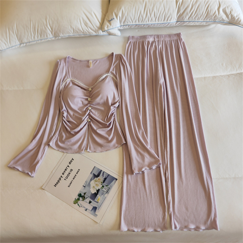잠옷 여성의 봄과 가을 긴 소매 얇은 세트 귀여운 폴로 도트 공주 바람 벨트 가슴 패드 홈 옷 2025 새 여름스토어 가기