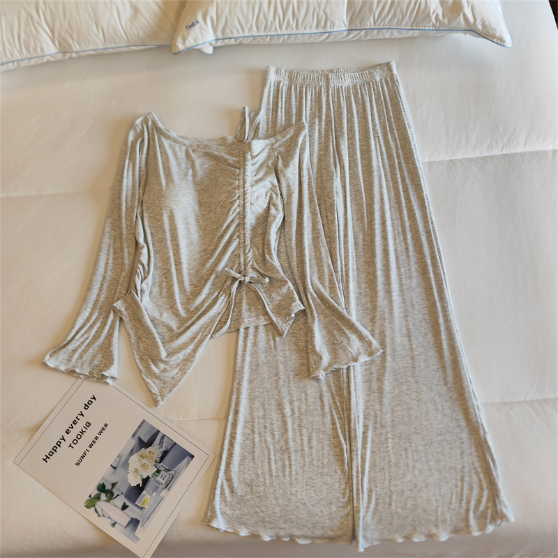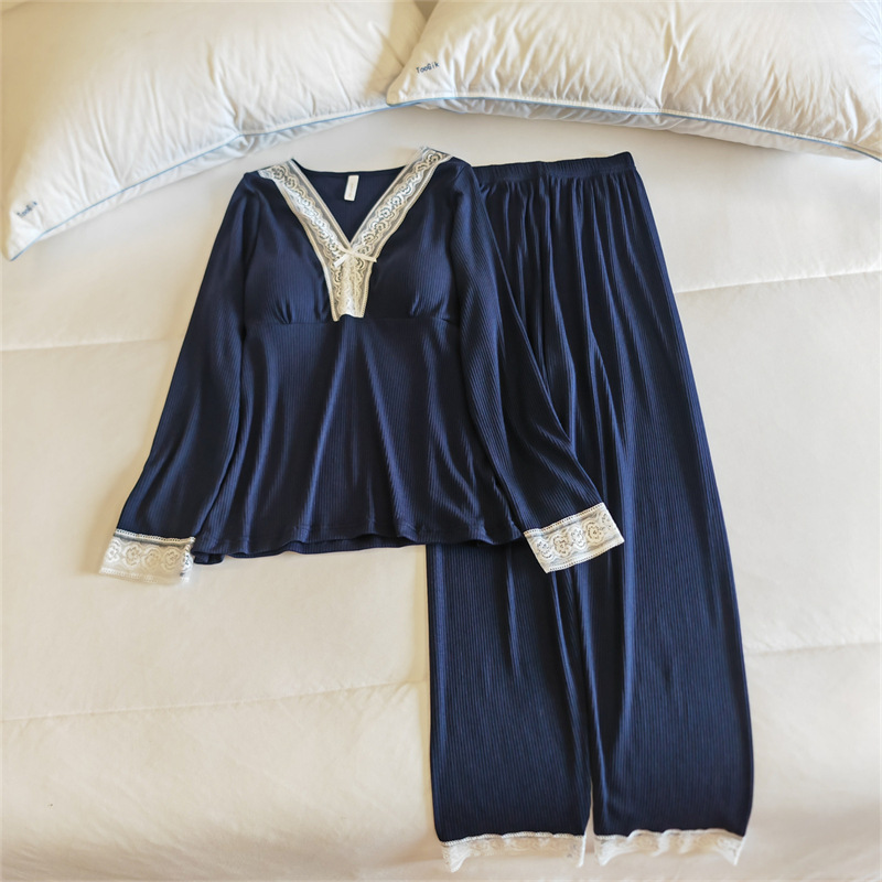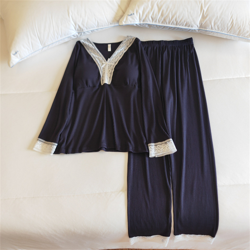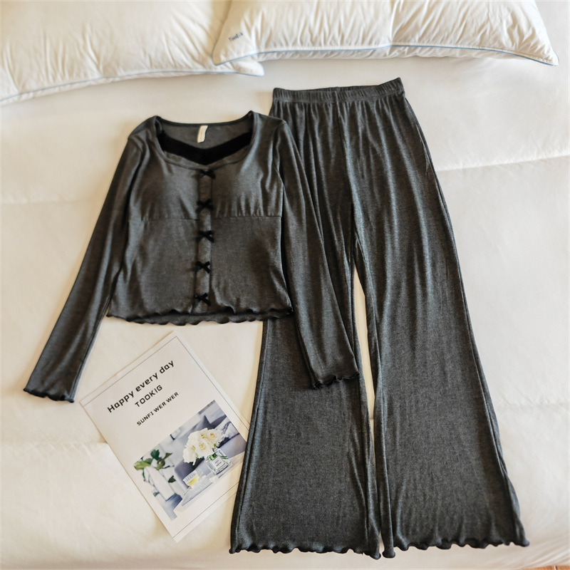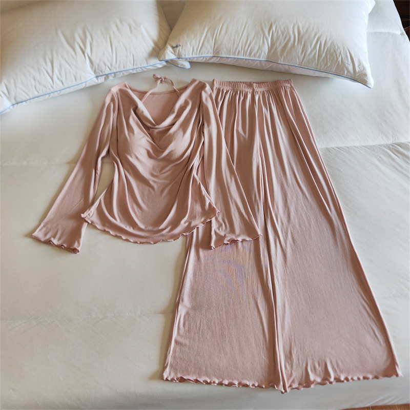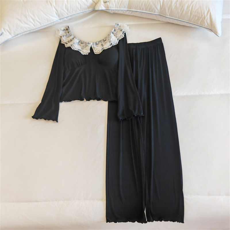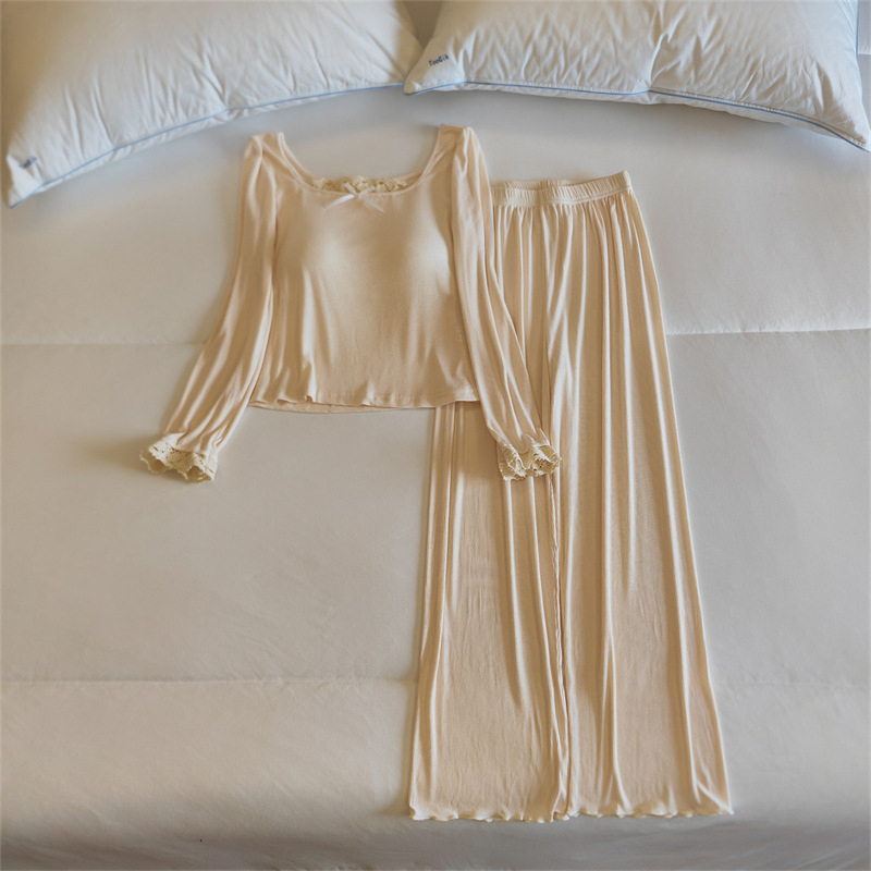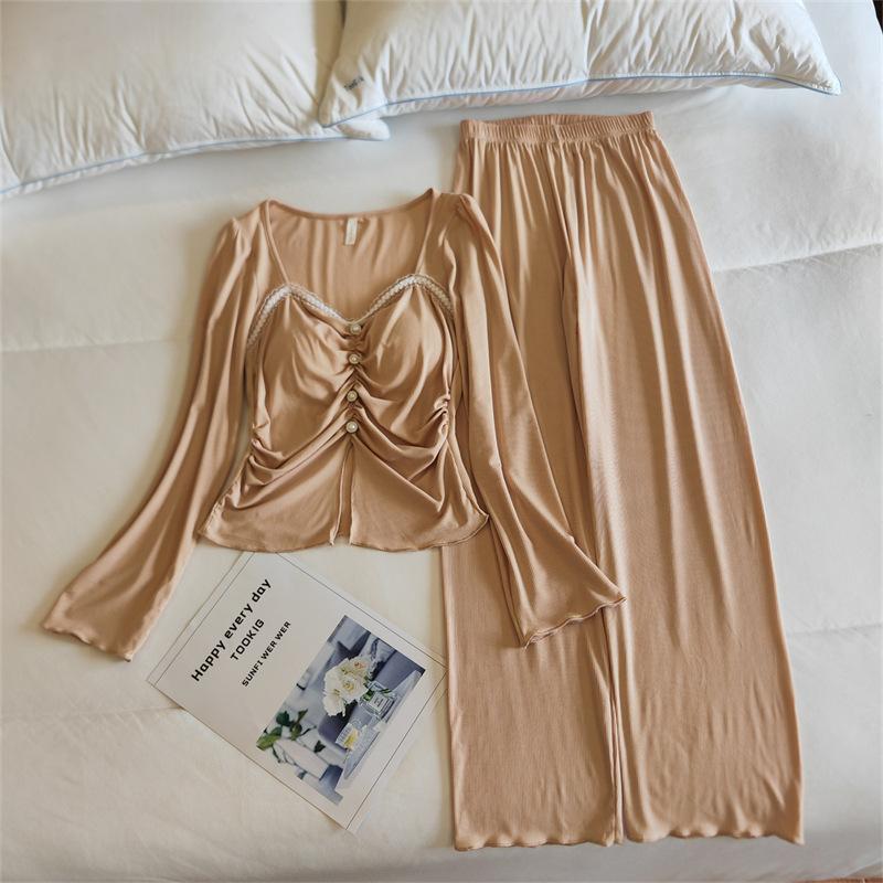 잠옷 여성의 봄과 가을 긴 소매 얇은 세트 귀여운 폴로 도트 공주 바람 벨트 가슴 패드 홈 옷 2025 새 여름스토어 가기