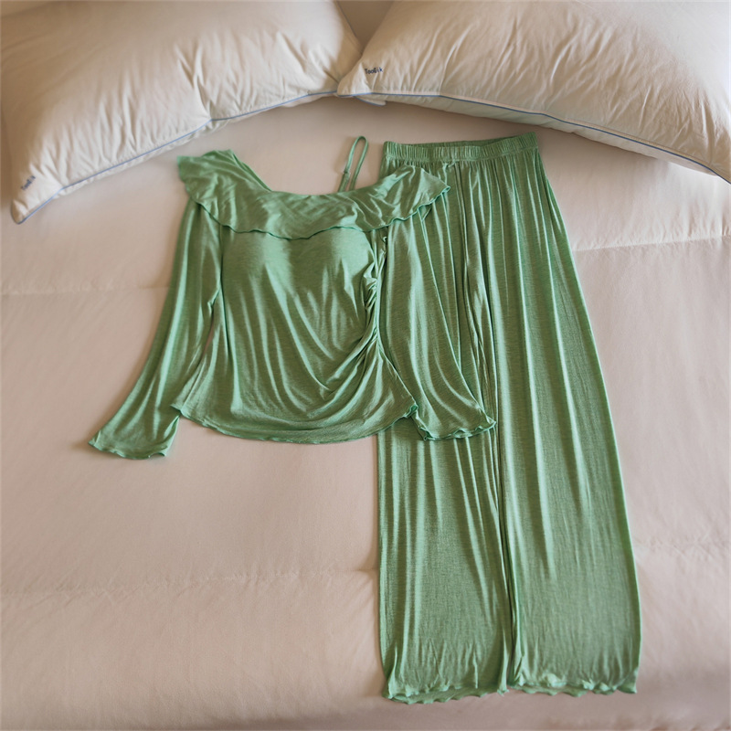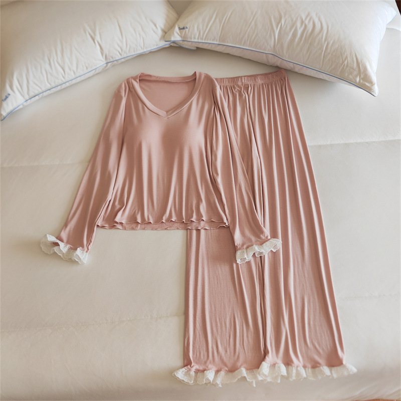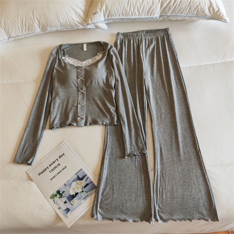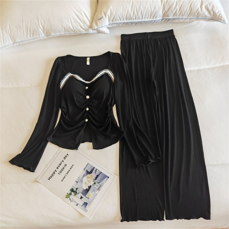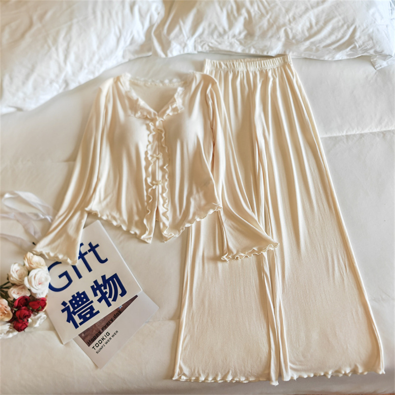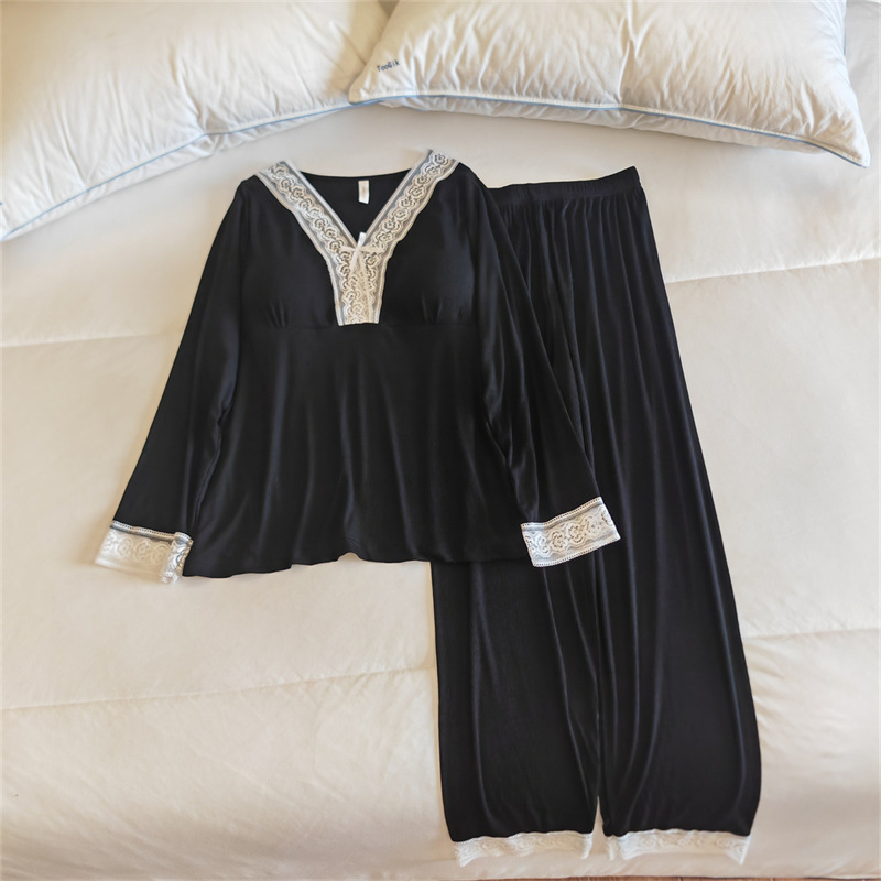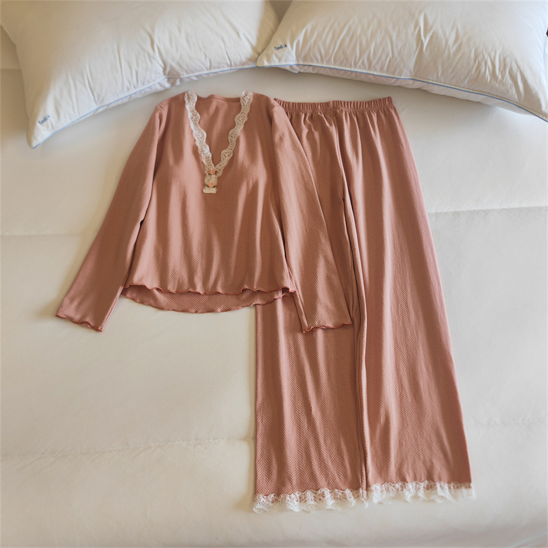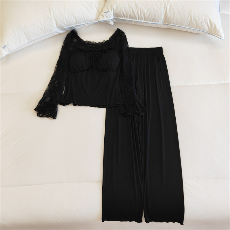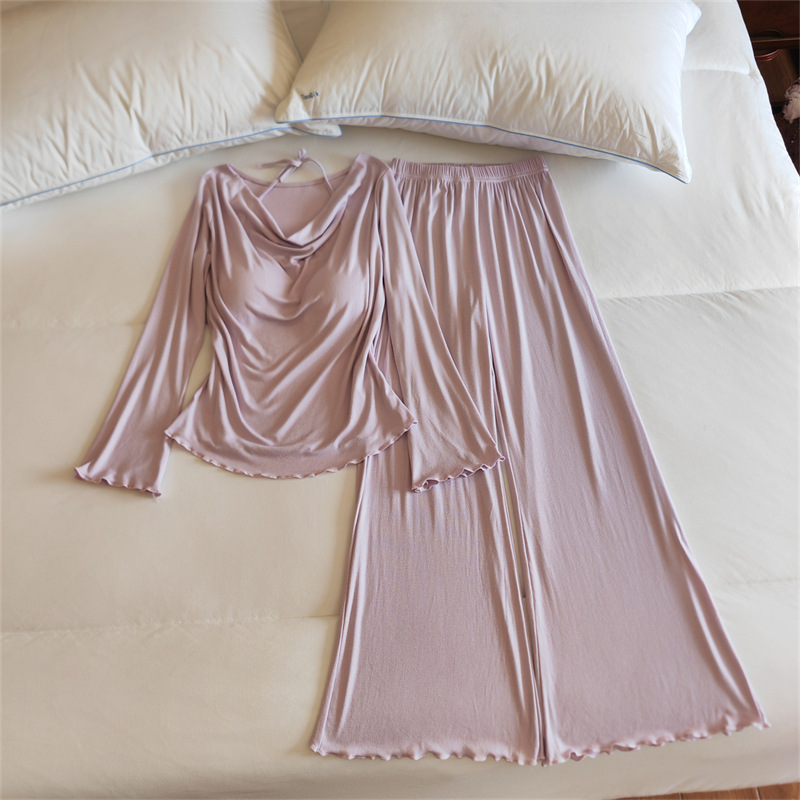 잠옷 여성의 봄과 가을 긴 소매 얇은 세트 귀여운 폴로 도트 공주 바람 벨트 가슴 패드 홈 옷 2025 새 여름스토어 가기