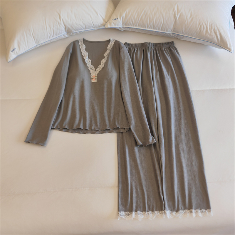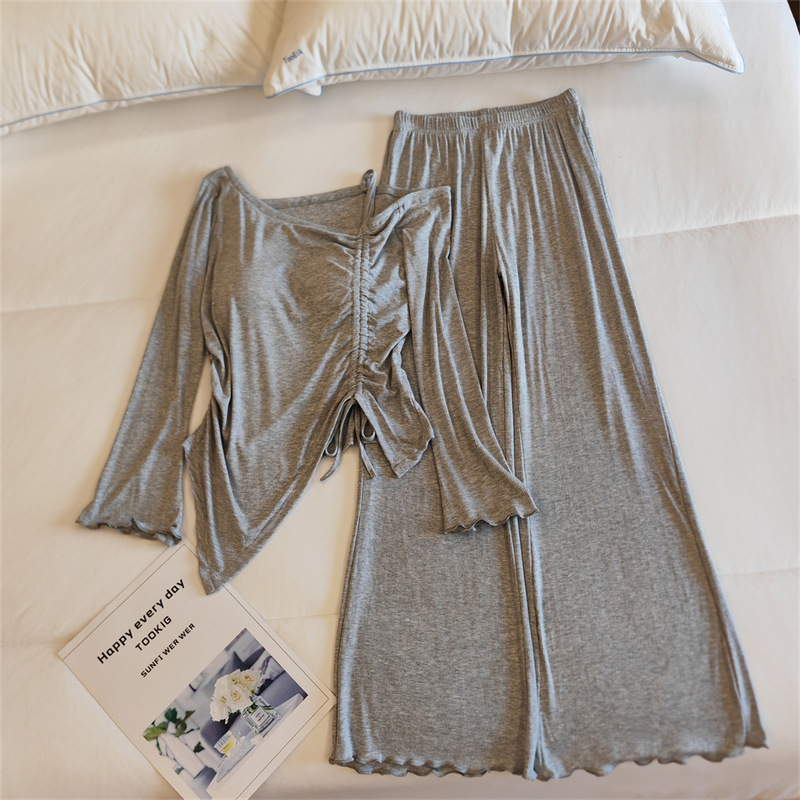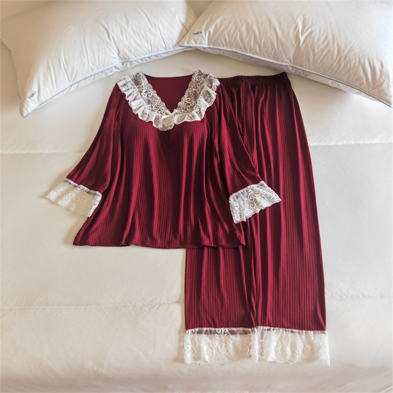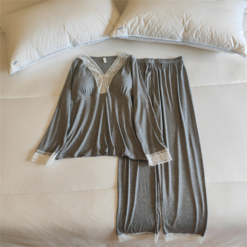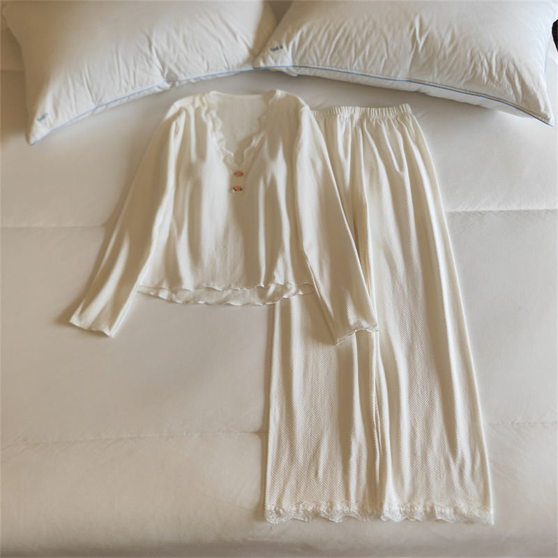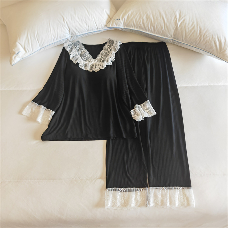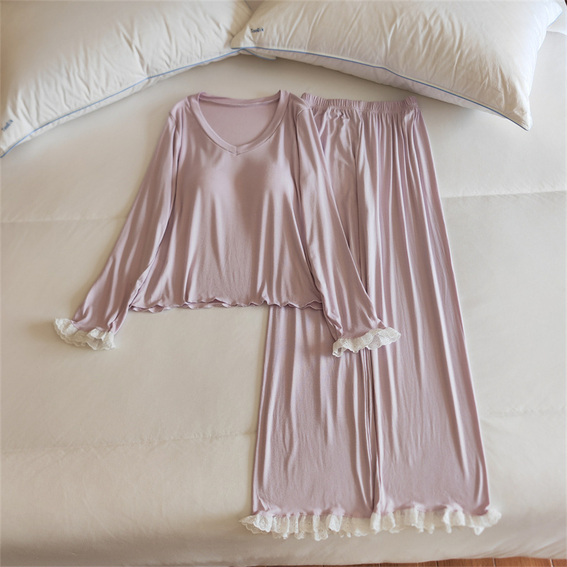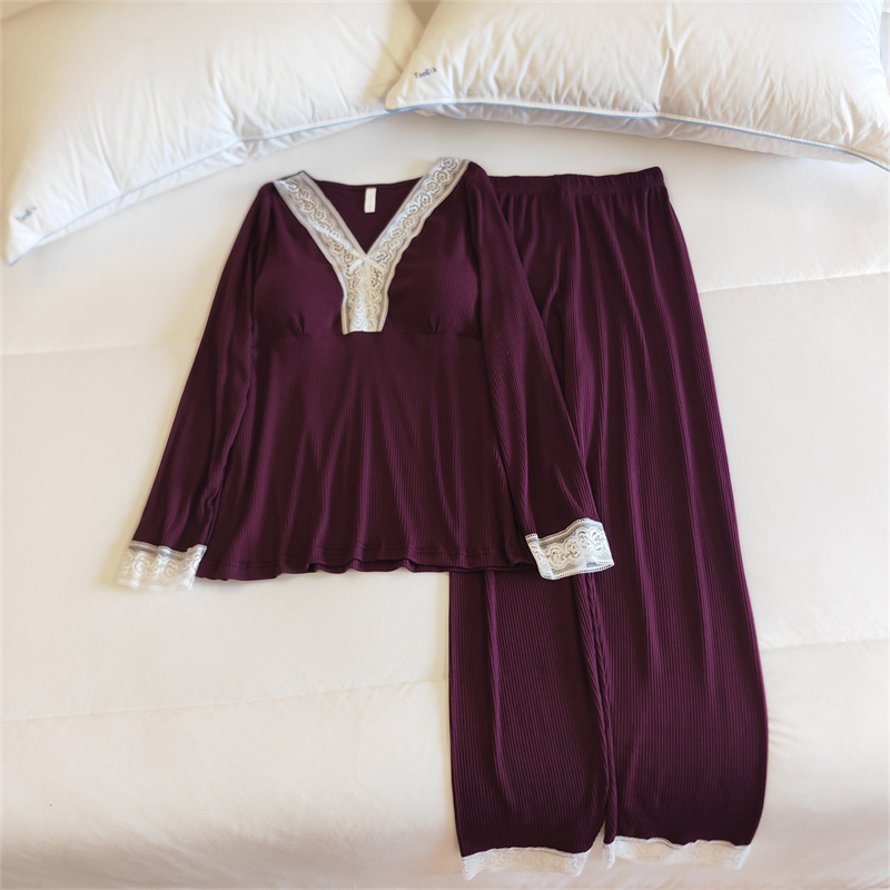 잠옷 여성의 봄과 가을 긴 소매 얇은 세트 귀여운 폴로 도트 공주 바람 벨트 가슴 패드 홈 옷 2025 새 여름스토어 가기