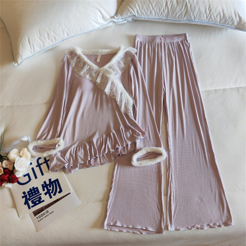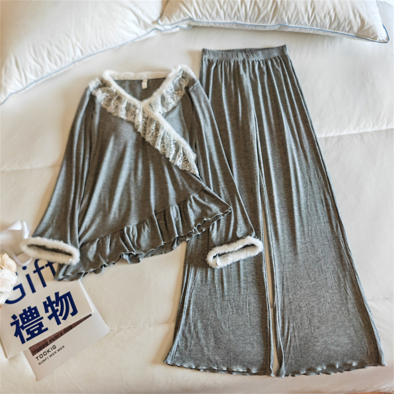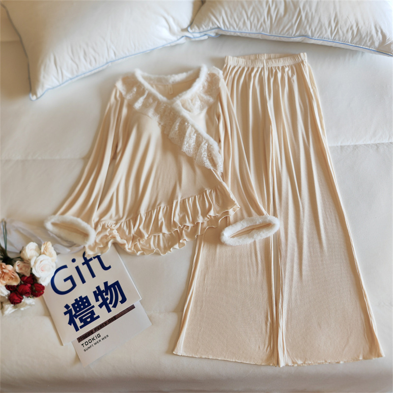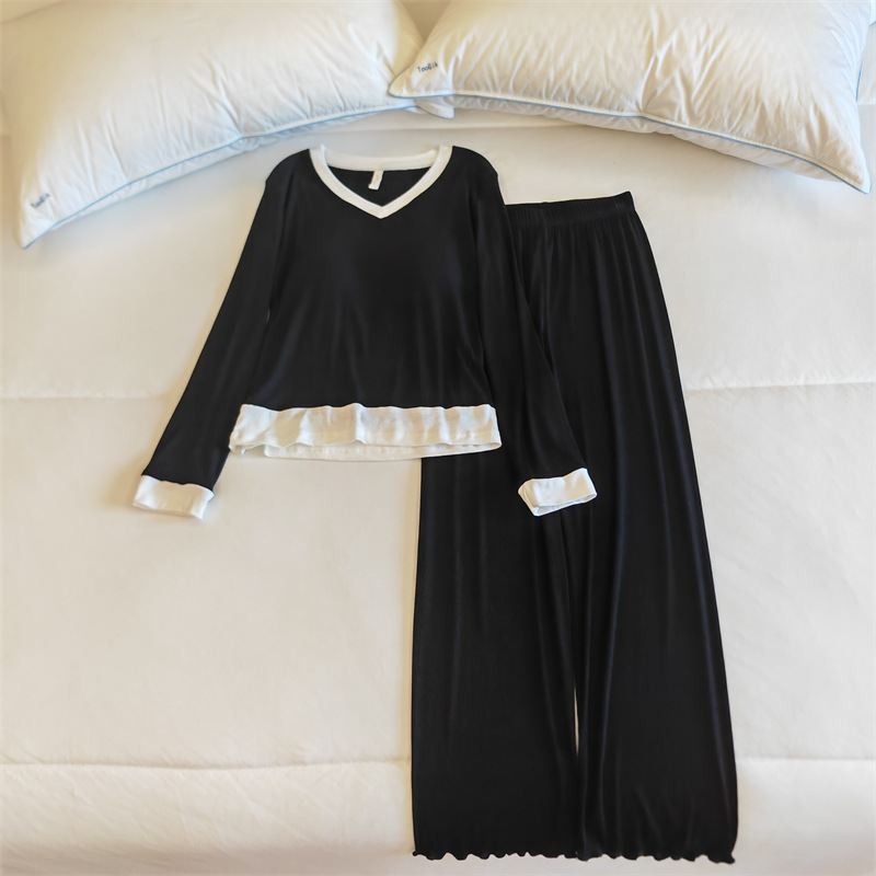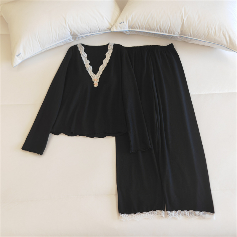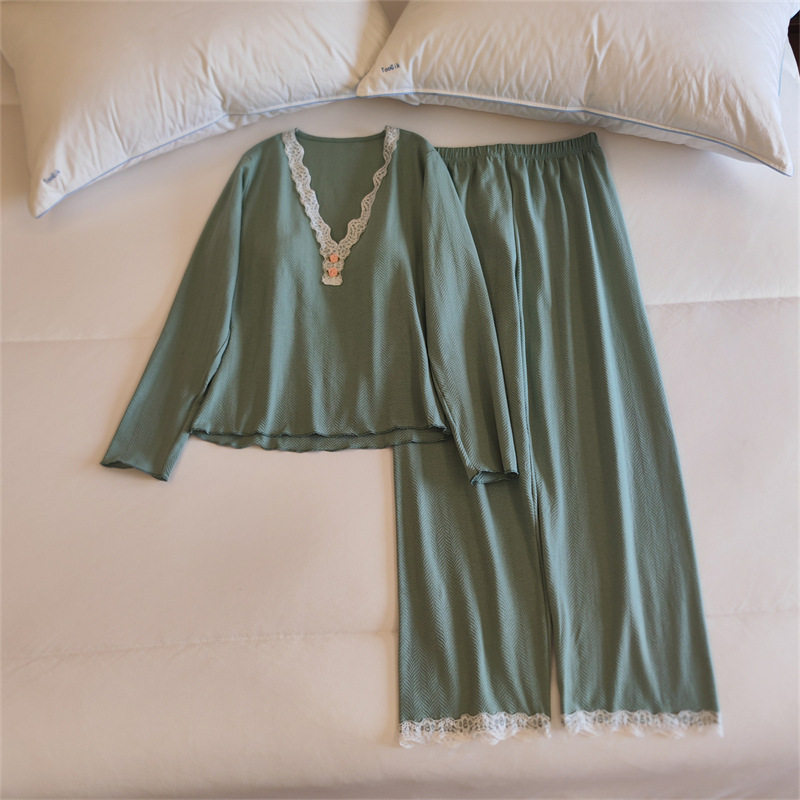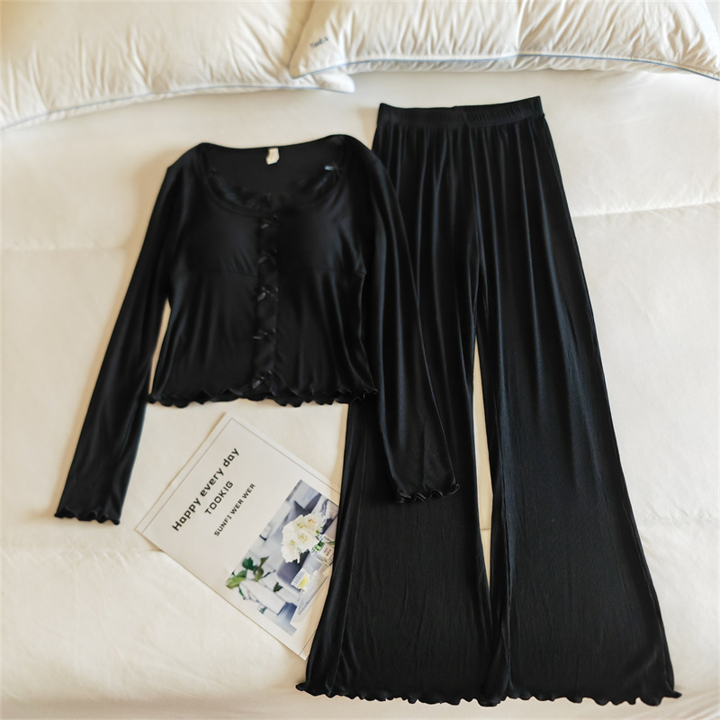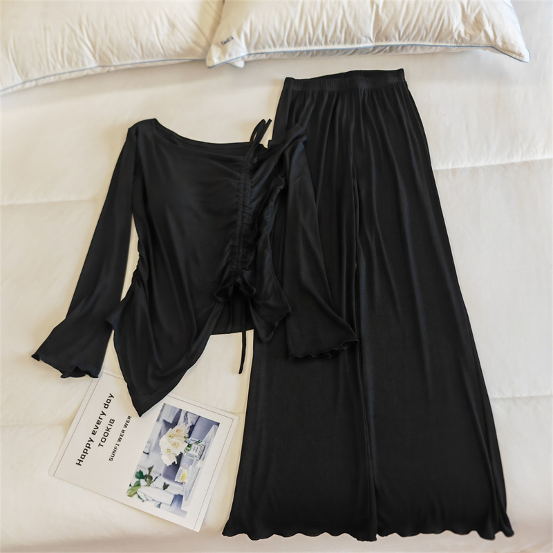 잠옷 여성의 봄과 가을 긴 소매 얇은 세트 귀여운 폴로 도트 공주 바람 벨트 가슴 패드 홈 옷 2025 새 여름스토어 가기