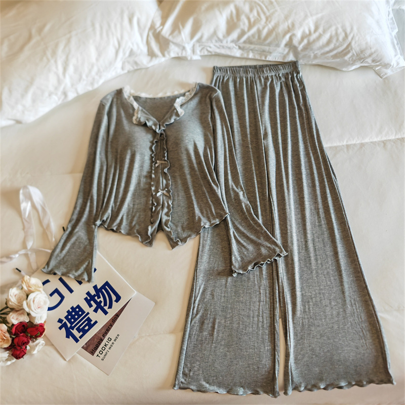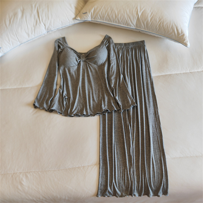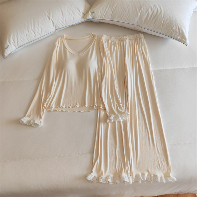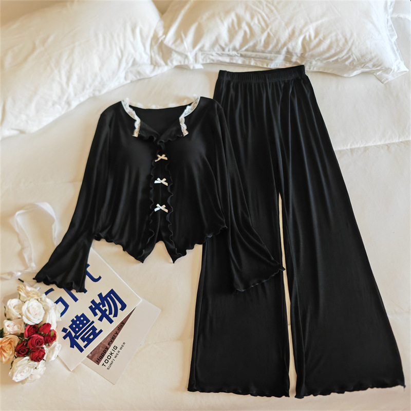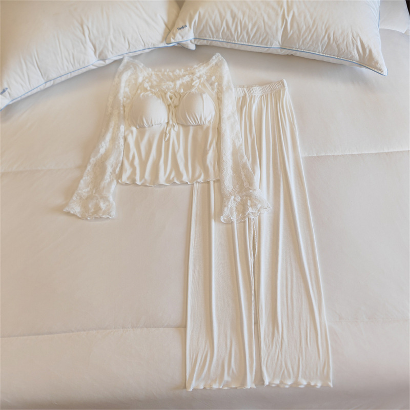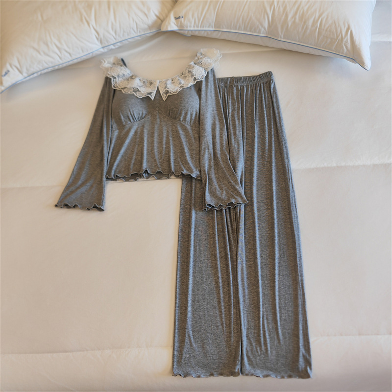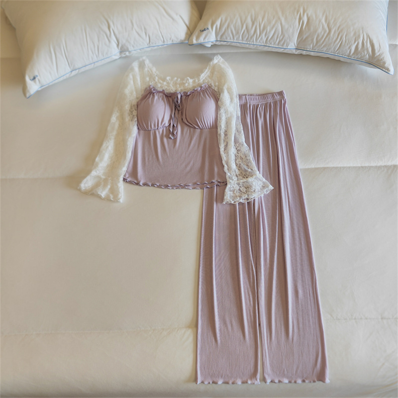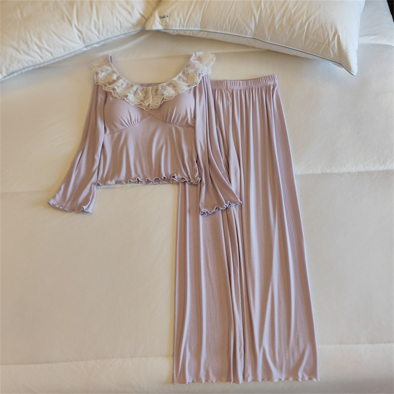 잠옷 여성의 봄과 가을 긴 소매 얇은 세트 귀여운 폴로 도트 공주 바람 벨트 가슴 패드 홈 옷 2025 새 여름