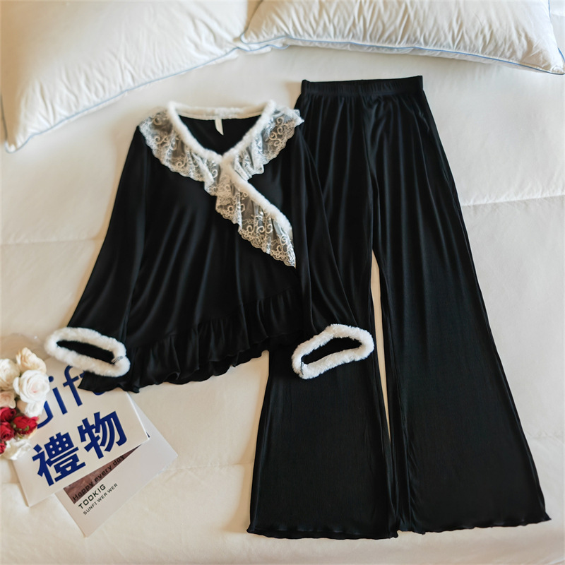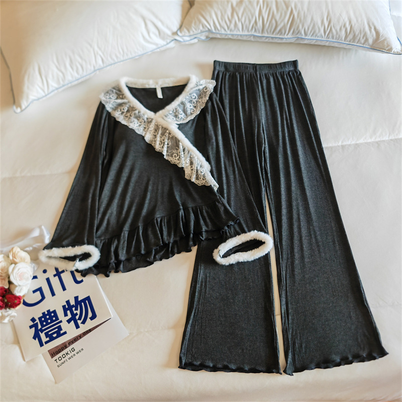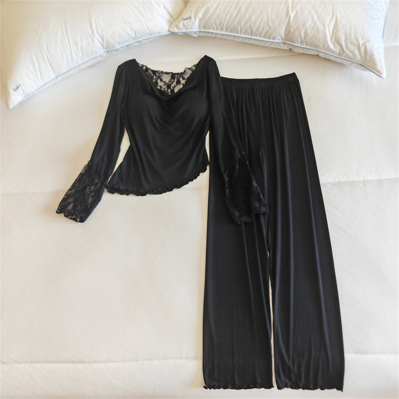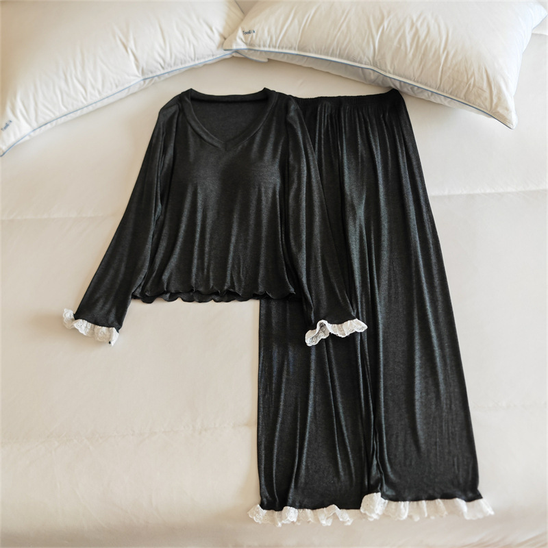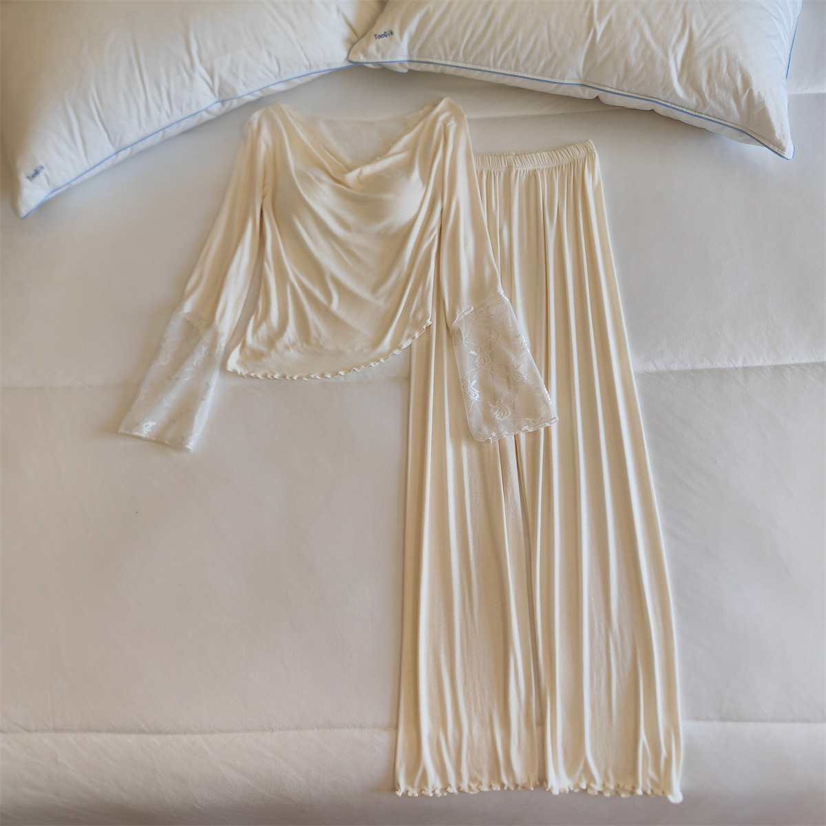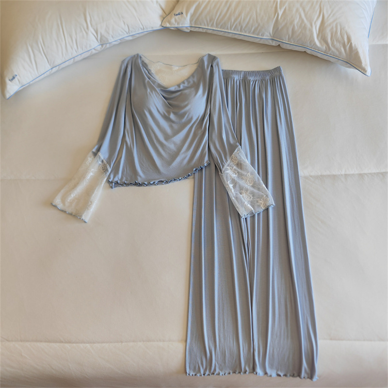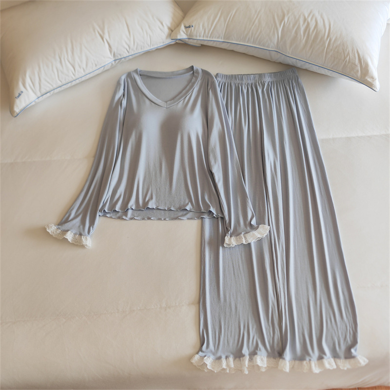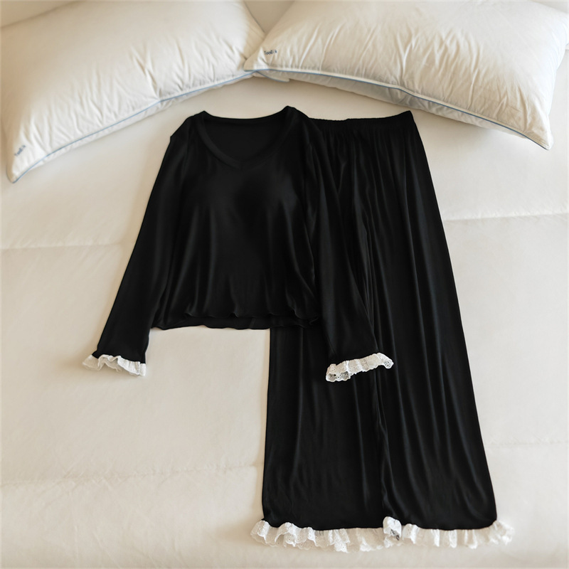 잠옷 여성의 봄과 가을 긴 소매 얇은 세트 귀여운 폴로 도트 공주 바람 벨트 가슴 패드 홈 옷 2025 새 여름