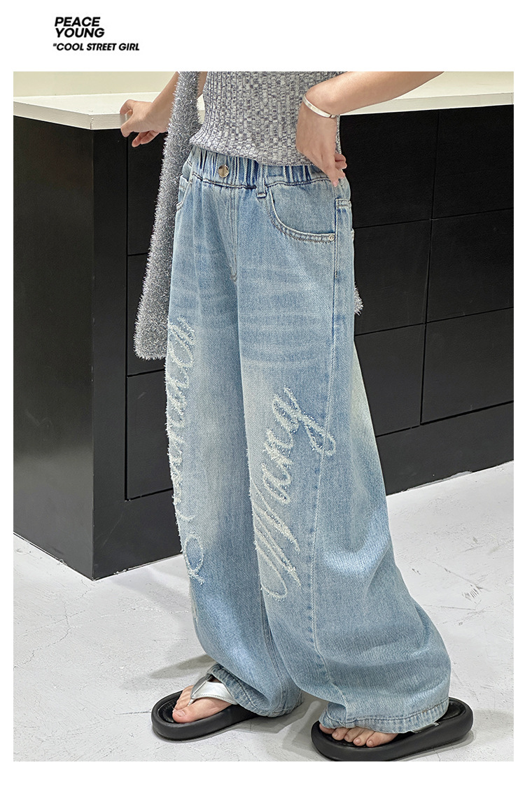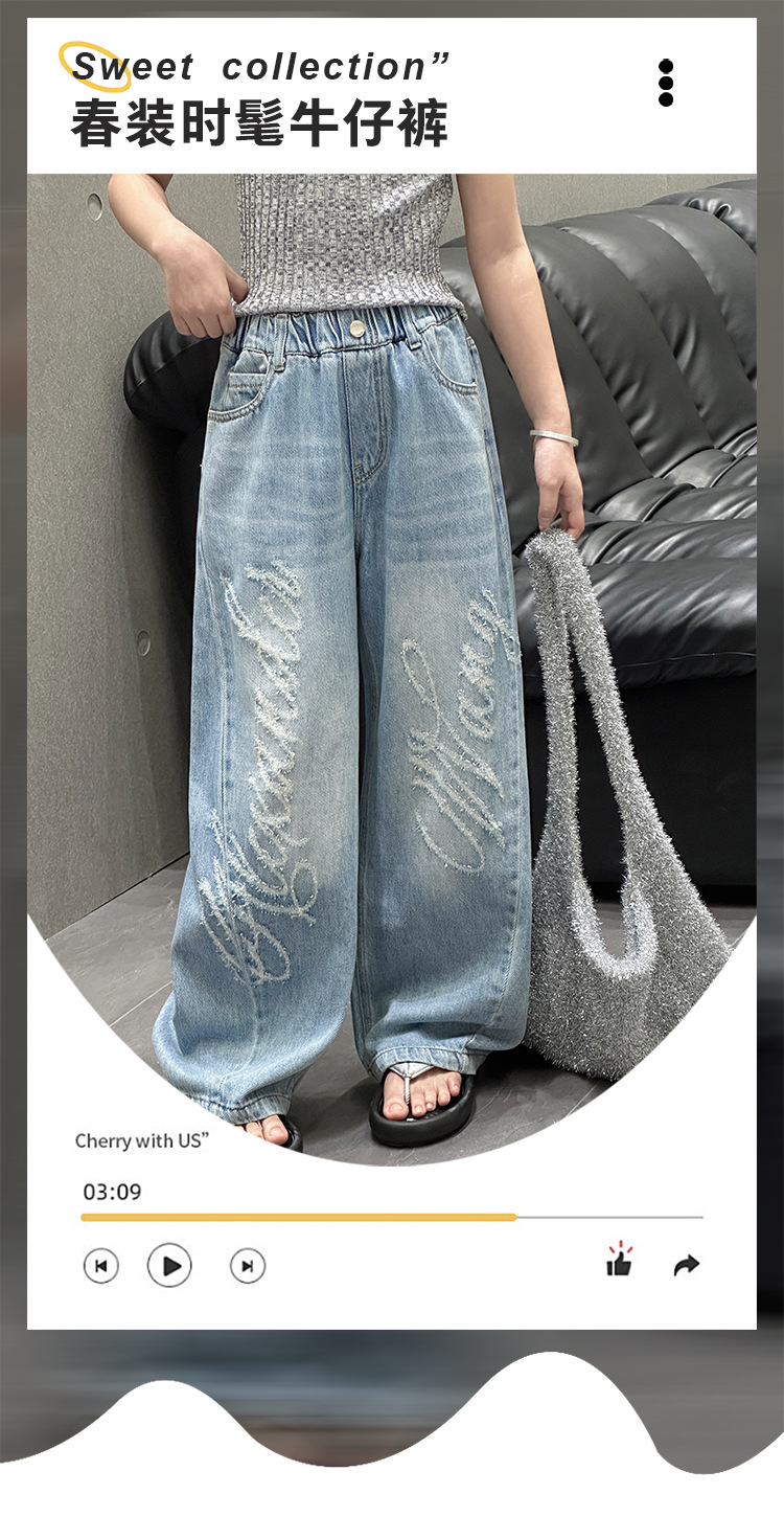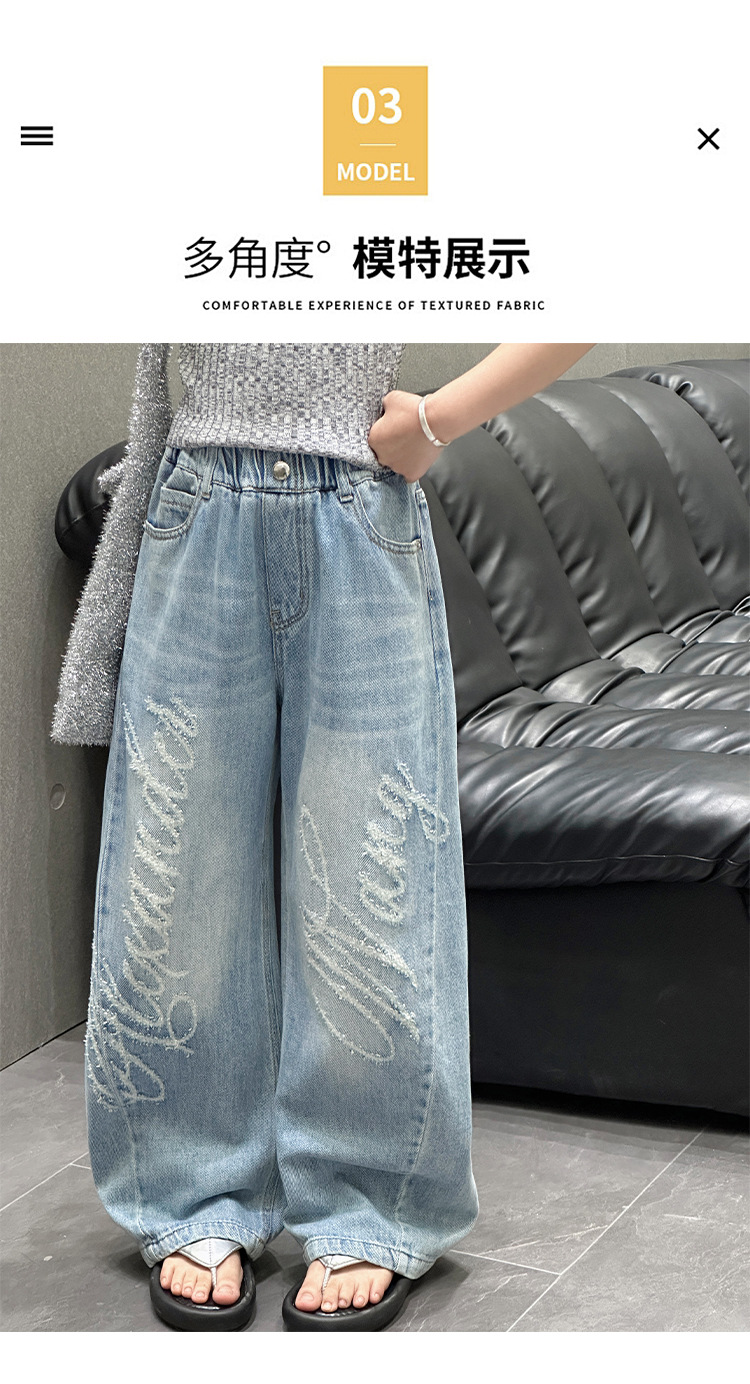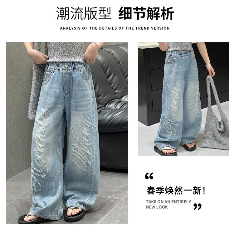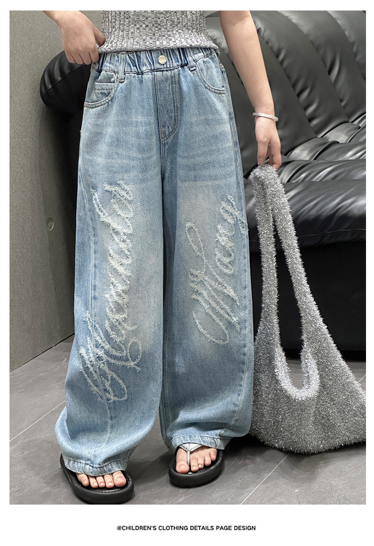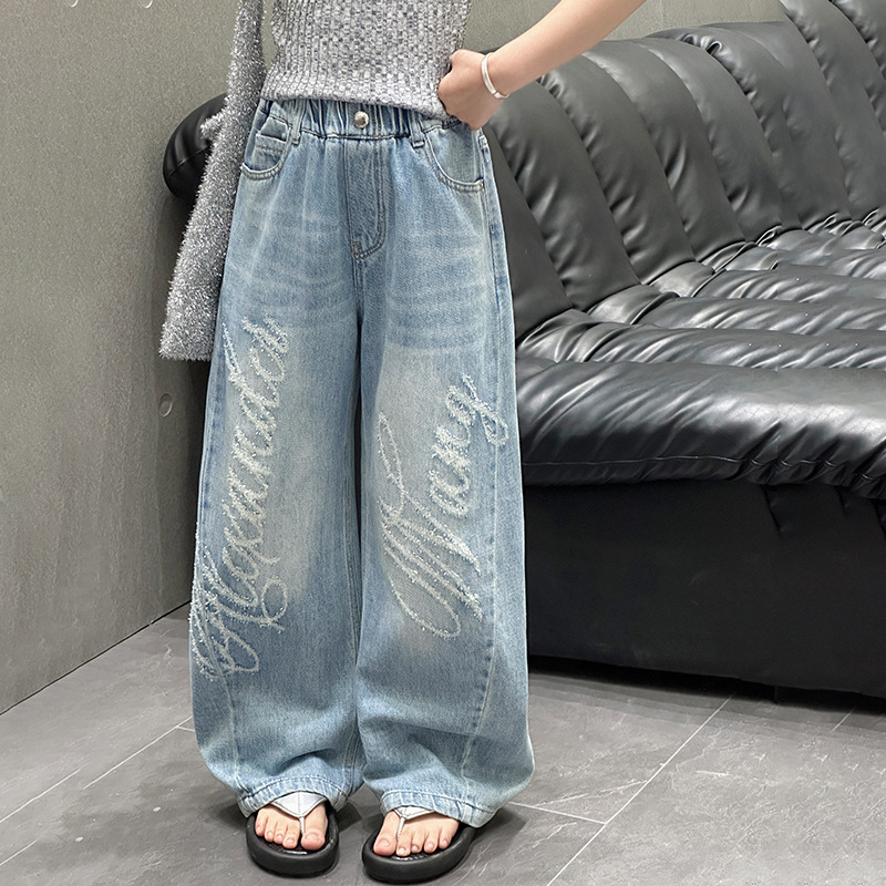 소녀 바지 봄과 가을 2025 새로운 어린이 캐주얼 서양식 스포츠 바지 큰 어린이 느슨한 데님 Scimitar 바지스토어 가기