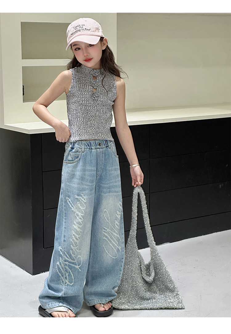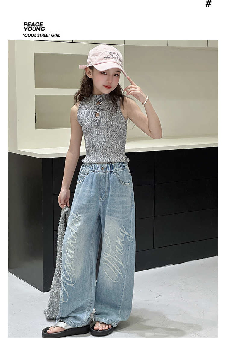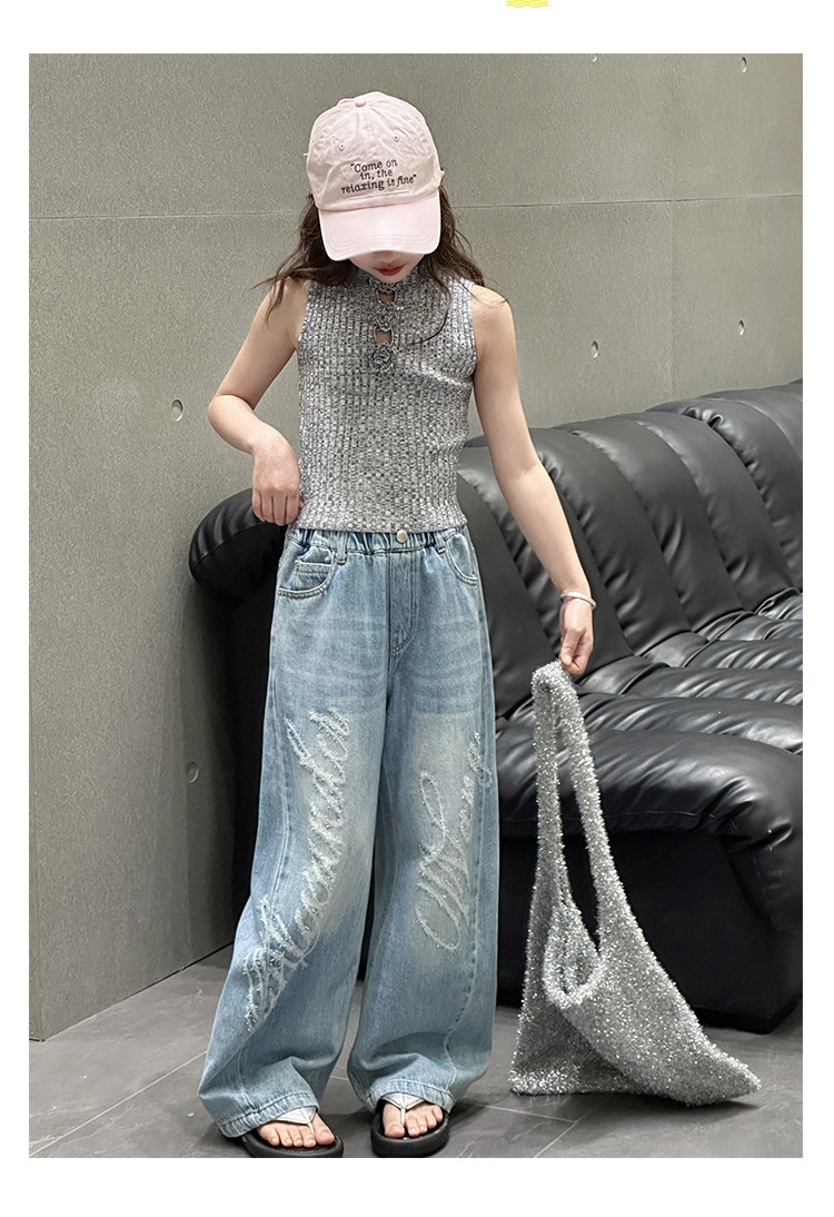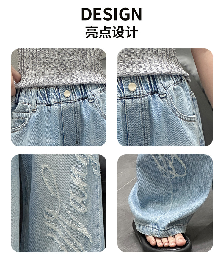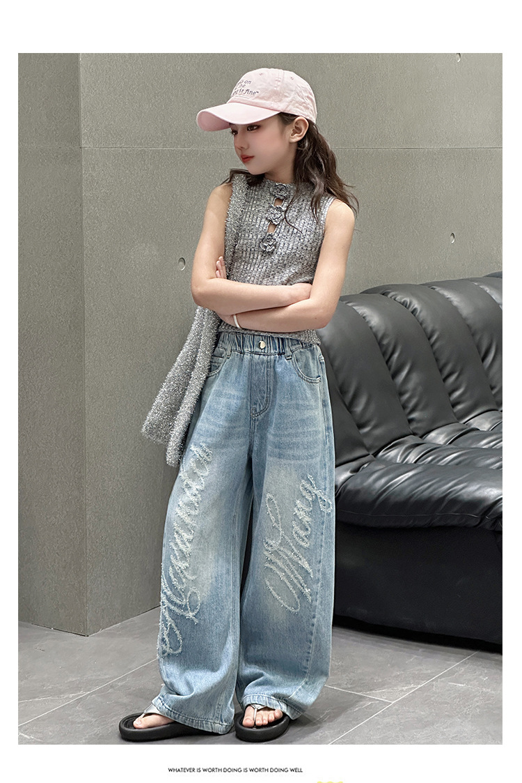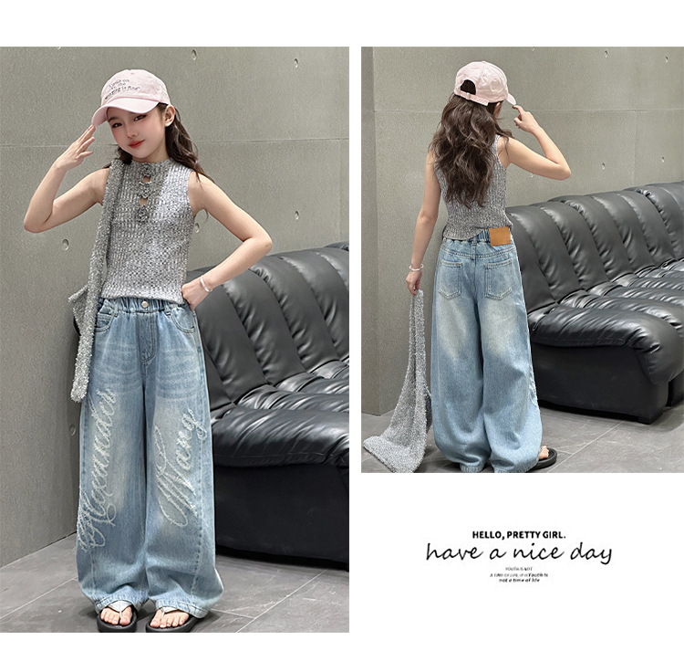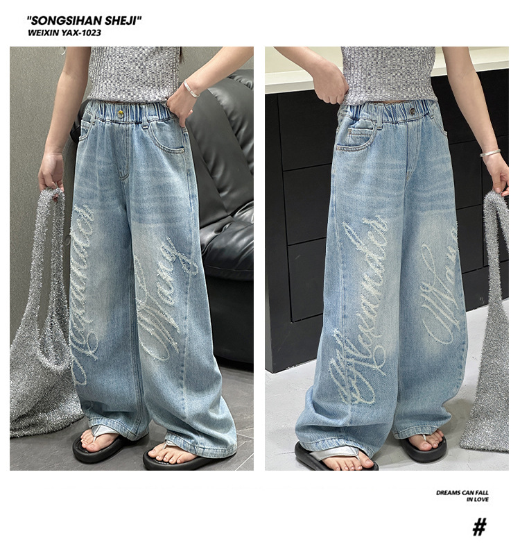 소녀 바지 봄과 가을 2025 새로운 어린이 캐주얼 서양식 스포츠 바지 큰 어린이 느슨한 데님 Scimitar 바지스토어 가기
