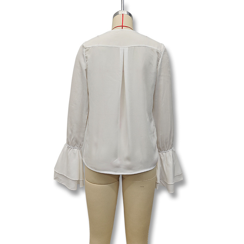 유럽과 미국 여성의 2025 년 봄과 여름 새로운 패션 레이스 업 디자인 카디건 러플 외부 숄 셔츠 셔츠스토어 가기