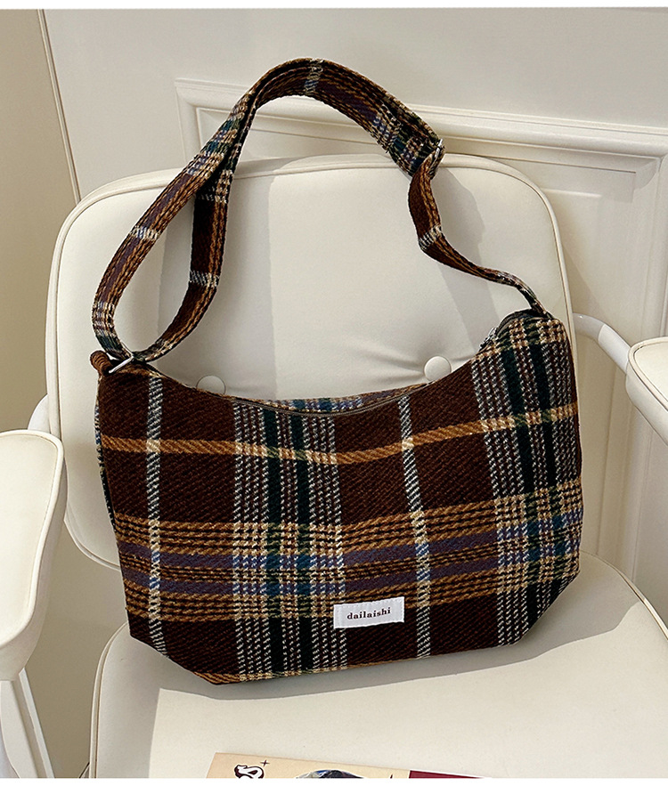 유행 한국식 크로스바디백 여자 하운드 독특한 올 매치 통근 여성 가방 대용량 레트로 플레이드 숄더 백스토어 가기