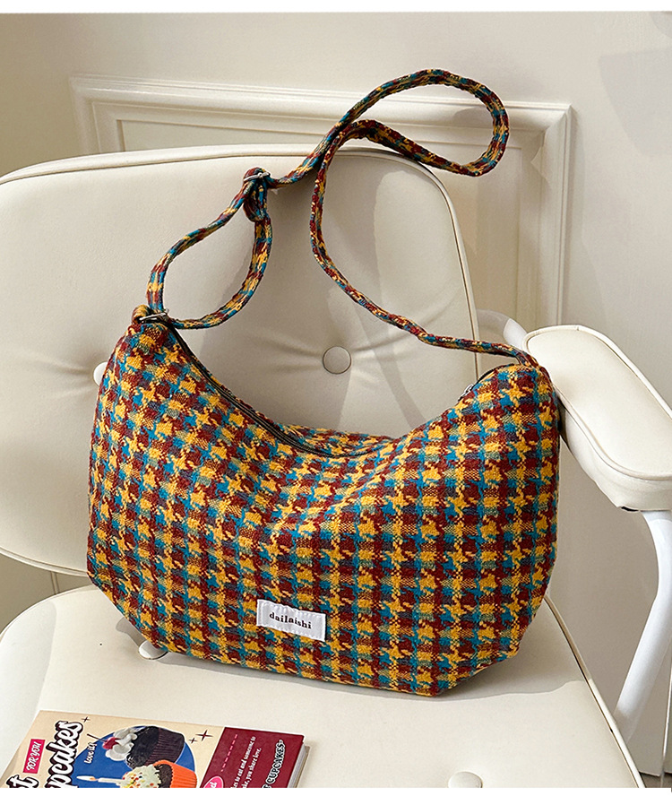 유행 한국식 크로스바디백 여자 하운드 독특한 올 매치 통근 여성 가방 대용량 레트로 플레이드 숄더 백