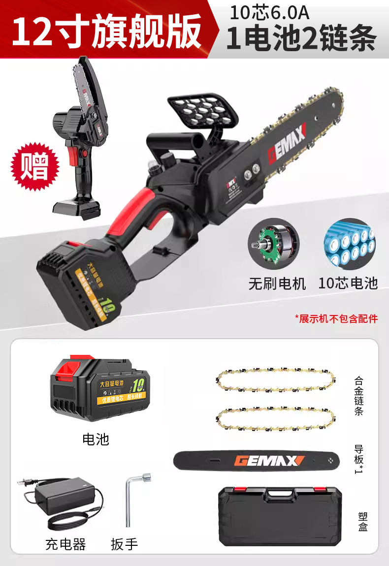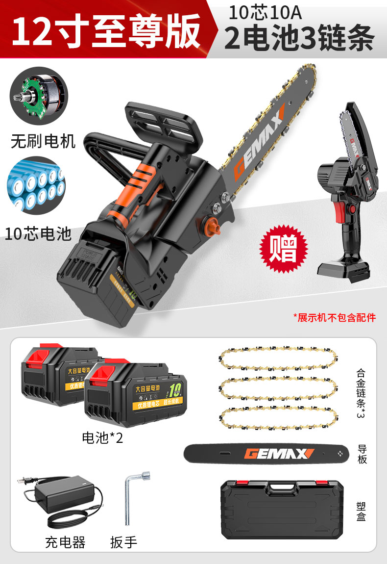 • 12inch 브러시리스 슈프림 모델(배터리 1개, 충전 1개, 10코어 10A) 체인 3개 + 무료 4inch 싱글 핸드 톱