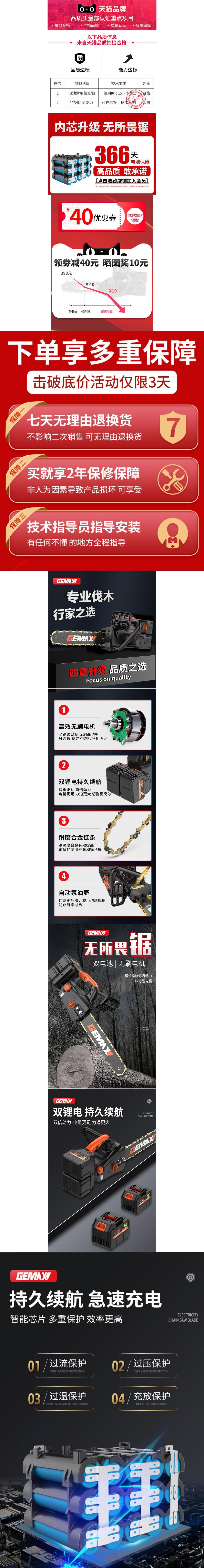 • 12inch 브러시리스 플래그십 모델(배터리 2개, 충전 1개, 15코어 8.0A) 체인 3개 + 무료 4inch 한손톱