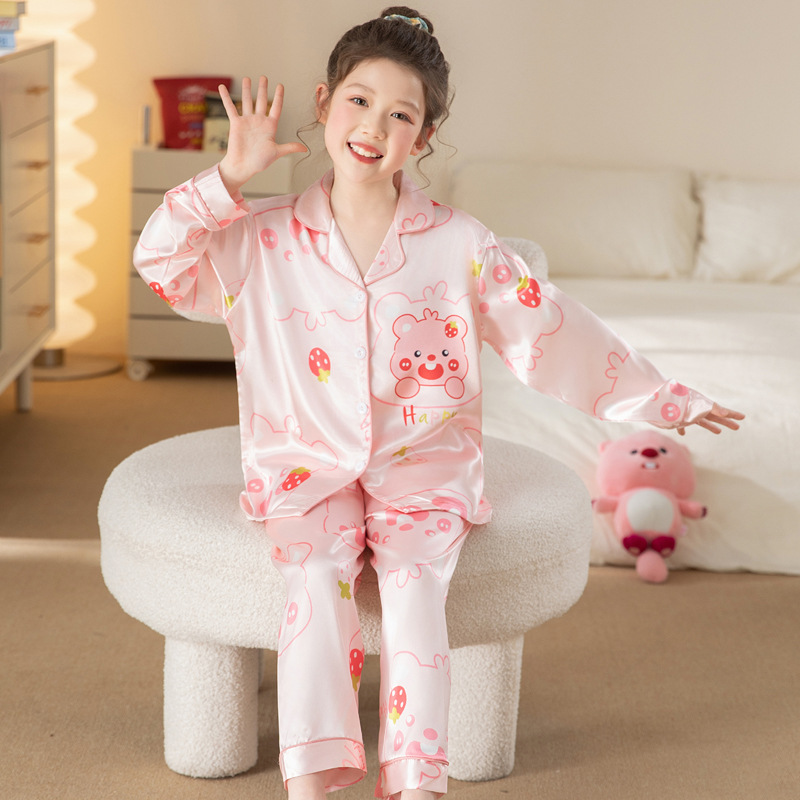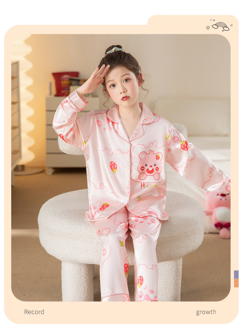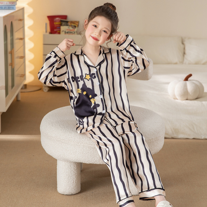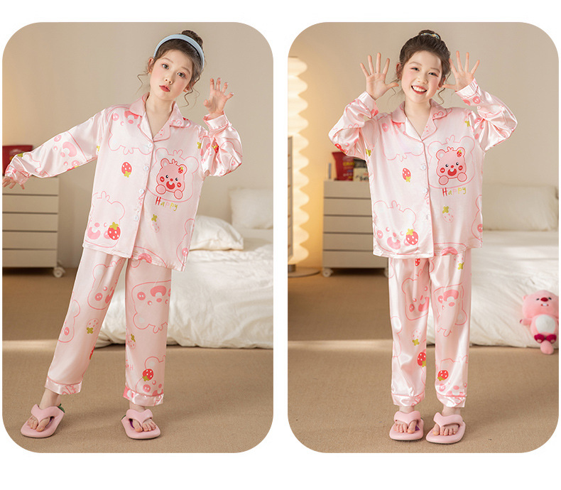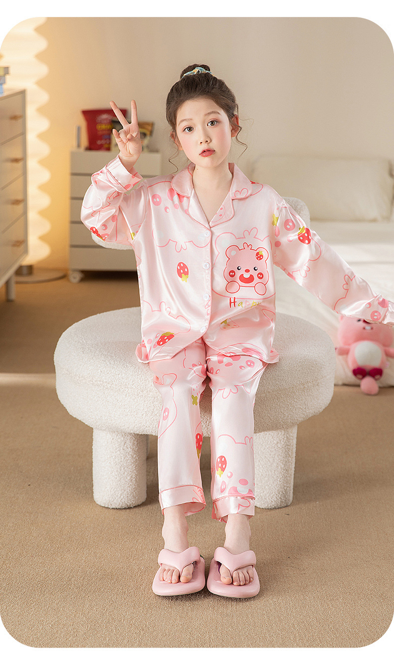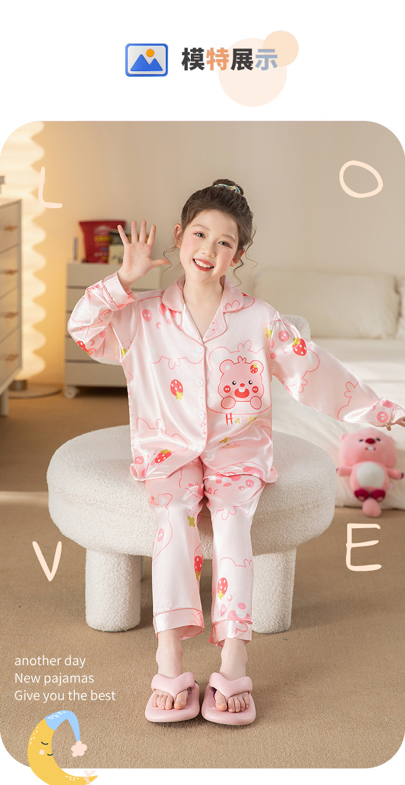어린이 잠옷 25 봄과 여름 새 여아 긴 소매 바지 아이스 실크 홈 옷 큰 어린이 소년 엄마와 딸 에어컨 옷스토어 가기