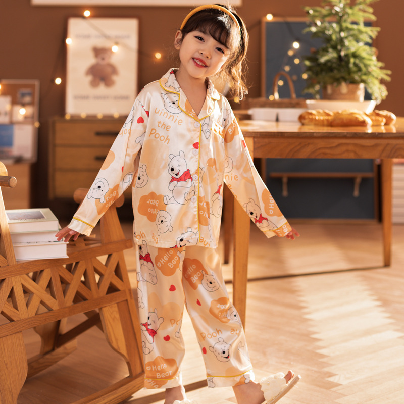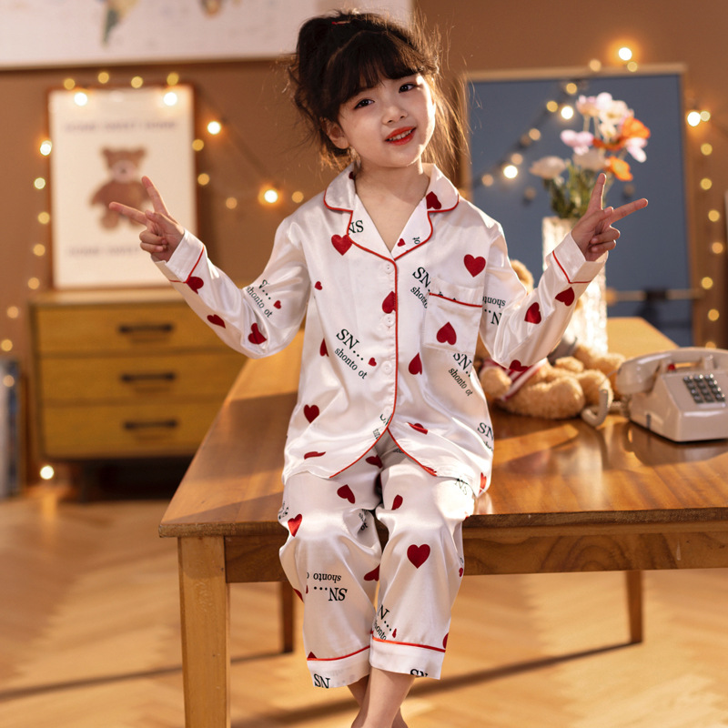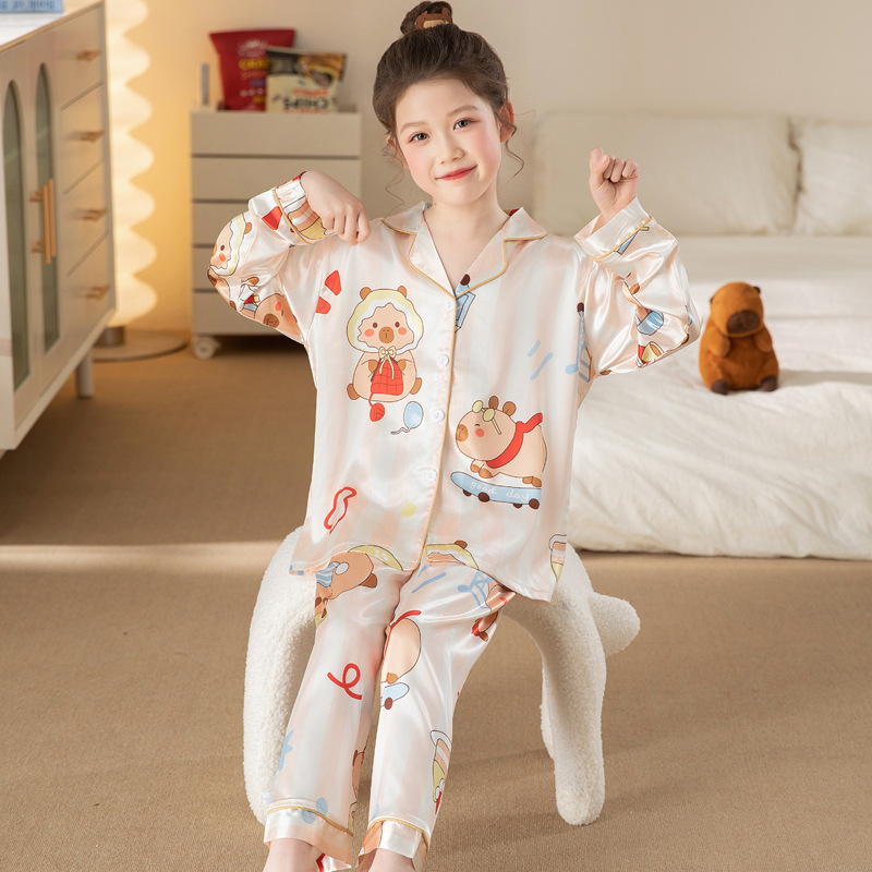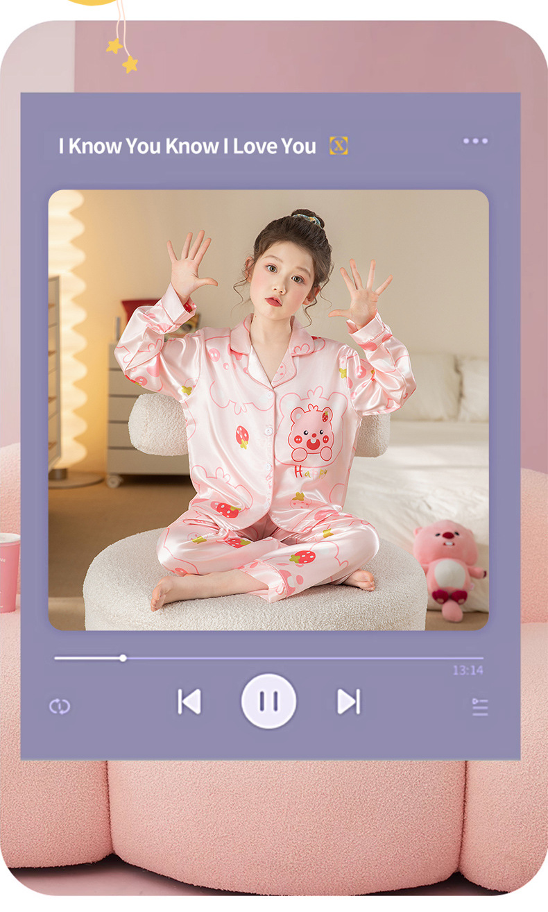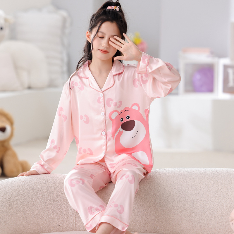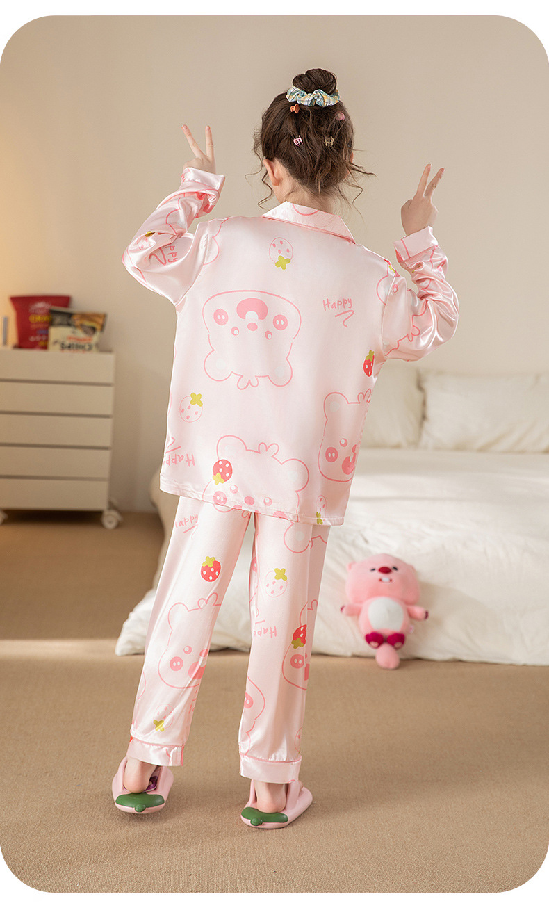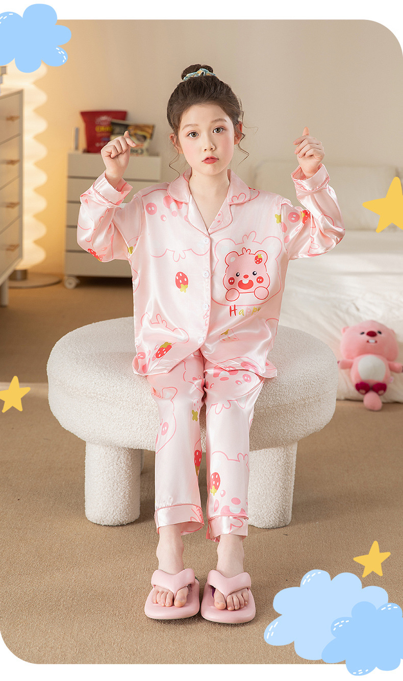 어린이 잠옷 25 봄과 여름 새 여아 긴 소매 바지 아이스 실크 홈 옷 큰 어린이 소년 엄마와 딸 에어컨 옷스토어 가기