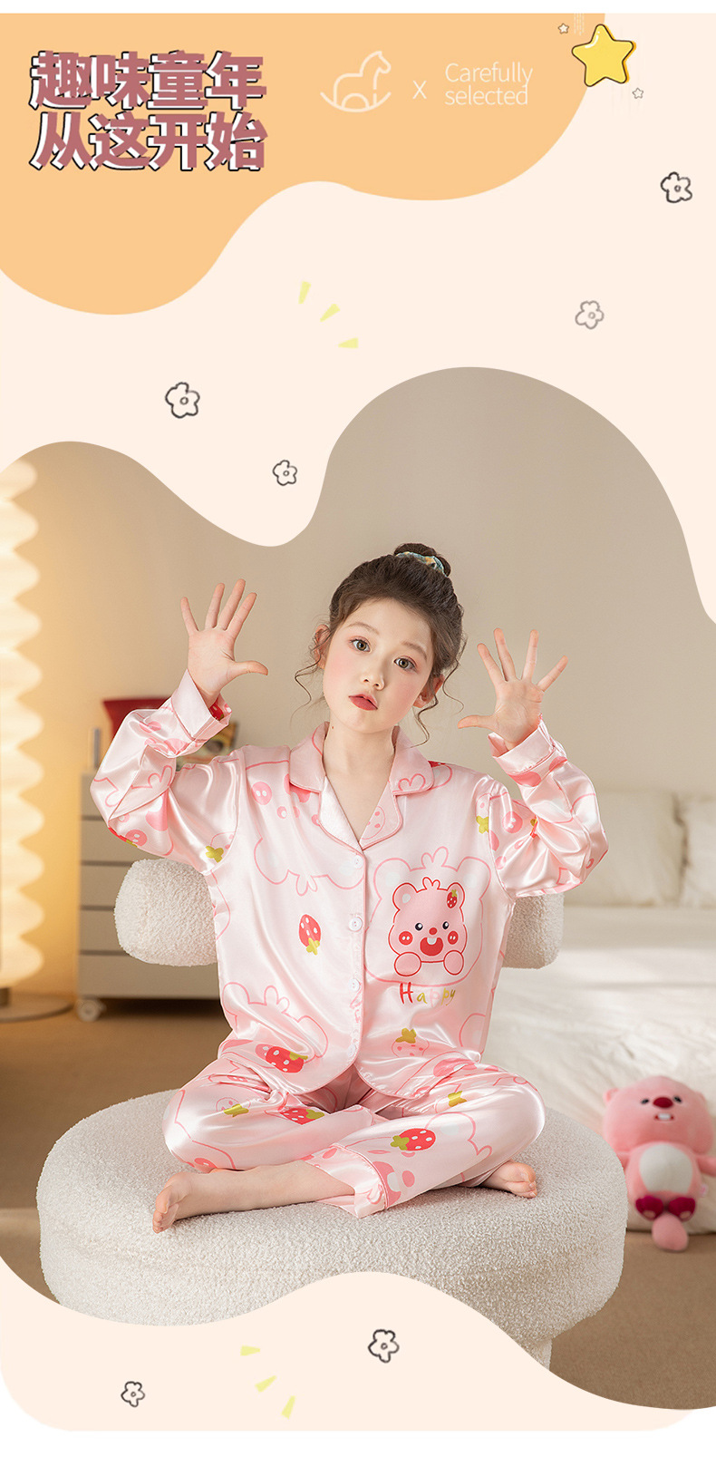 어린이 잠옷 25 봄과 여름 새 여아 긴 소매 바지 아이스 실크 홈 옷 큰 어린이 소년 엄마와 딸 에어컨 옷