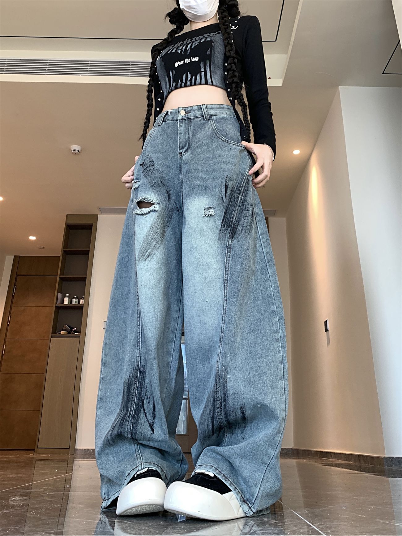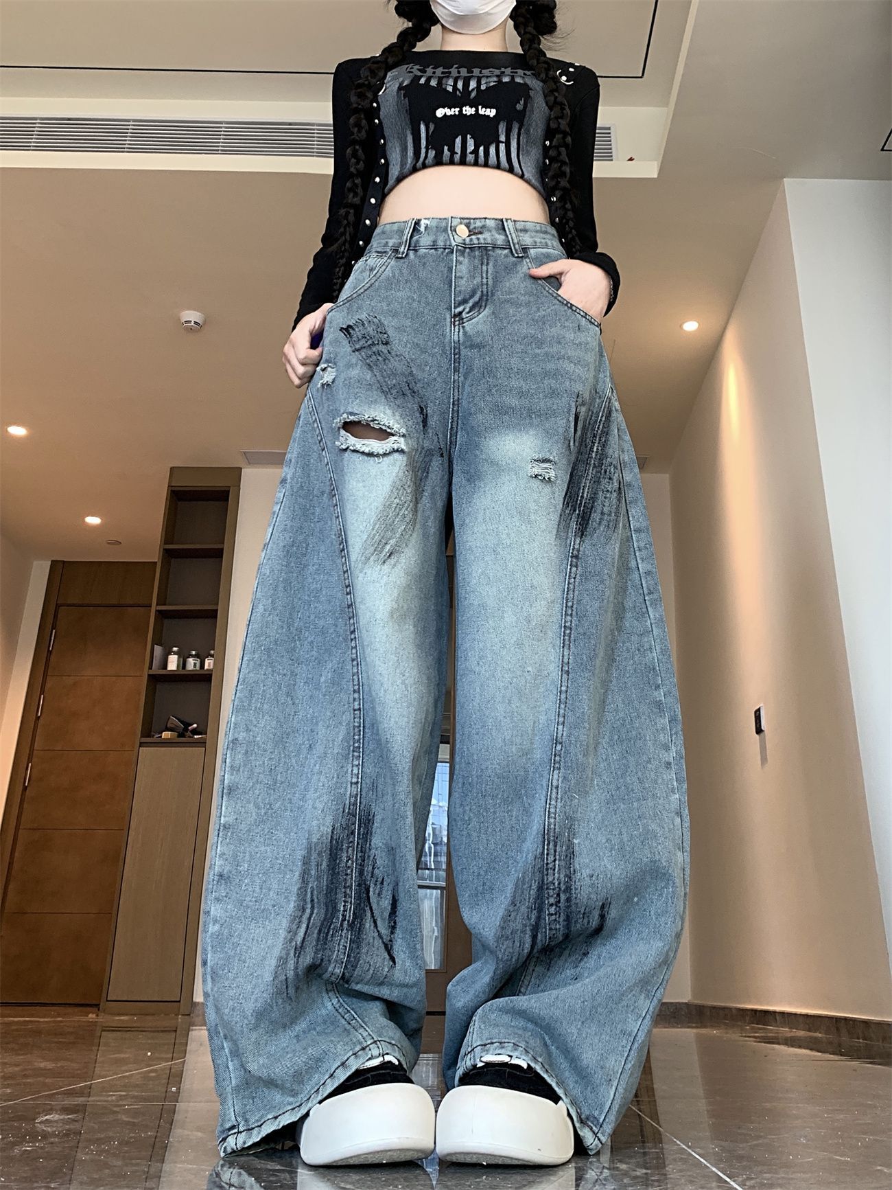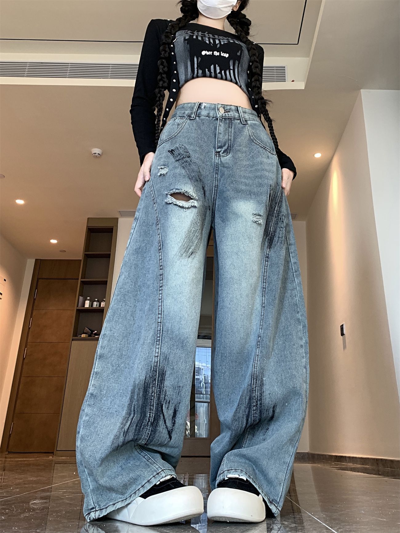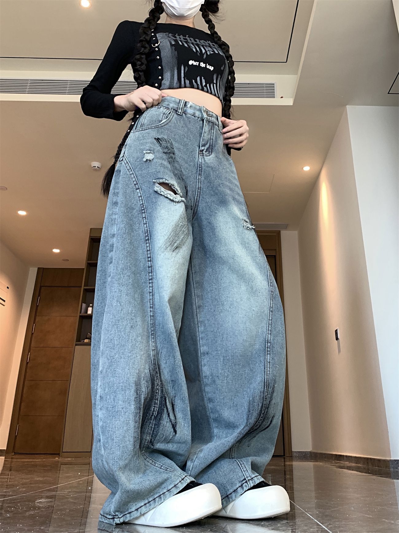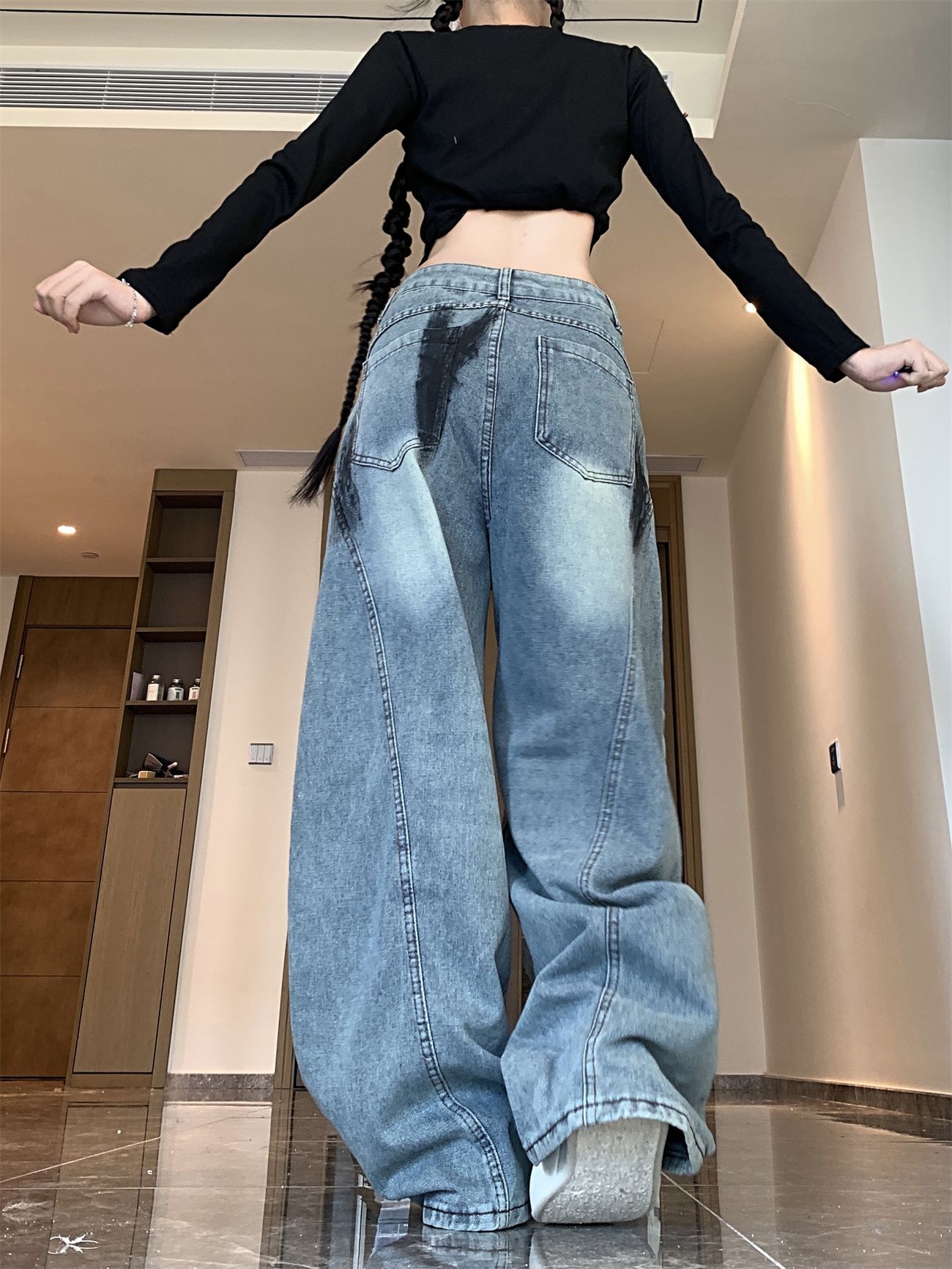 느슨한 캐주얼 남성과 여성의 가을 얇은 넓은 다리 바지 블루머스 트렌디 한 청바지스토어 가기